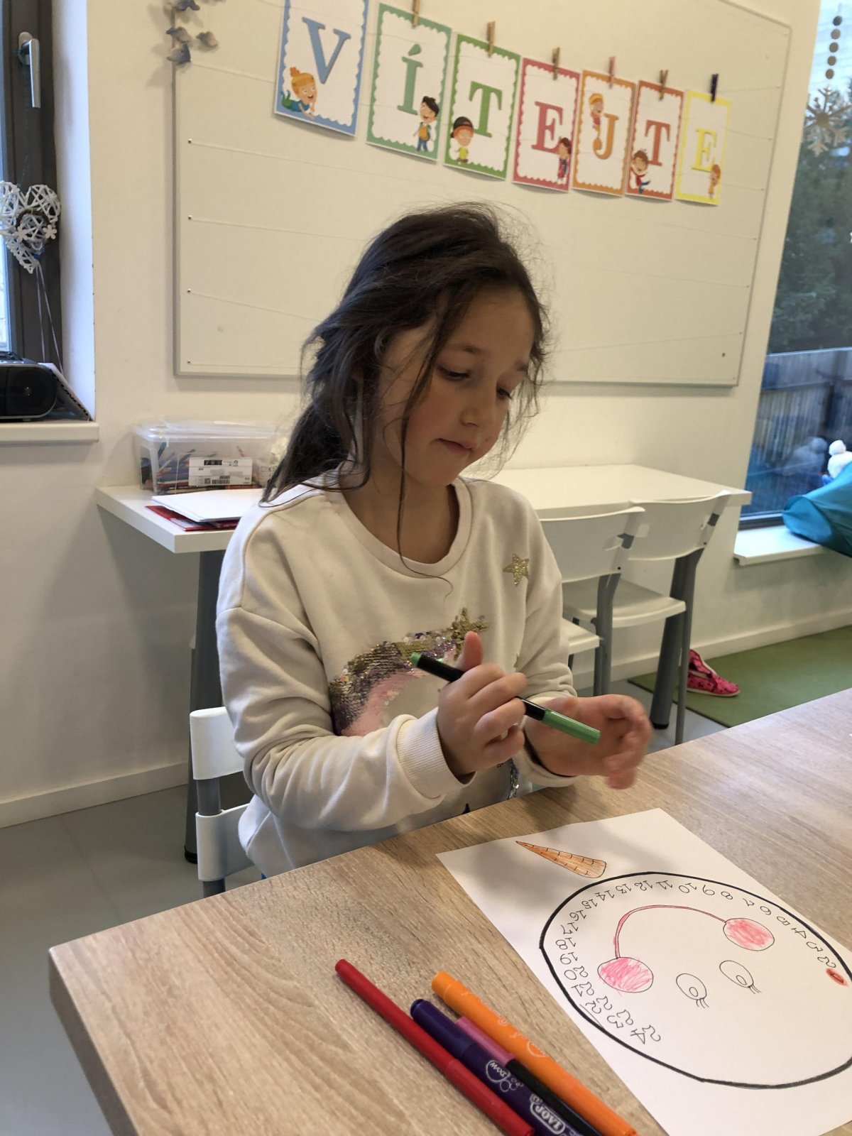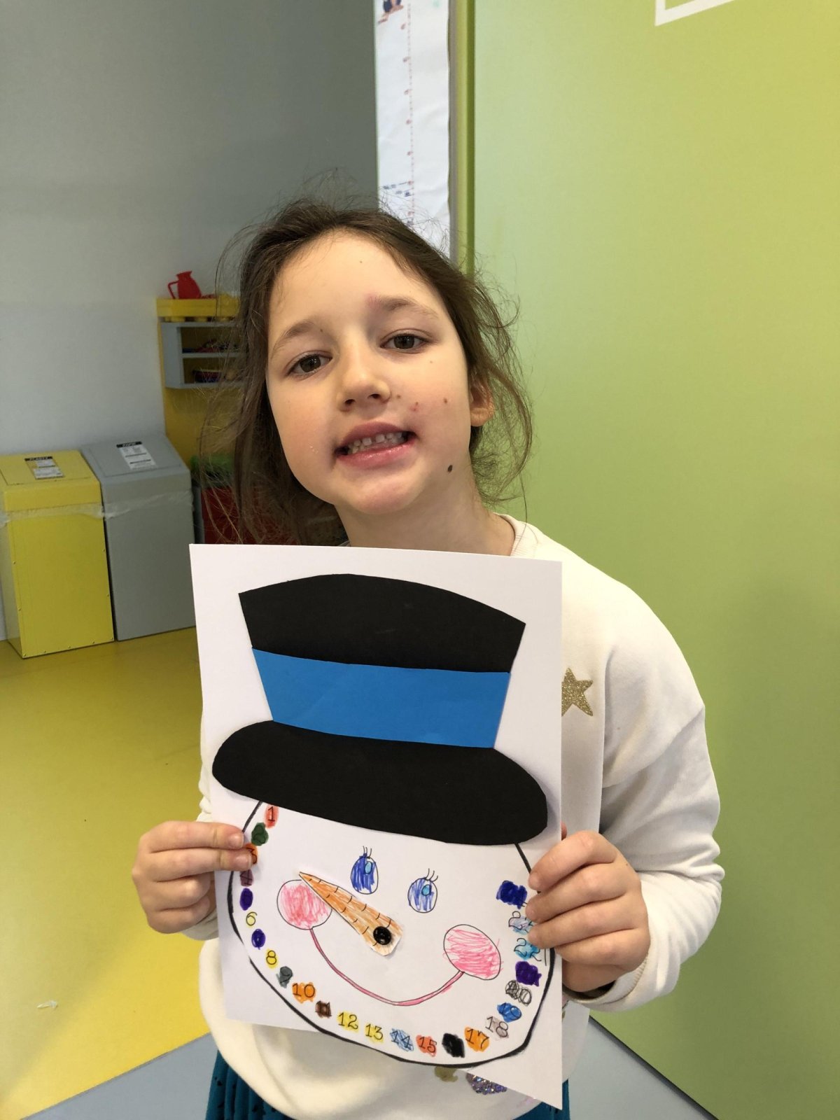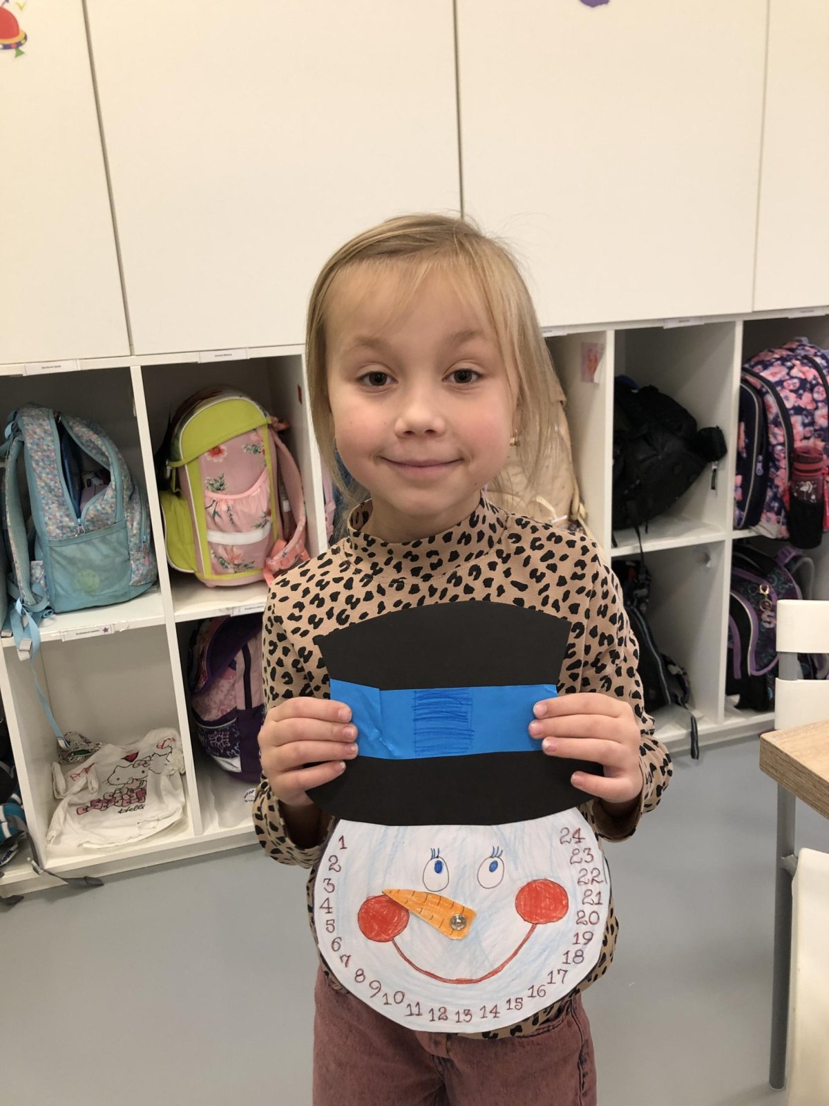Dnes jsme si ve družině vyrobili vlastní adventní kalendář. Nejdříve jsme si vybarvili sněhuláka i jeho mrkvičkový nos, vystřihli klobouk a nakonec jsme vše spojili pomocí spony. Už se těšíme, až budeme každý den posouvat ručičku a společně odpočítávat dny do Vánoc. Děti práce moc bavila a své krásné kalendáře si s radostí odnesly domů, aby si s vámi mohly užít kouzlo adventního čekání.