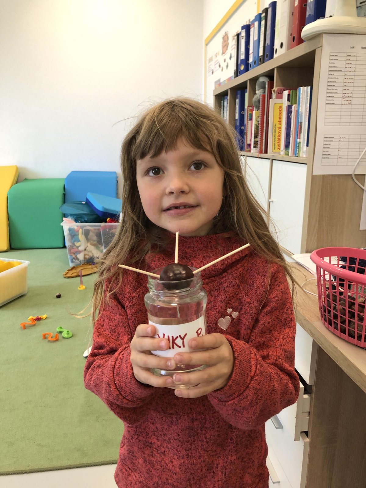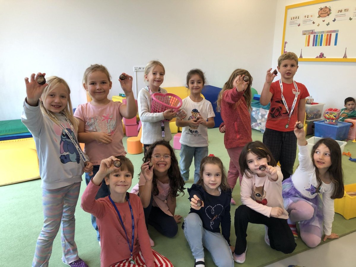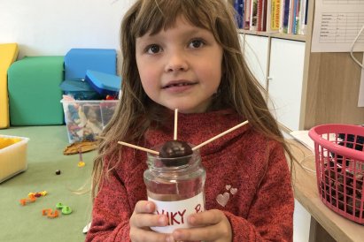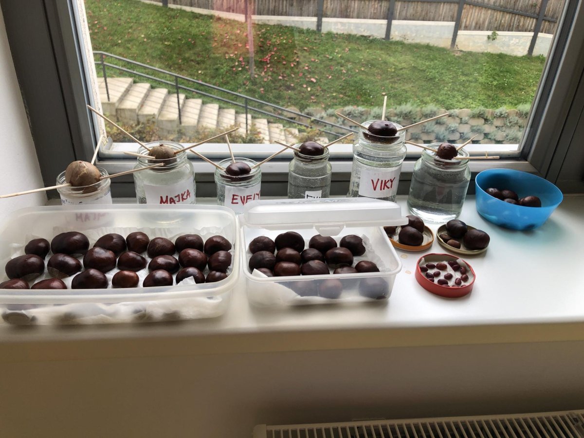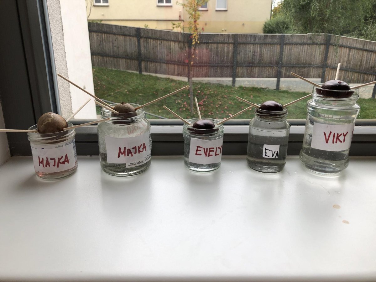 Dnes jsme dočetli poslední příběh z dětské knížky o dřeváčcích a jejich majitelce. Poté jsme se pustili do tvoření – každý si vybarvil list podle své fantazie. Kdo si přinesl skleničku, tak jsme dali do vody první kaštany a teď budeme čekat na zázrka, kdy nám začnou klíčit. Po této práci následoval kroužek Vědecké pokusy, kde jsme objevovali malé zázraky světa kolem nás. A protože nám přálo počasí, zakončili jsme den venku na hřišti, které máme prostě rádi.