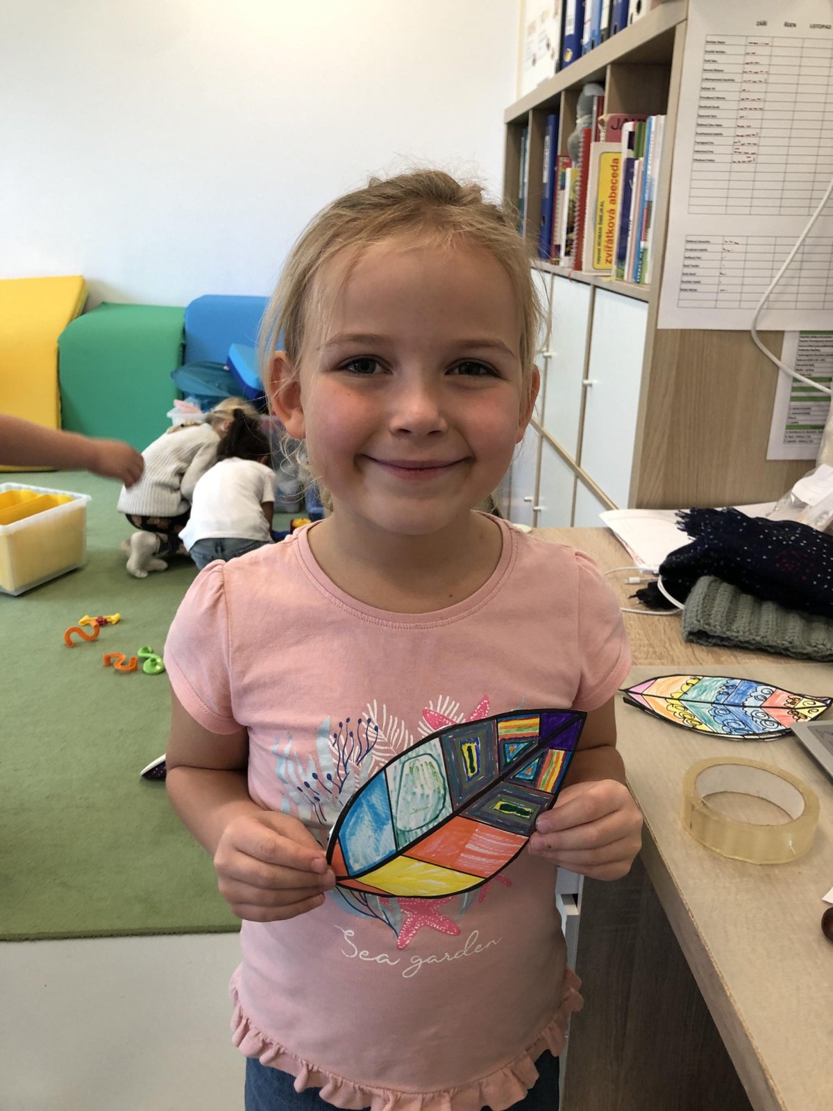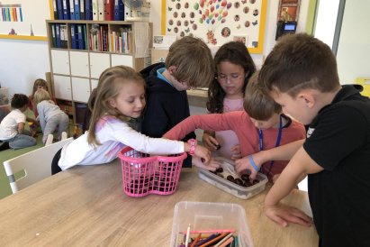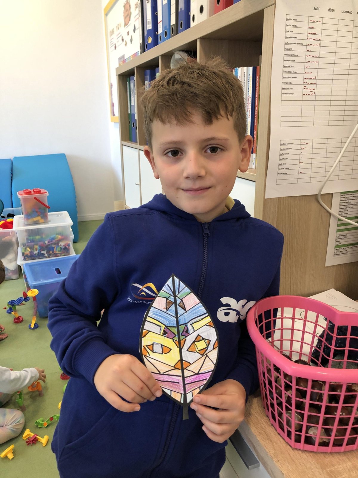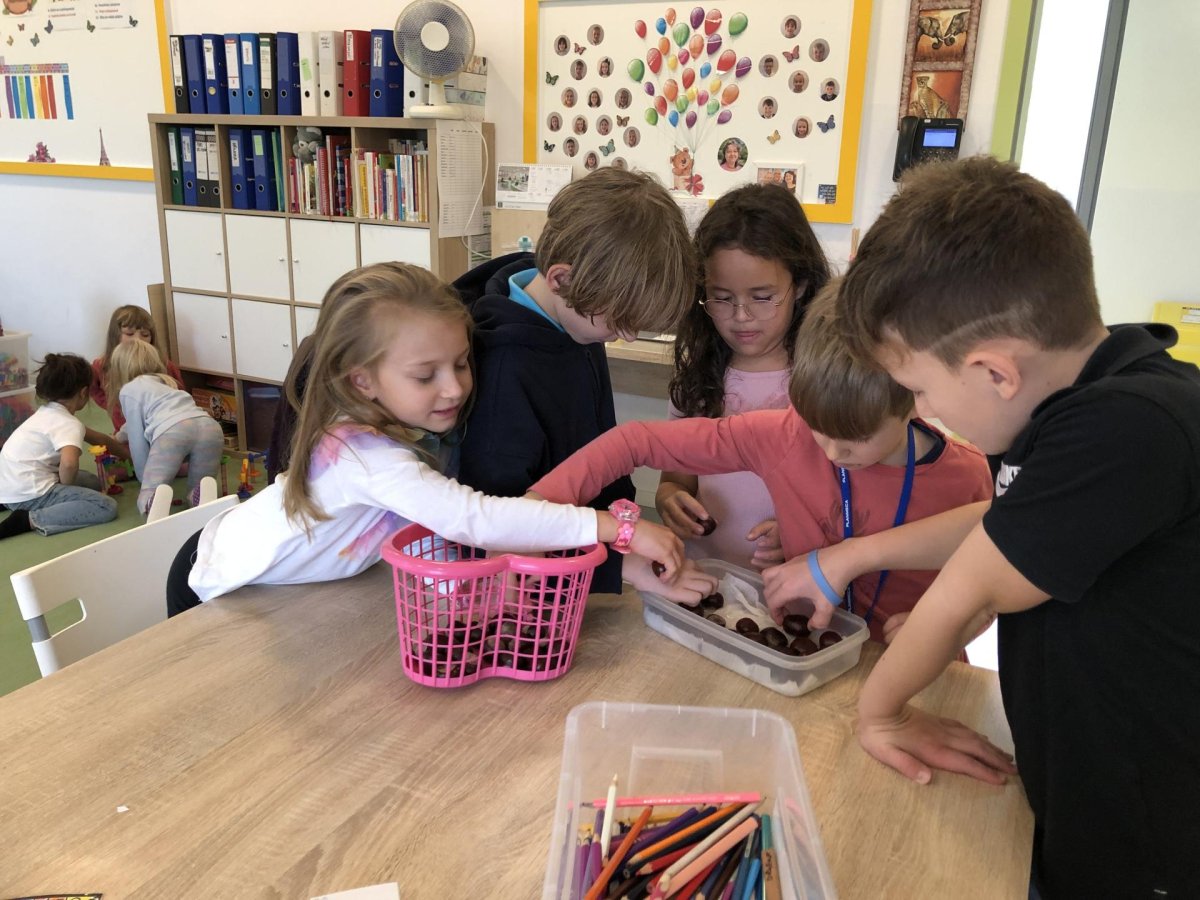 Dnes jsme dočetli poslední příběh z dětské knížky o dřeváčcích a jejich majitelce. Poté jsme se pustili do tvoření – každý si vybarvil list podle své fantazie. Kdo si přinesl skleničku, tak jsme dali do vody první kaštany a teď budeme čekat na zázrka, kdy nám začnou klíčit. Po této práci následoval kroužek Vědecké pokusy, kde jsme objevovali malé zázraky světa kolem nás. A protože nám přálo počasí, zakončili jsme den venku na hřišti, které máme prostě rádi.