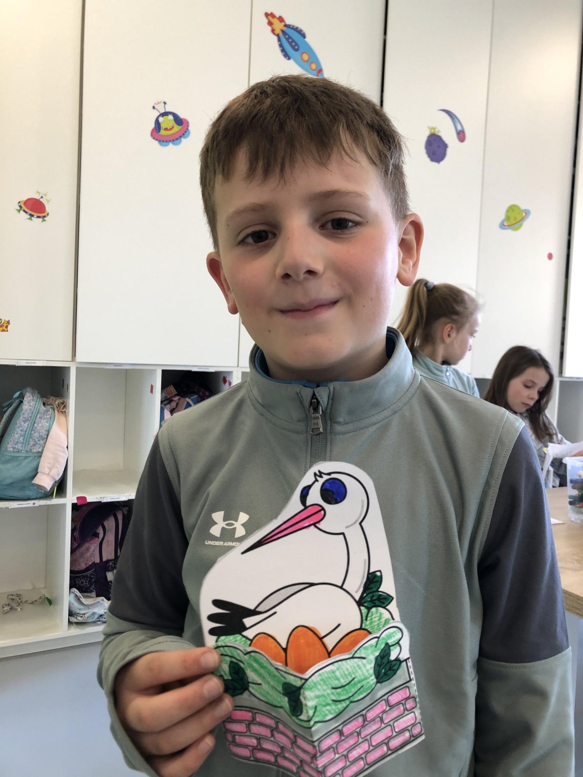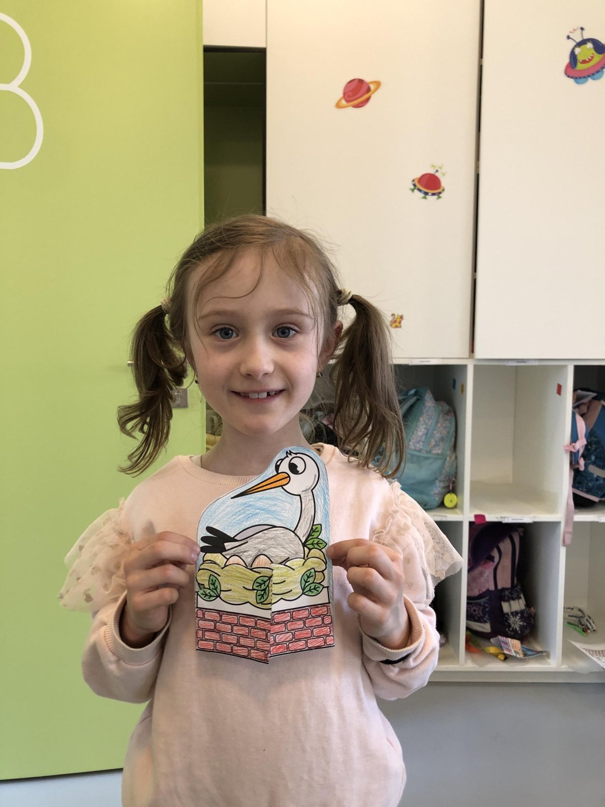 Dnes jsme se ponořili do povídání o čápech, těch vznešených poslech jara, a objevovali jsme jejich zajímavý život i zvyky. Povídání nás příjemně naladilo a s nadšením jsme se poté pustili do tvoření čapího hnízda. Celou dobu, co jsme pracovali nás provázela pohádka o čapí rodince, kterou jsme poslouchali a povídali si pak o ní. Po práci jsme vyběhli ven, protože nám krásně svítilo sluníčko.