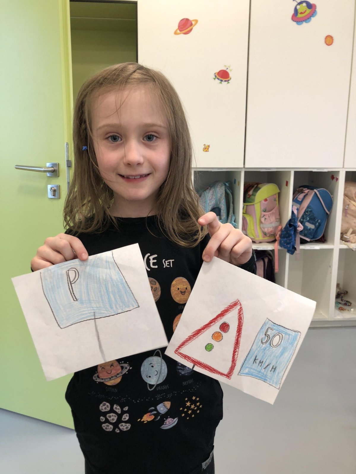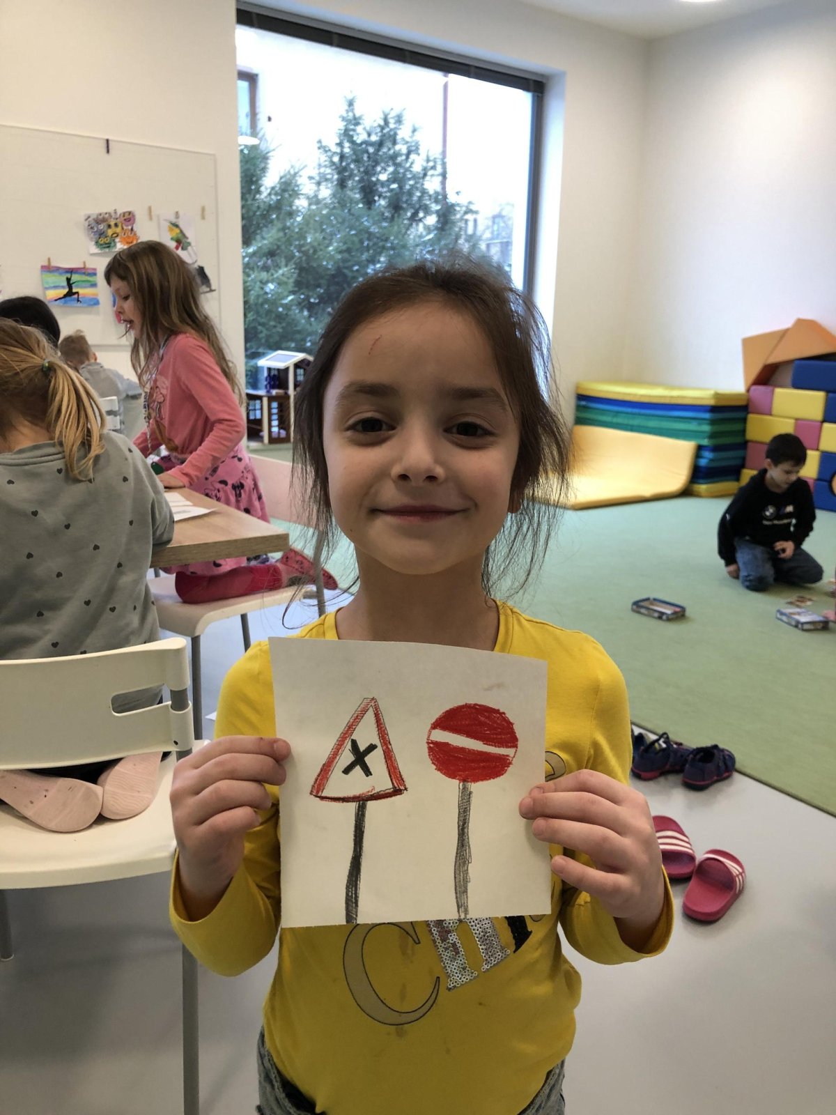 Každé dítě nakreslilo značku, kterou zná a vidí kolem sebe. Díky dopravním značkám je doprava přehlednější a bezpečnější ?