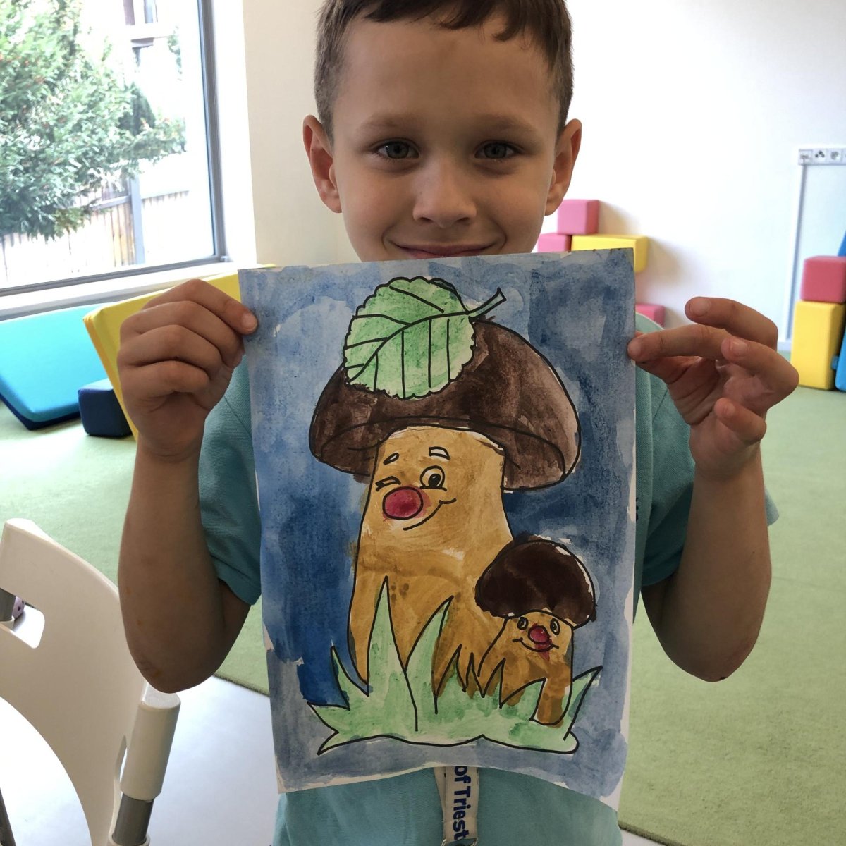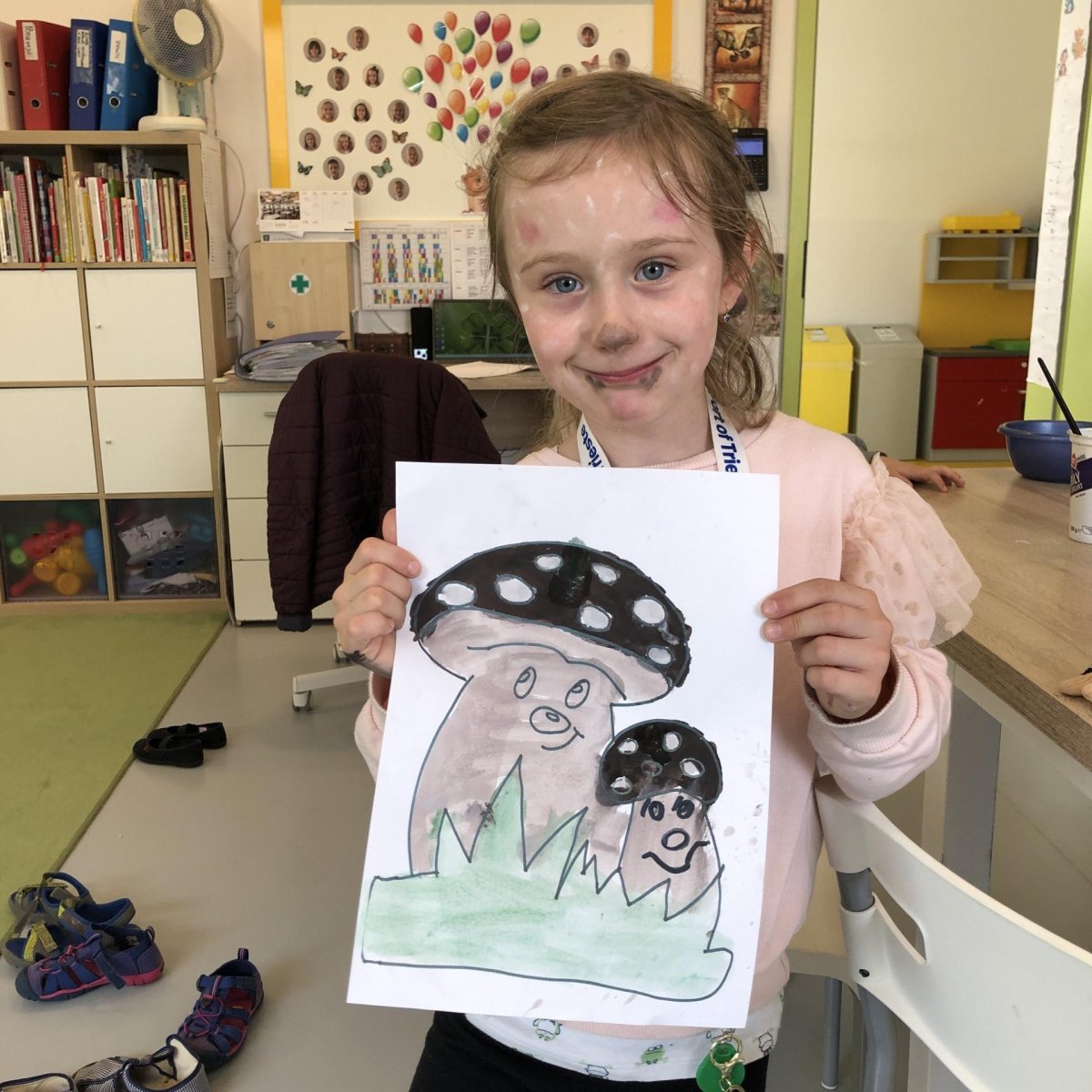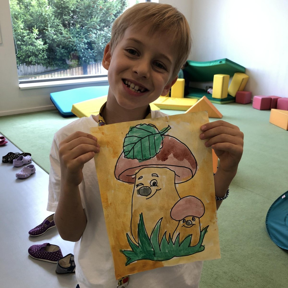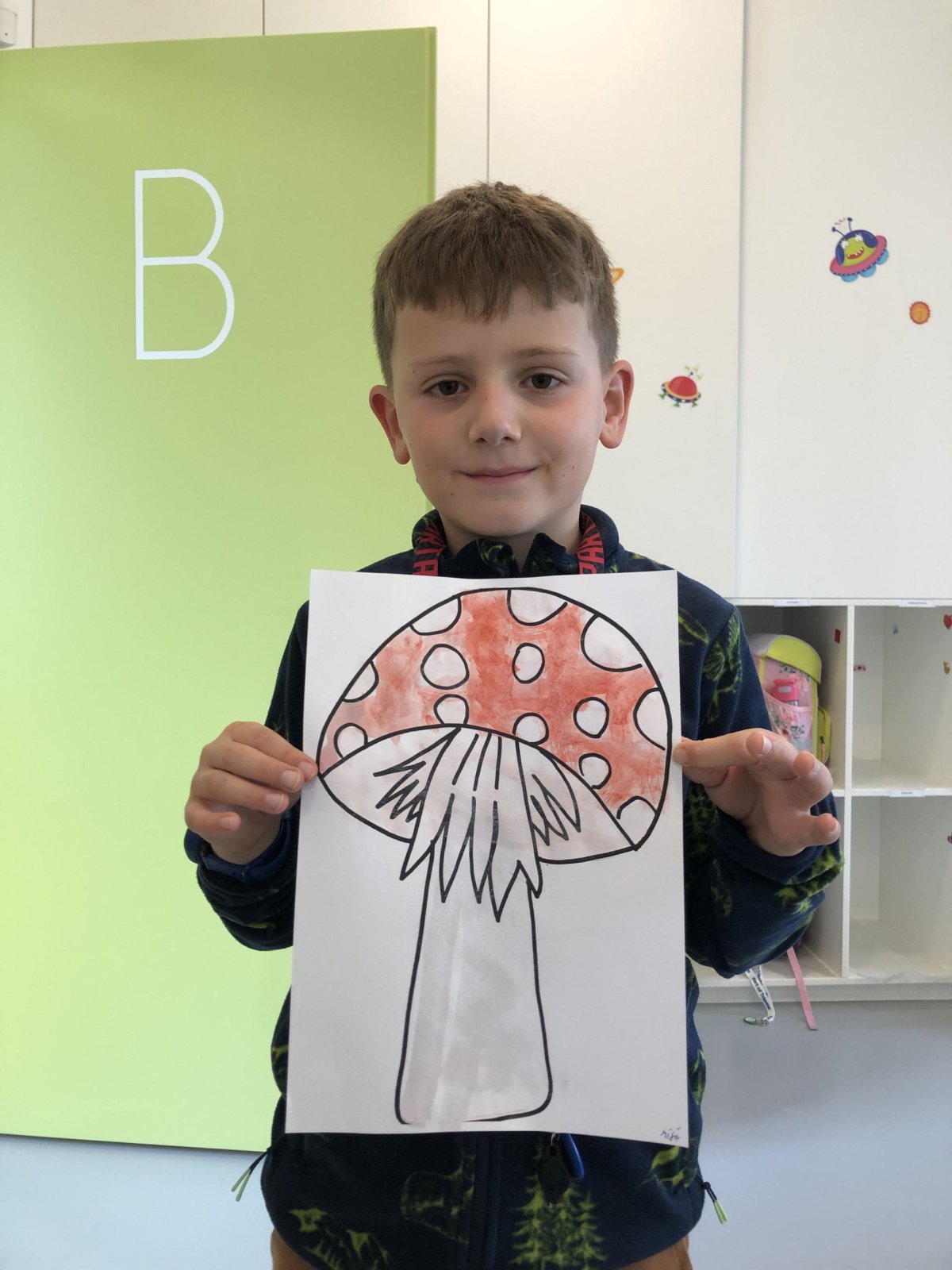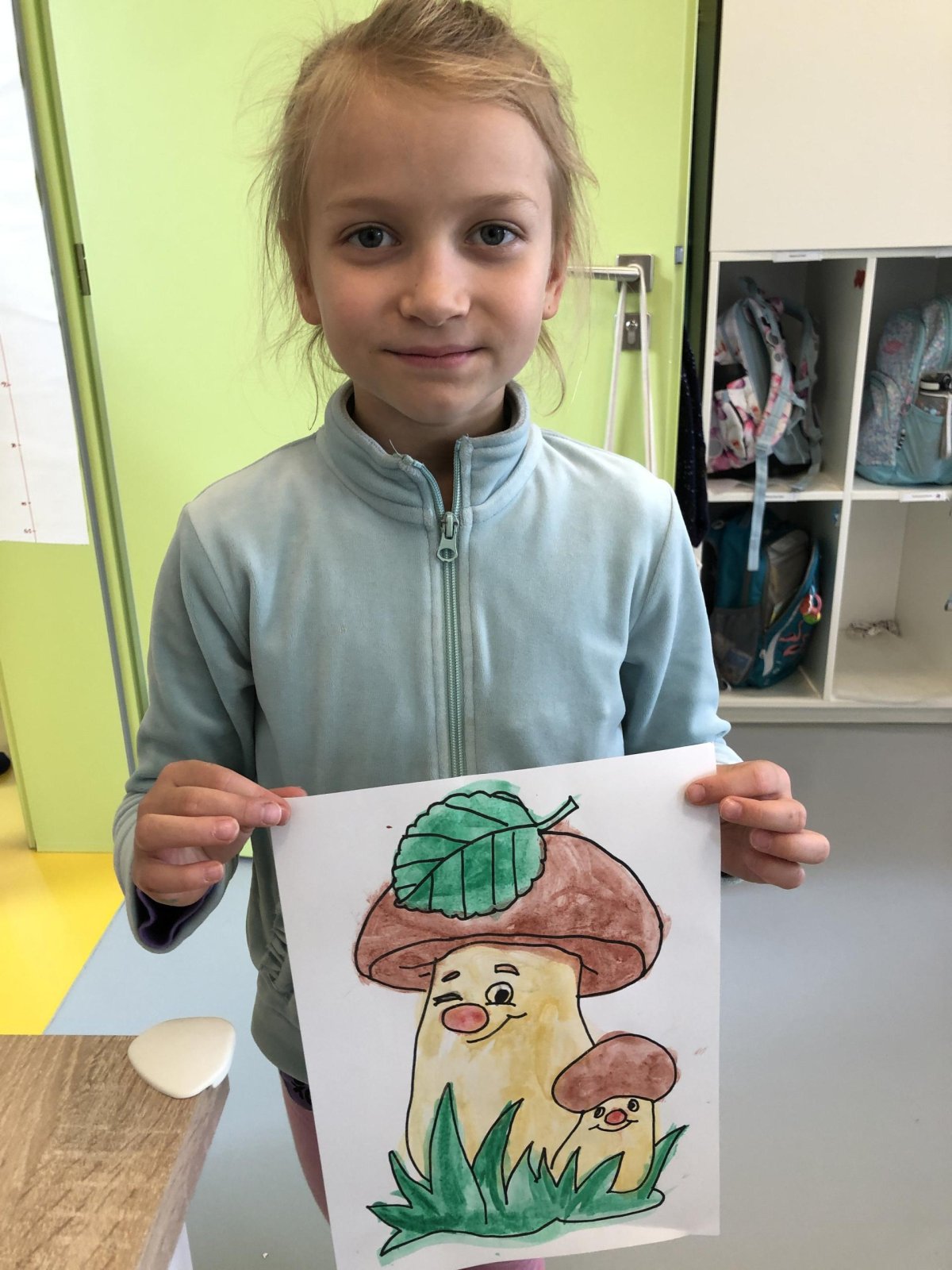 Houby jsou také velmi užitečné v přírodě – pomáhají rozkládat odpadní látky a živí stromy. Teď je čas sbírání hub a my jsme si je také namalovali. Četli jsme příběh Dobrá rada a snědli jsme 3 kg jablek od našeho pana kucharě. Ty ale byli. Venku jsme si zahráli a běhali co to šlo.