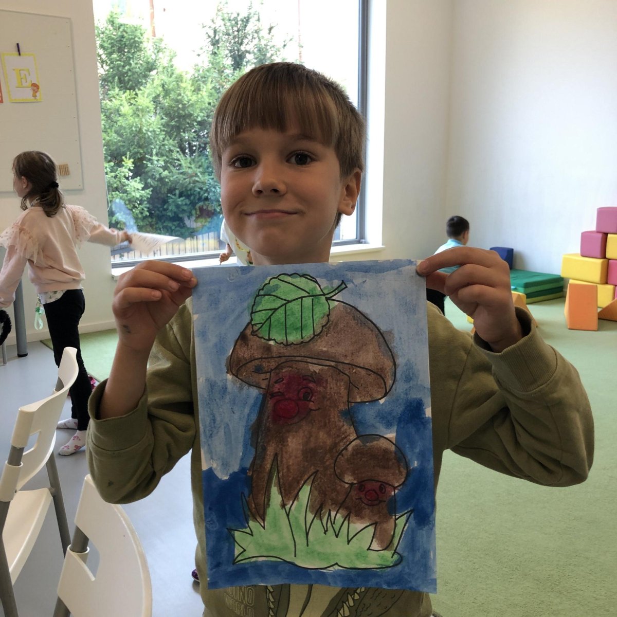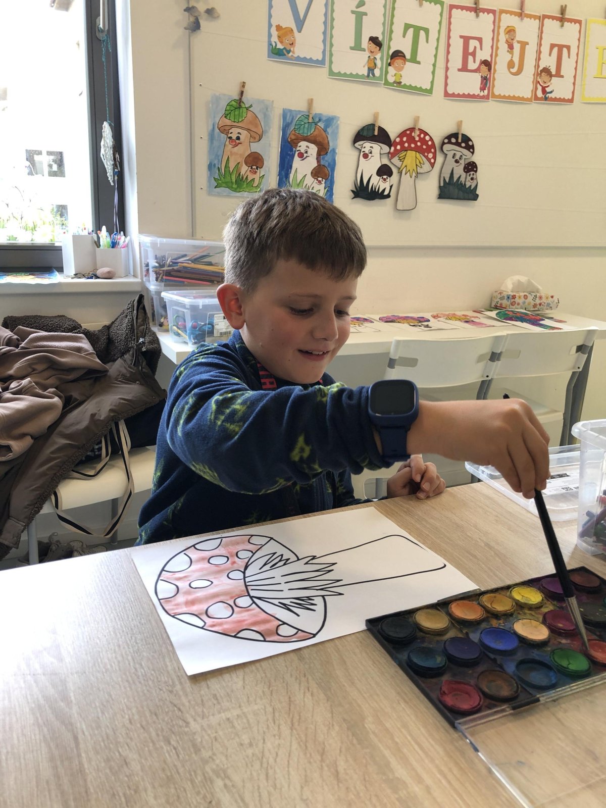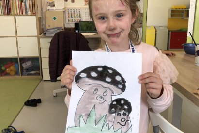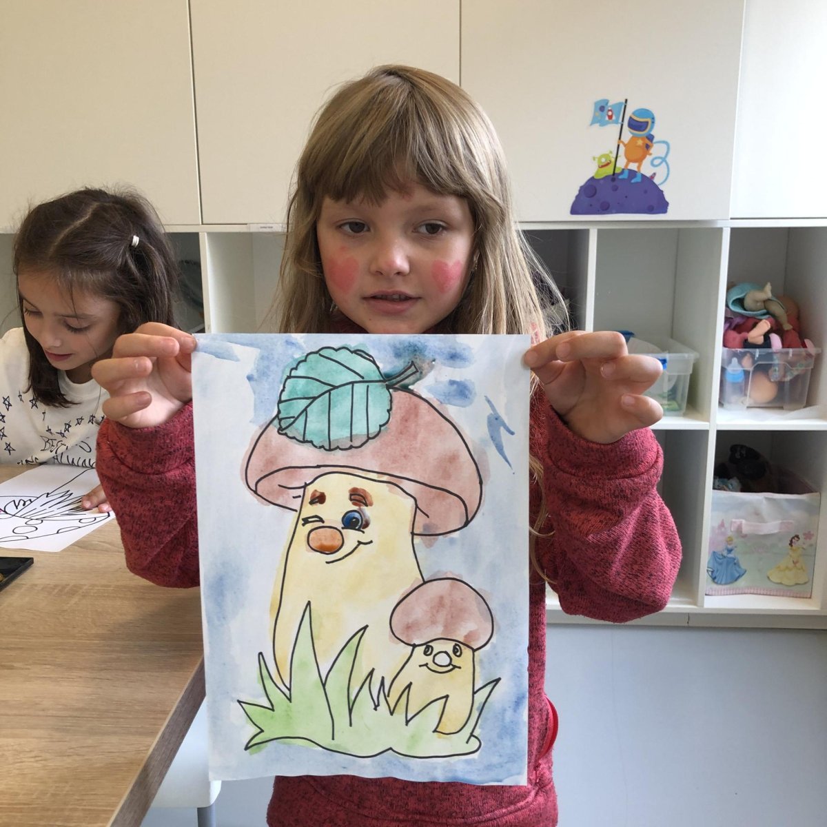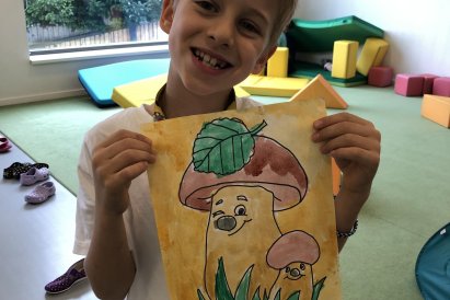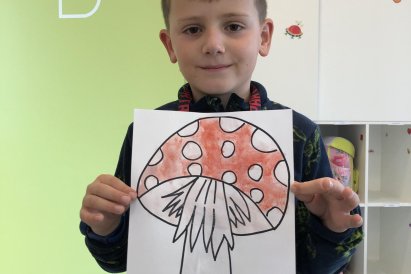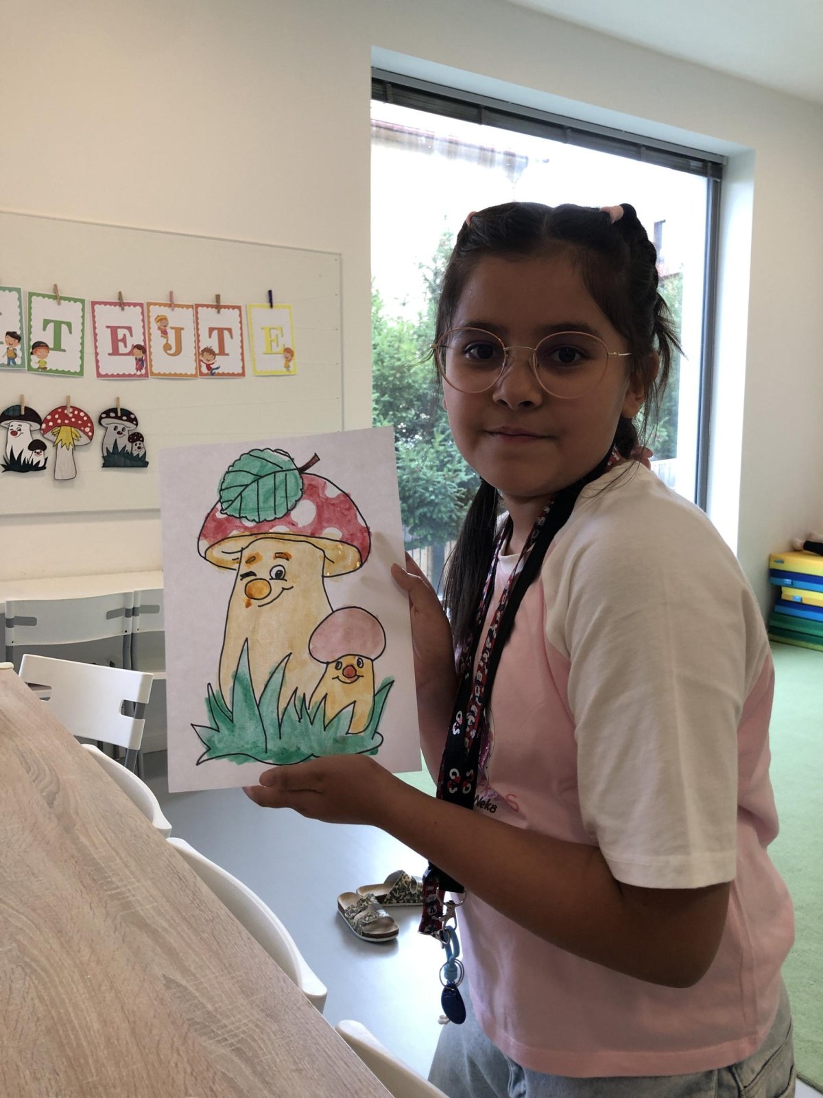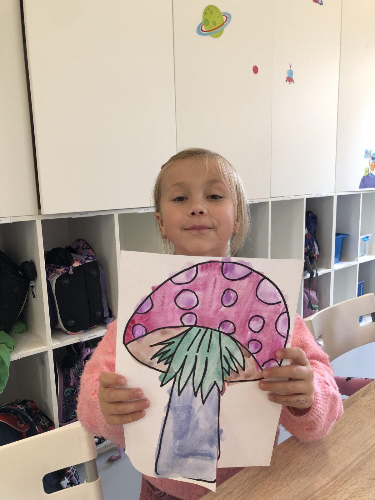 Houby jsou také velmi užitečné v přírodě – pomáhají rozkládat odpadní látky a živí stromy. Teď je čas sbírání hub a my jsme si je také namalovali. Četli jsme příběh Dobrá rada a snědli jsme 3 kg jablek od našeho pana kucharě. Ty ale byli. Venku jsme si zahráli a běhali co to šlo.