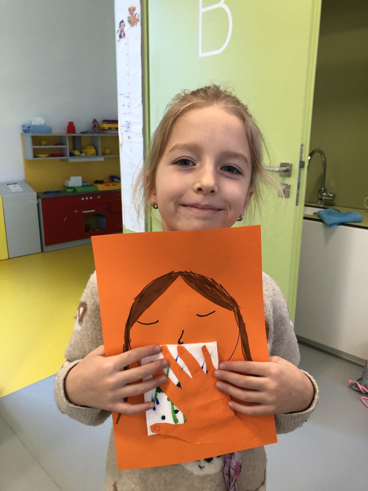 Dnes jsme si s dětmi ztvárnili Kašlánka. Nakreslili jsme si sami sebe, jak vypadáme, když jsme nemocní, a povídali jsme si o tom, jak se správně chovat při kašli a rýmě – že bacily patří do kapesníčku, ne do ruky, a že se nos nemá potahovat. Společně jsme si zazpívali písničku Bác, bác bacily, která se dětem moc líbila a rády ji zpívají.