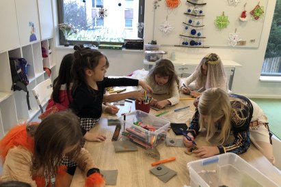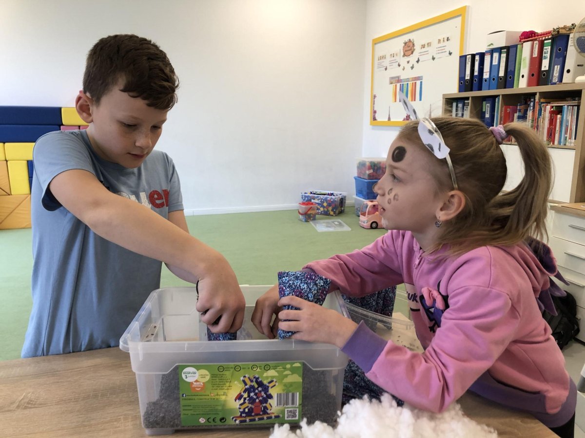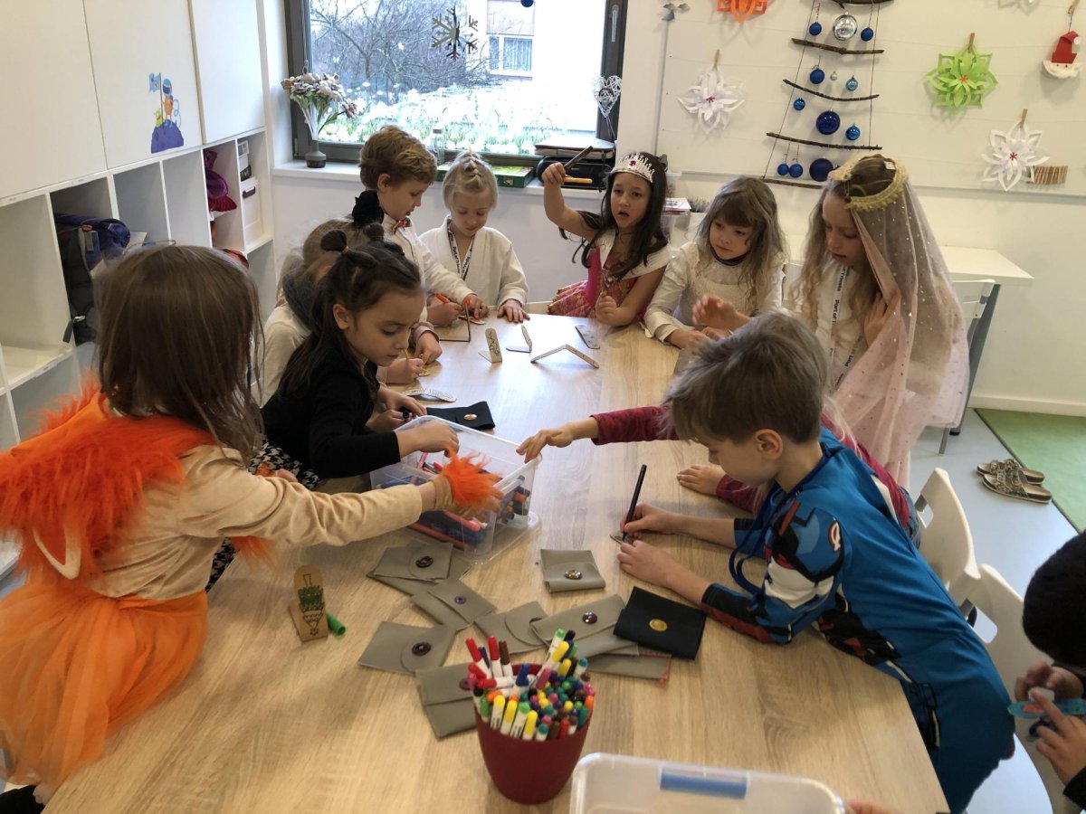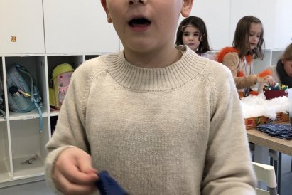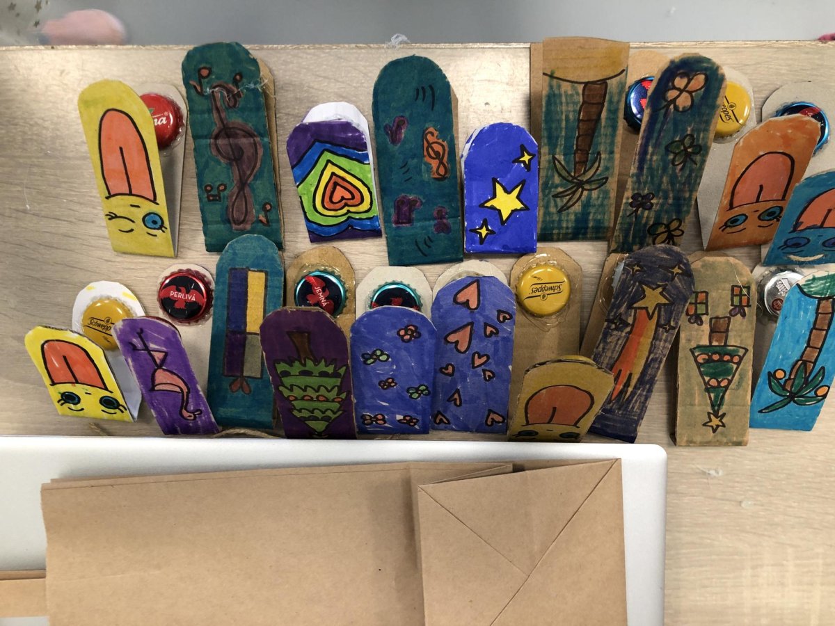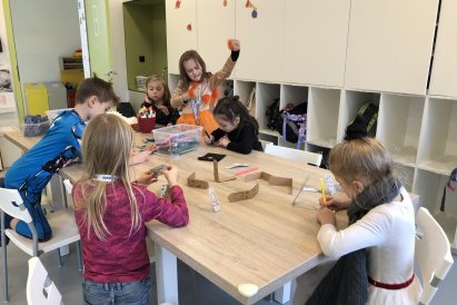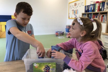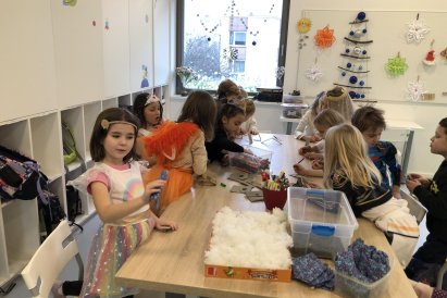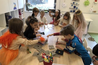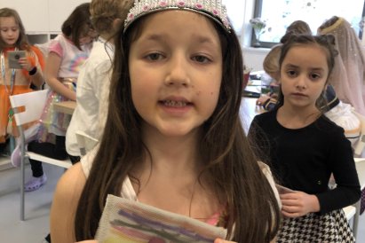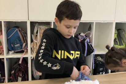Dnes jsme měli tvořivý den. Zdobili jsme taštičky, které jsme si vzali s sebou domů, plnili jsme polštářky s levandulí na jarmark a barvili jsme kastaněty na jarmark. Práce bylo opravdu hodně, ale vše jsme s pomocí paní vychovatelky dobře zvládli. Po práci jsme si postavili domeček a hráli si až do konce družiny.