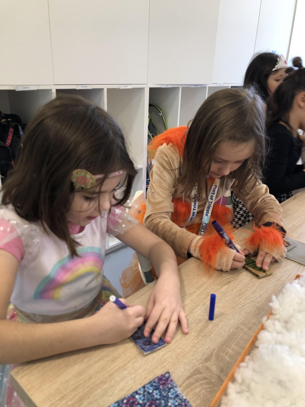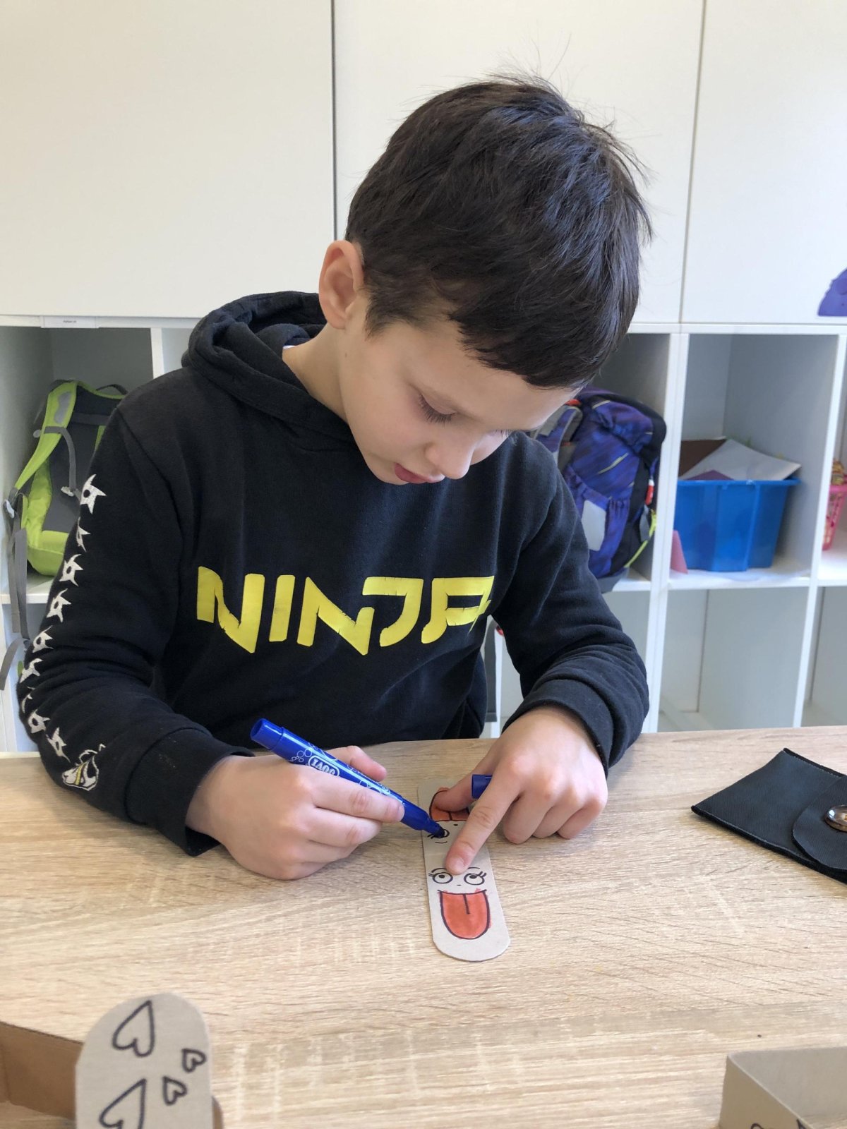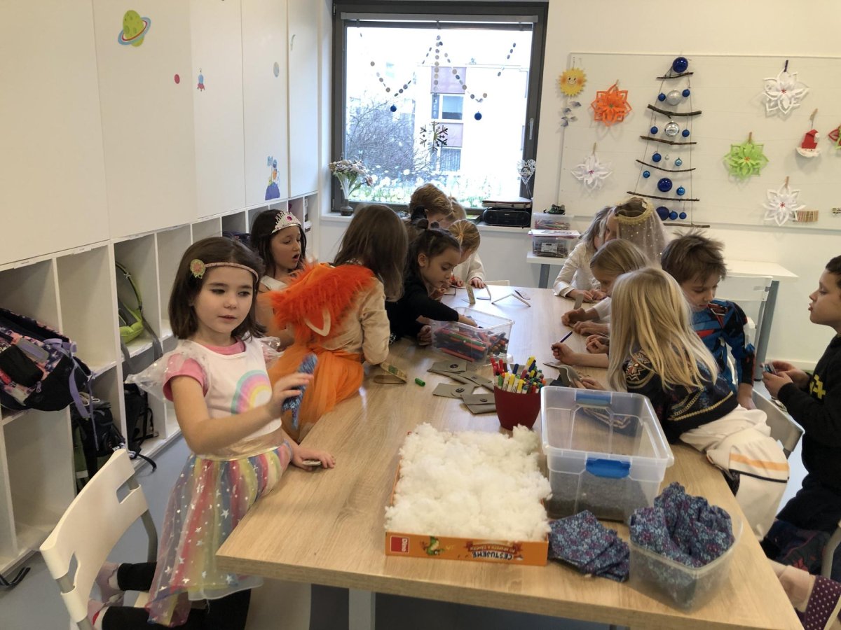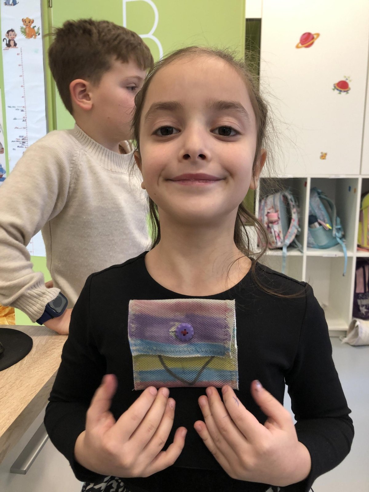 Dnes jsme měli tvořivý den. Zdobili jsme taštičky, které jsme si vzali s sebou domů, plnili jsme polštářky s levandulí na jarmark a barvili jsme kastaněty na jarmark. Práce bylo opravdu hodně, ale vše jsme s pomocí paní vychovatelky dobře zvládli. Po práci jsme si postavili domeček a hráli si až do konce družiny.