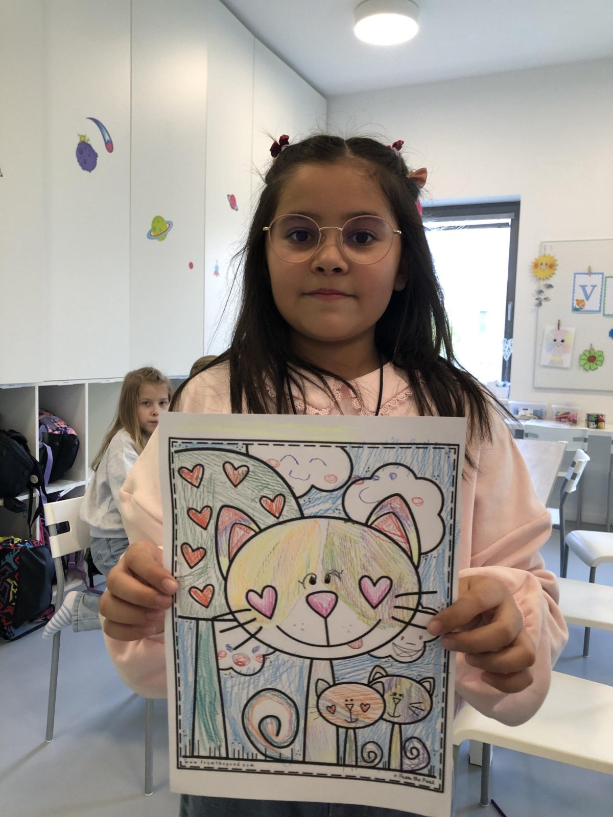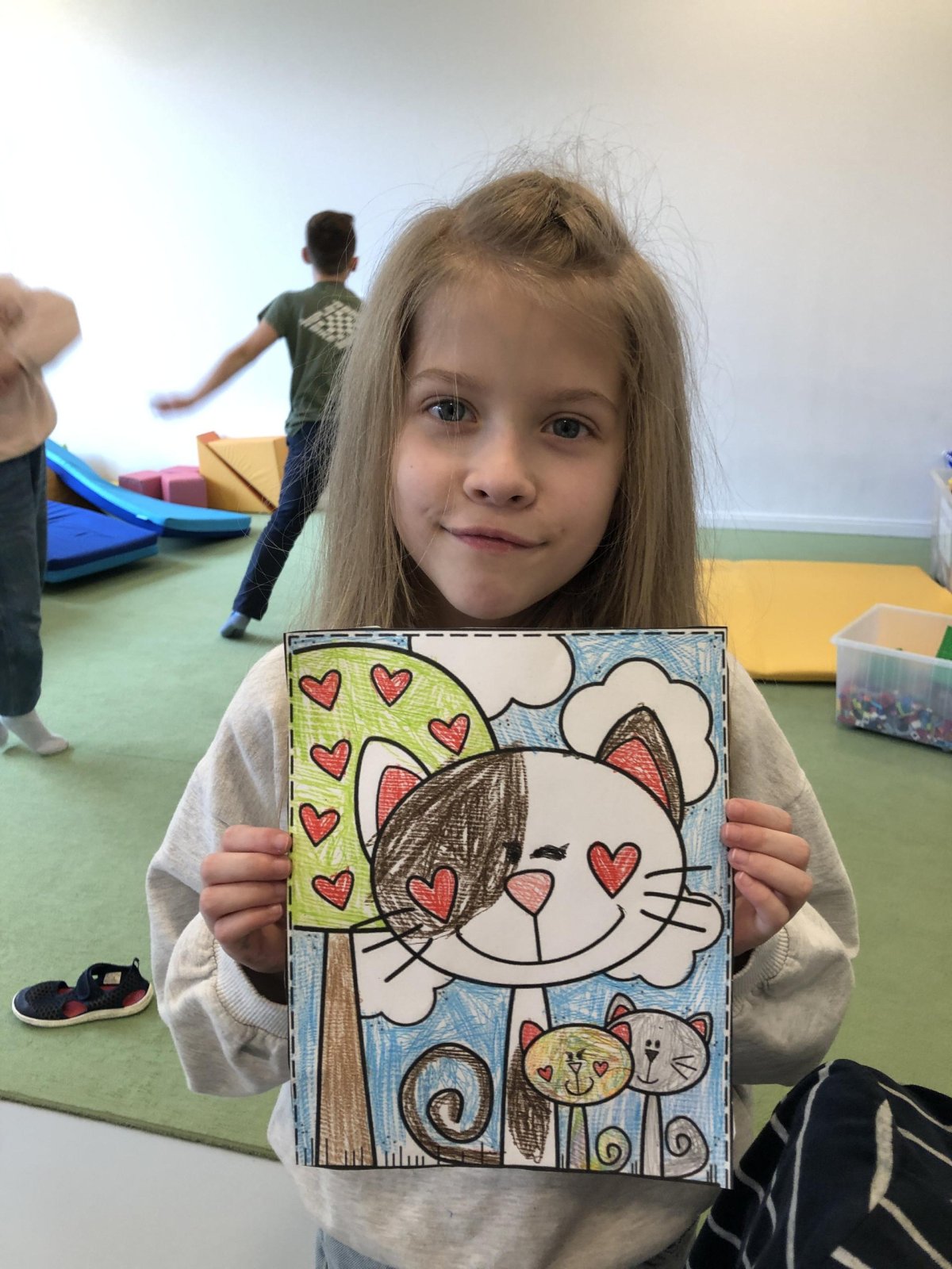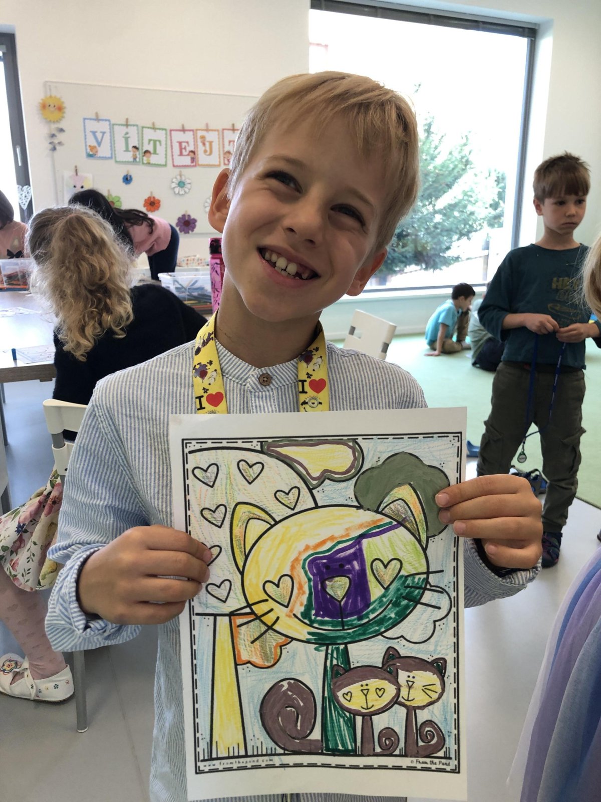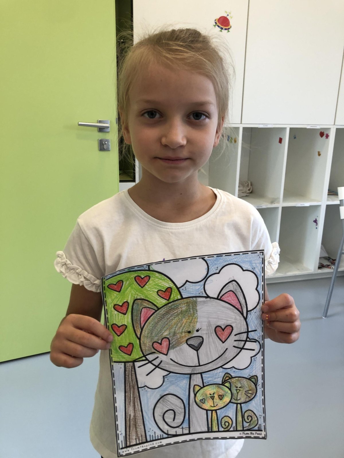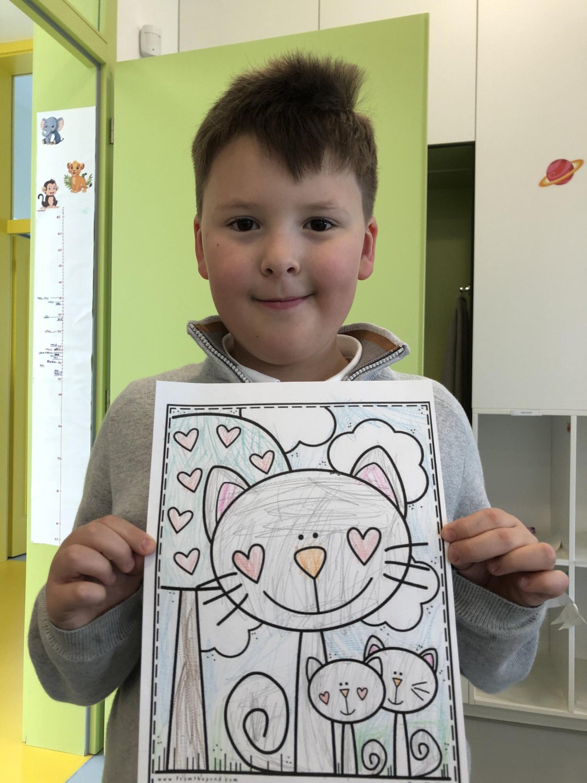Dnes jsme se ve družině proměnili v malé kočičí umělce! Malovali jsme kočičí rodinku. Děti se do toho pustily s nadšením a jejich kočky ožívaly na papíře. Bylo krásné sledovat, jak každý malířský tah vzniká spontánně a s radostí. U toho jsme zpívali naše oblíbené písničky a musím vám říct, že nám to jde skvěle. Hotové obrázky jsme zavěsili do družiny na zábradlí a tam si je můžeter prohlídnout.
