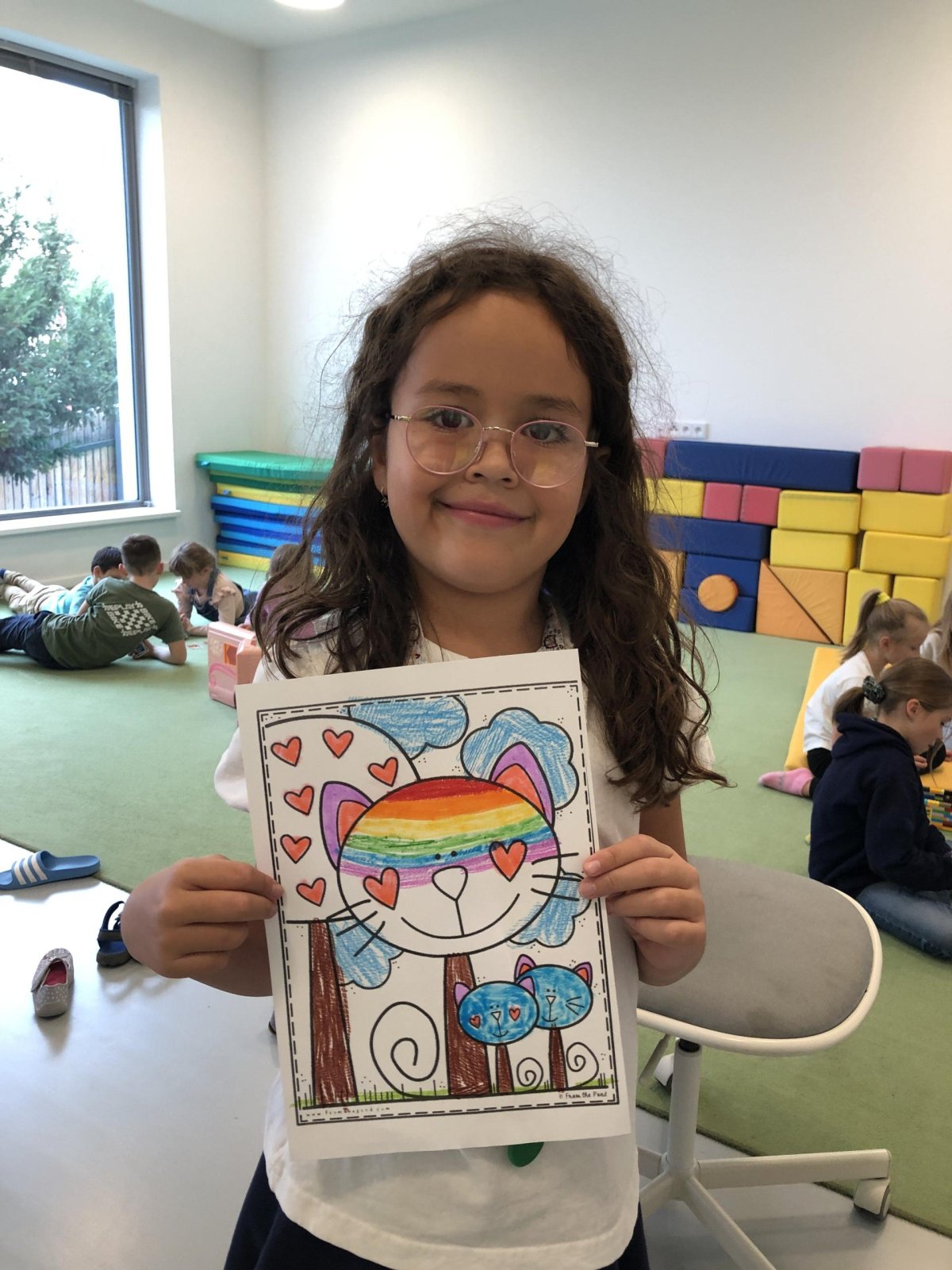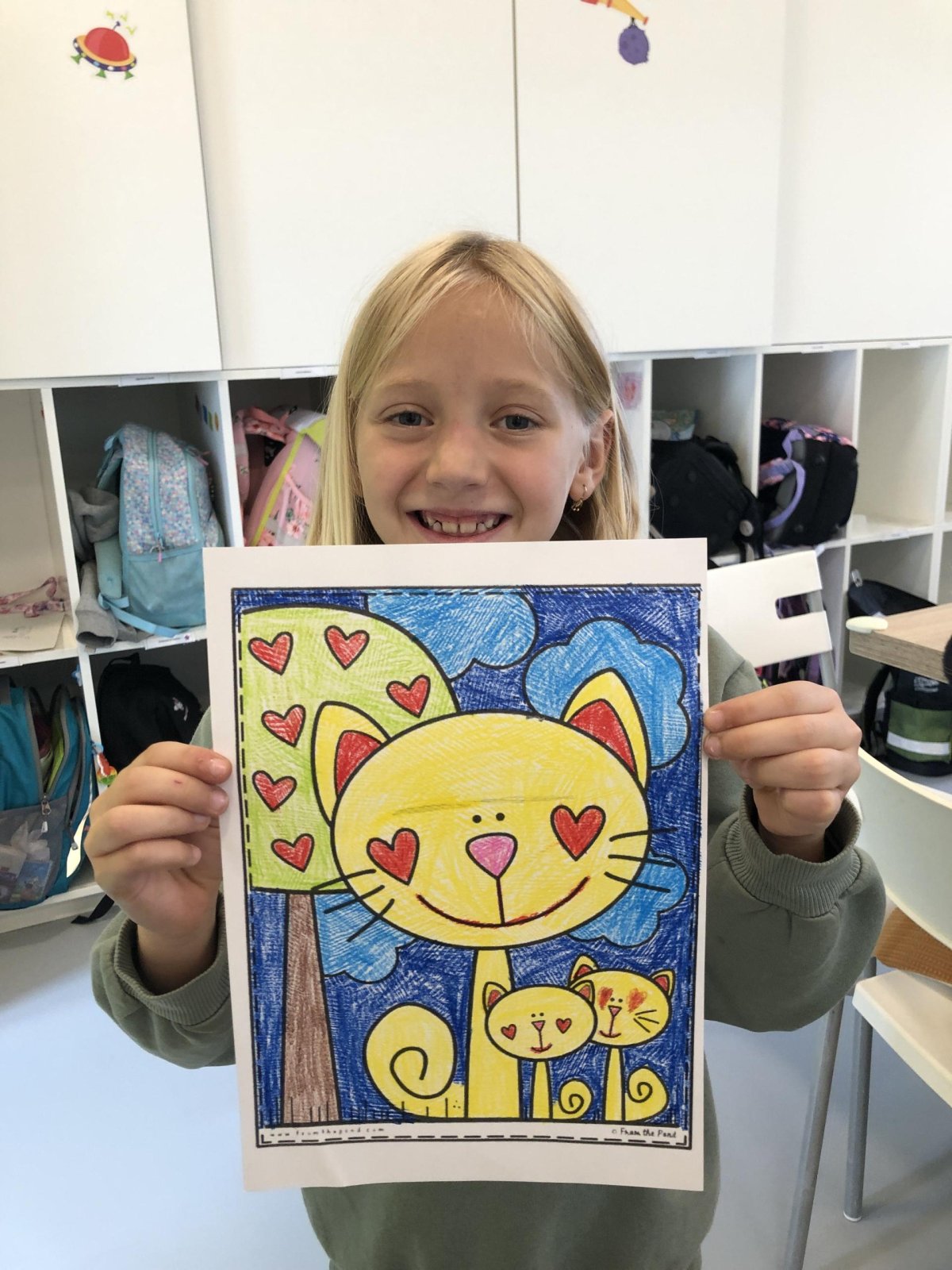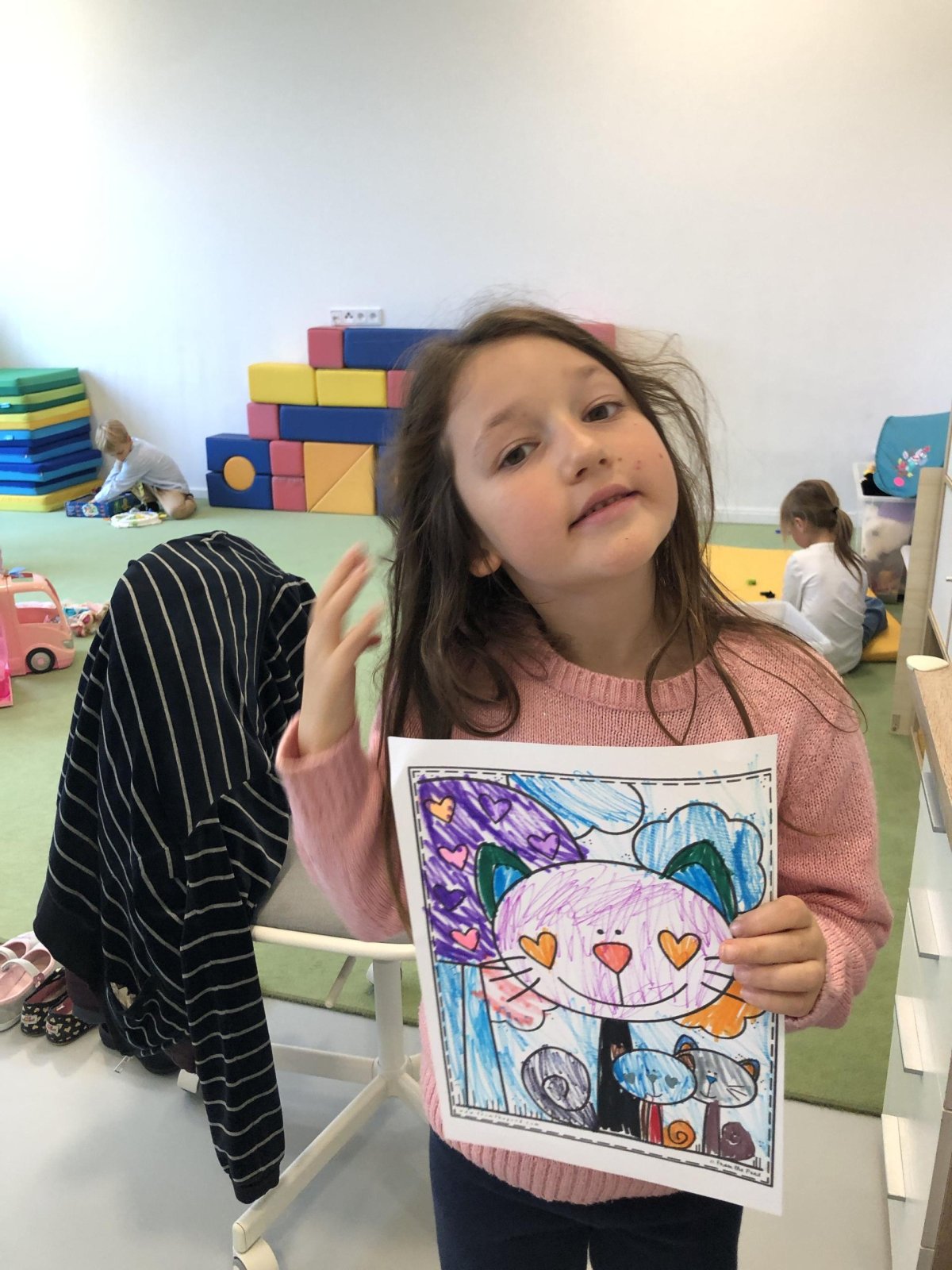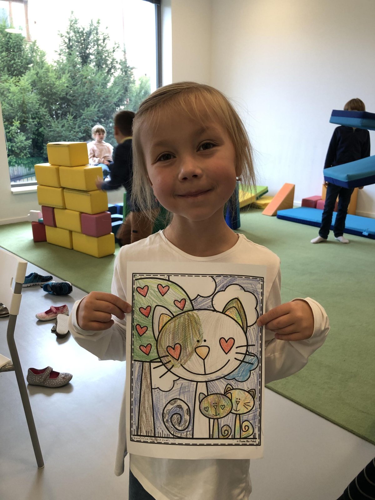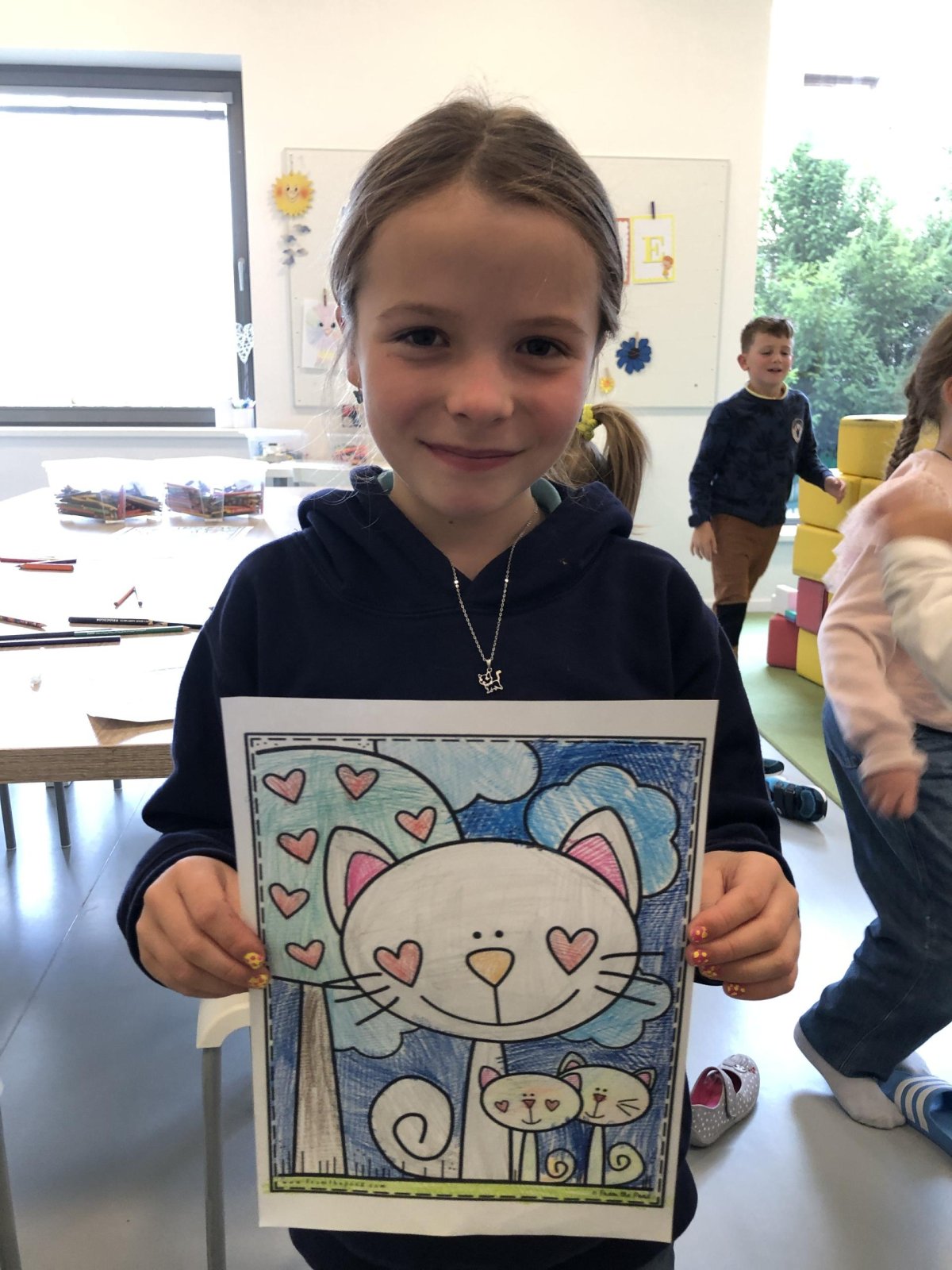 Dnes jsme se ve družině proměnili v malé kočičí umělce! Malovali jsme kočičí rodinku. Děti se do toho pustily s nadšením a jejich kočky ožívaly na papíře. Bylo krásné sledovat, jak každý malířský tah vzniká spontánně a s radostí. U toho jsme zpívali naše oblíbené písničky a musím vám říct, že nám to jde skvěle. Hotové obrázky jsme zavěsili do družiny na zábradlí a tam si je můžeter prohlídnout.