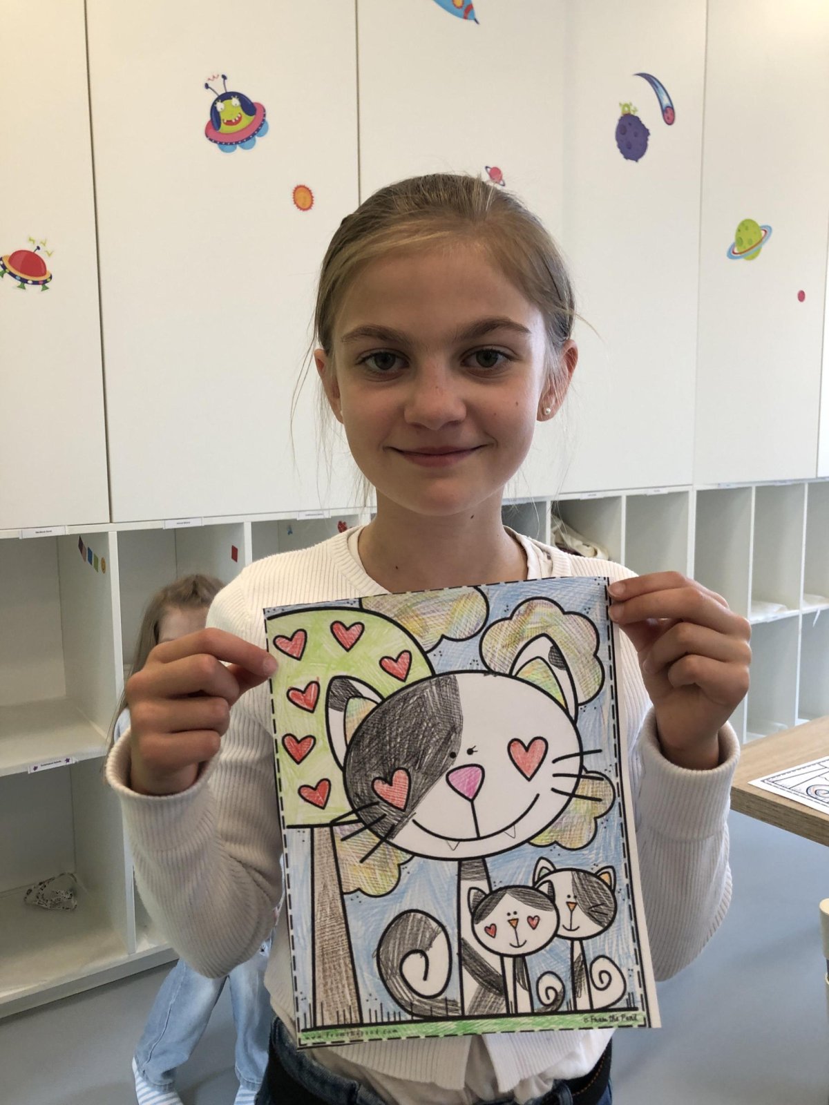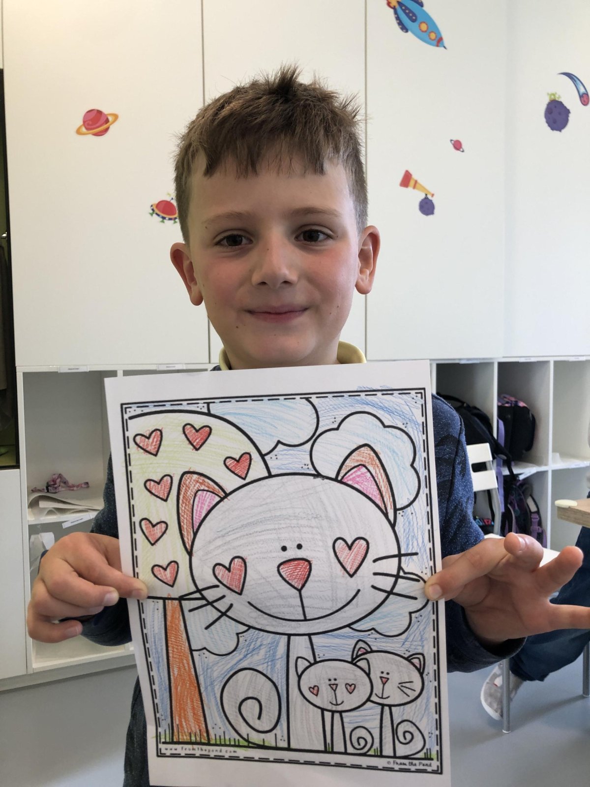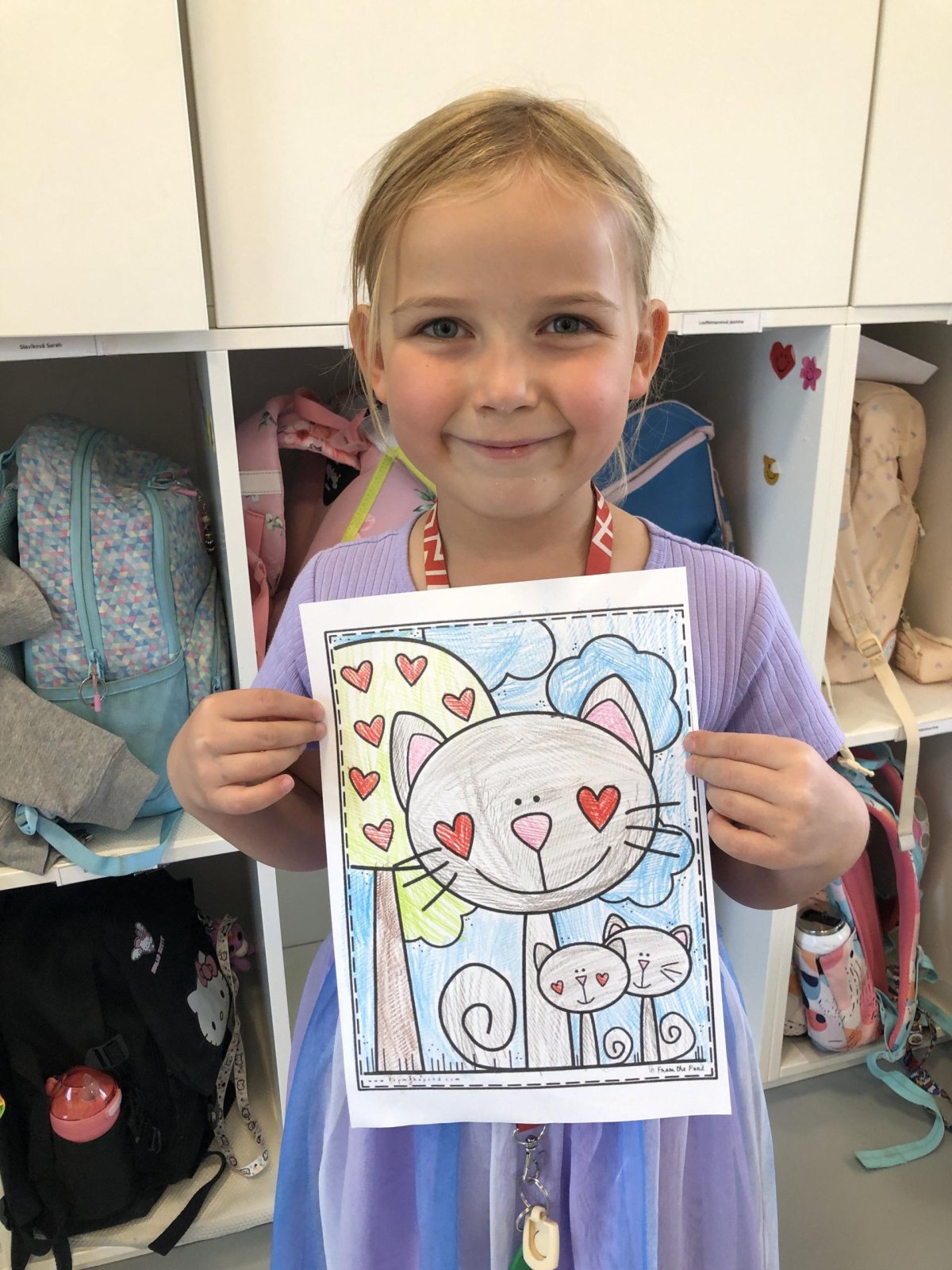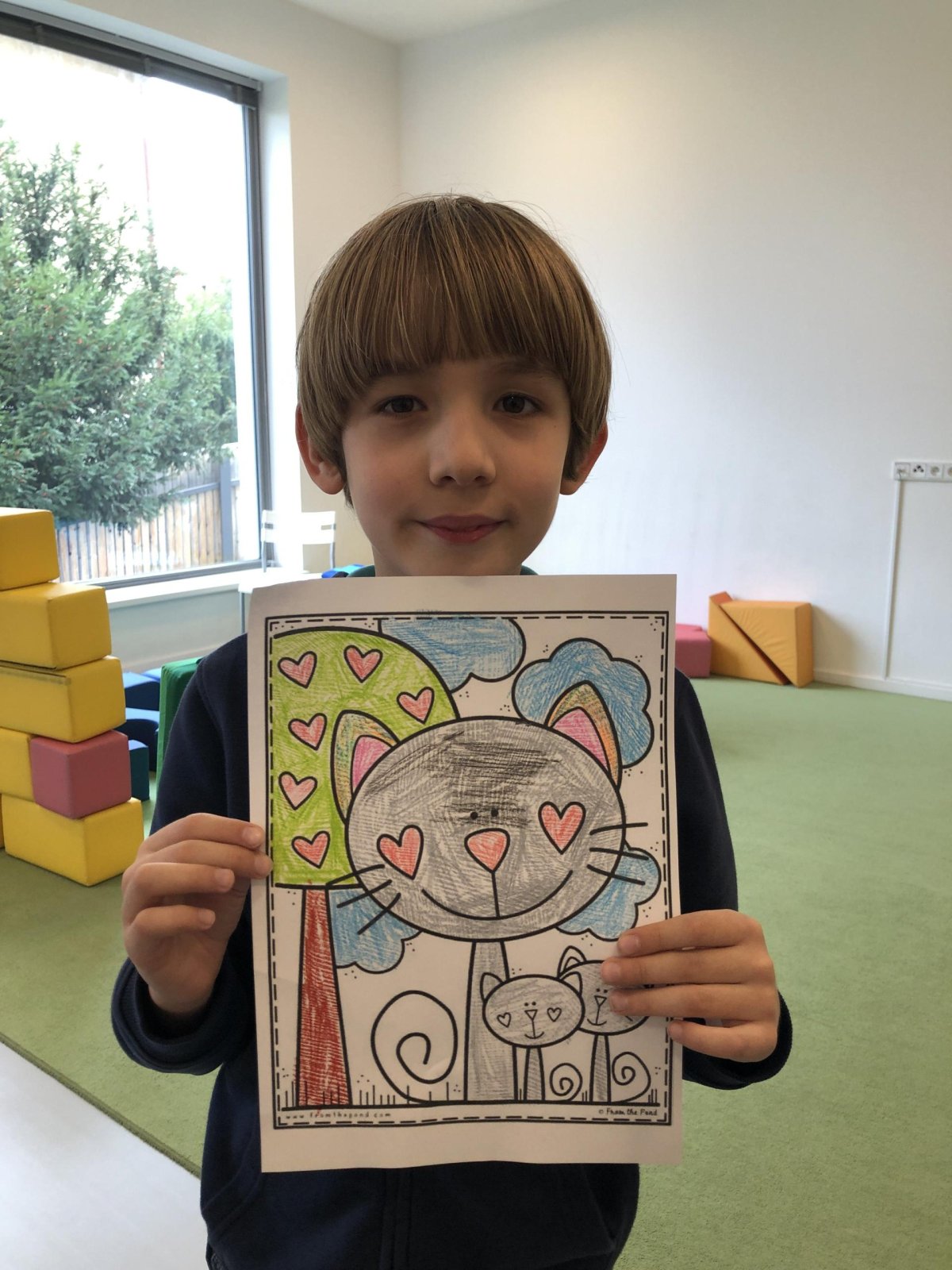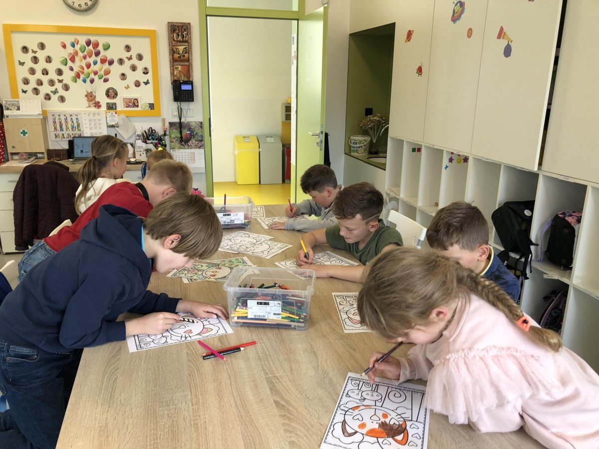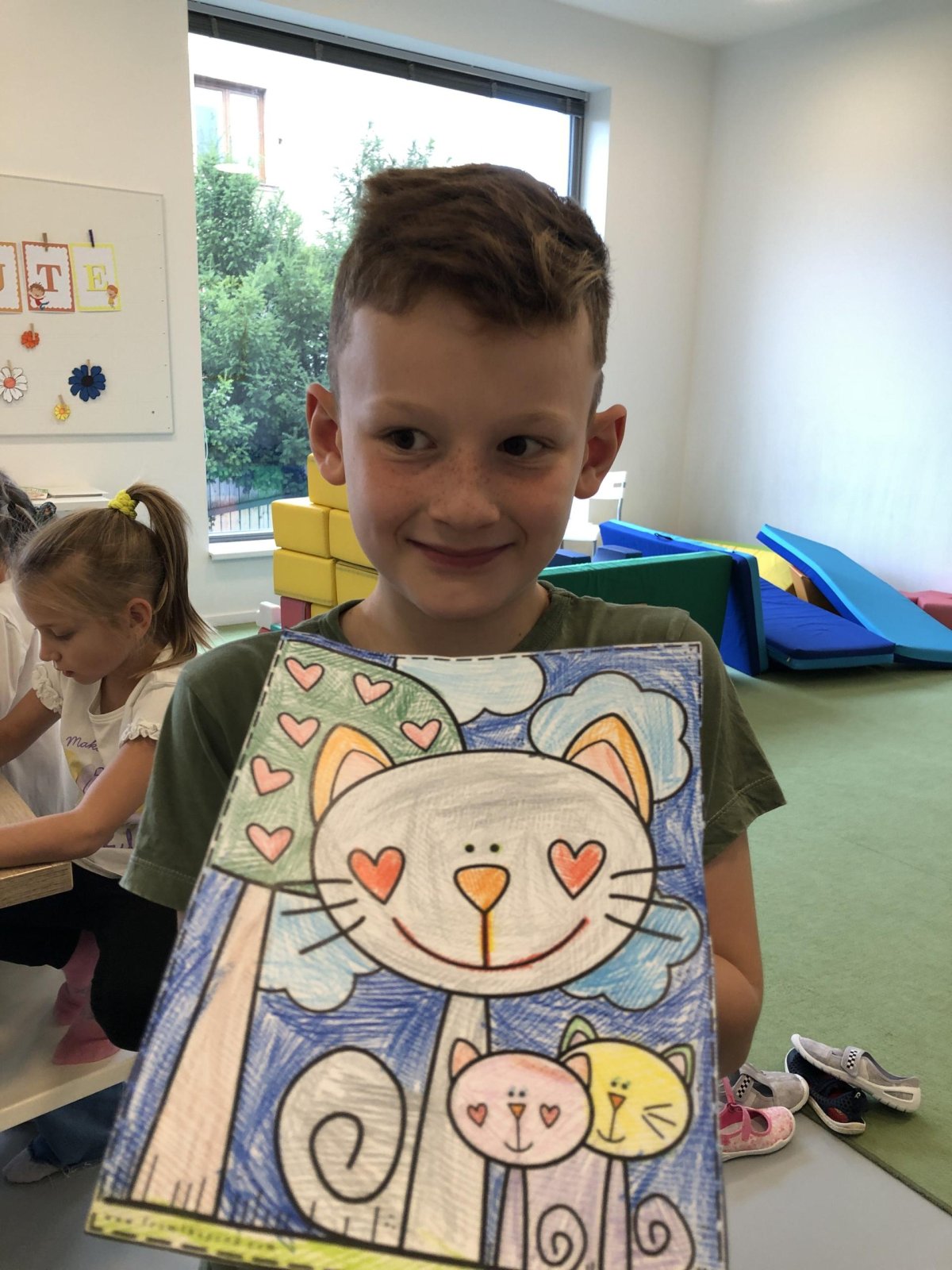 Dnes jsme se ve družině proměnili v malé kočičí umělce! Malovali jsme kočičí rodinku. Děti se do toho pustily s nadšením a jejich kočky ožívaly na papíře. Bylo krásné sledovat, jak každý malířský tah vzniká spontánně a s radostí. U toho jsme zpívali naše oblíbené písničky a musím vám říct, že nám to jde skvěle. Hotové obrázky jsme zavěsili do družiny na zábradlí a tam si je můžeter prohlídnout.