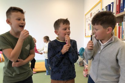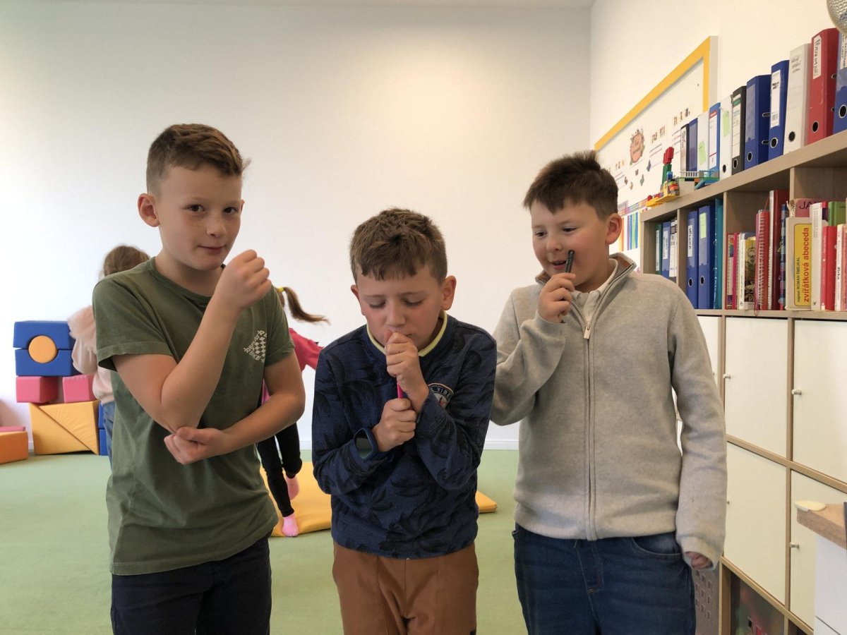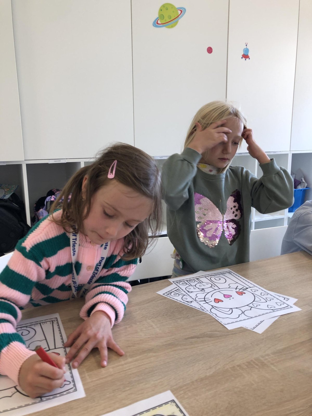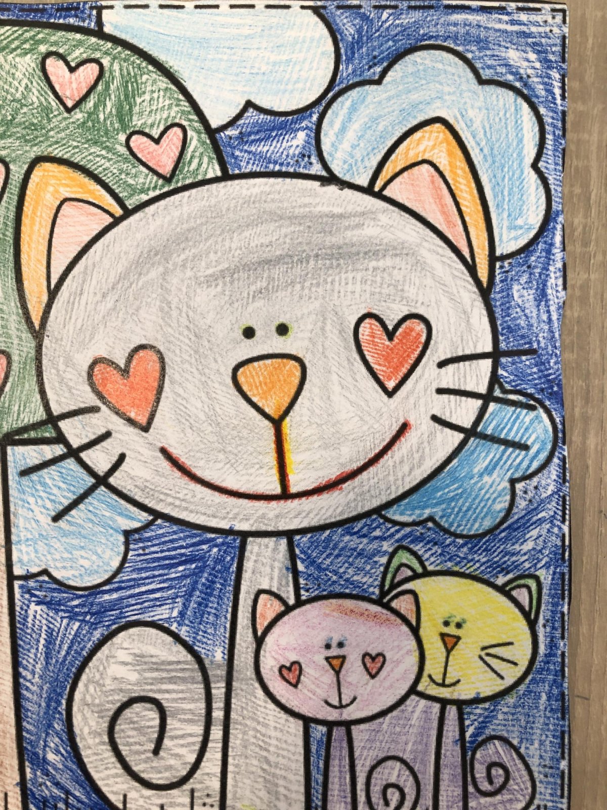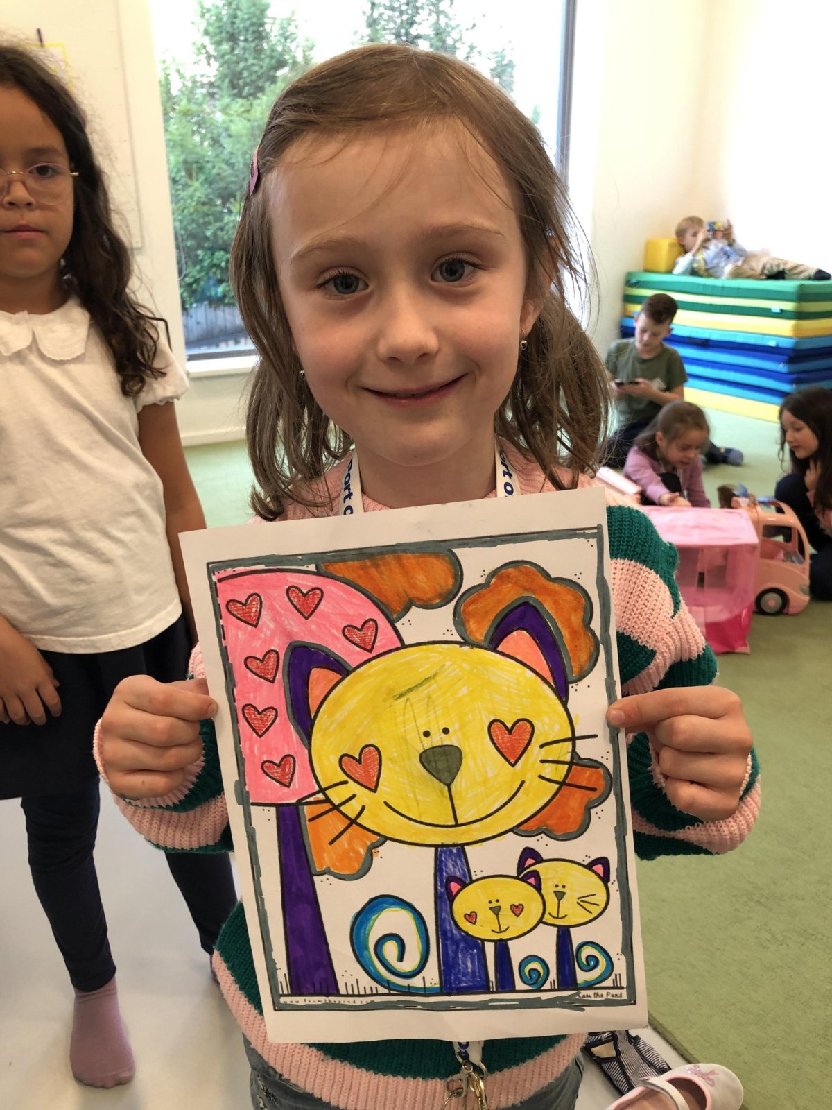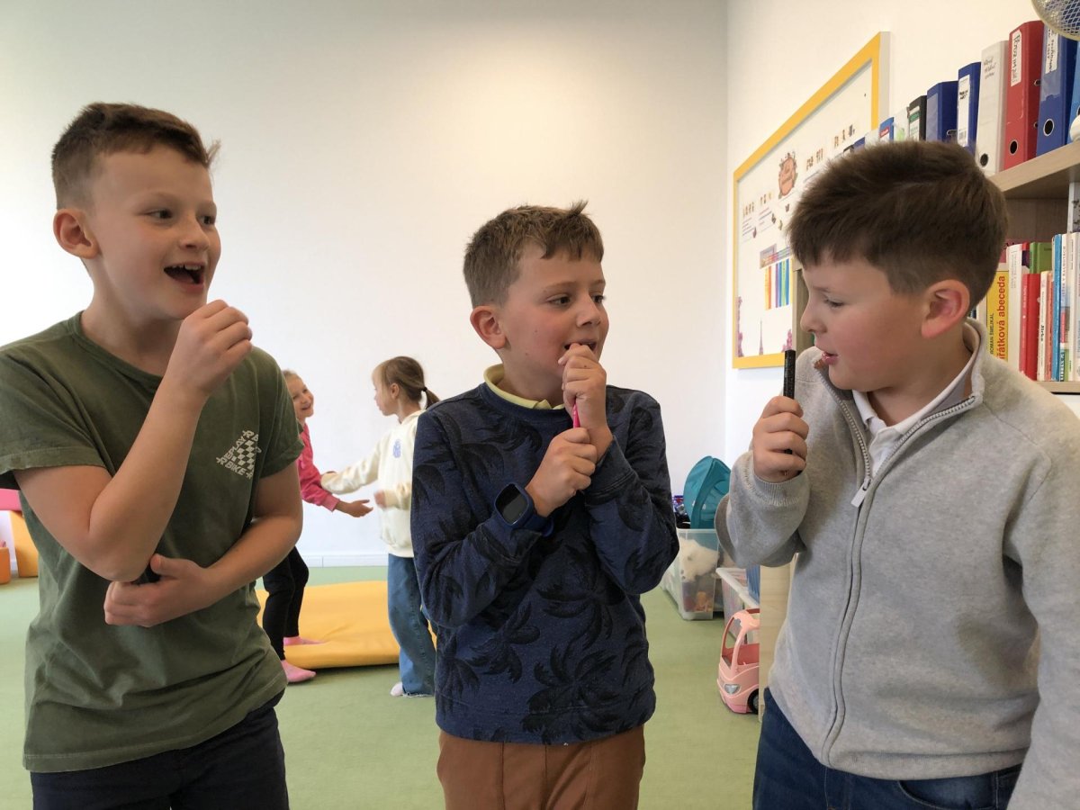 Dnes jsme se ve družině proměnili v malé kočičí umělce! Malovali jsme kočičí rodinku. Děti se do toho pustily s nadšením a jejich kočky ožívaly na papíře. Bylo krásné sledovat, jak každý malířský tah vzniká spontánně a s radostí. U toho jsme zpívali naše oblíbené písničky a musím vám říct, že nám to jde skvěle. Hotové obrázky jsme zavěsili do družiny na zábradlí a tam si je můžeter prohlídnout.