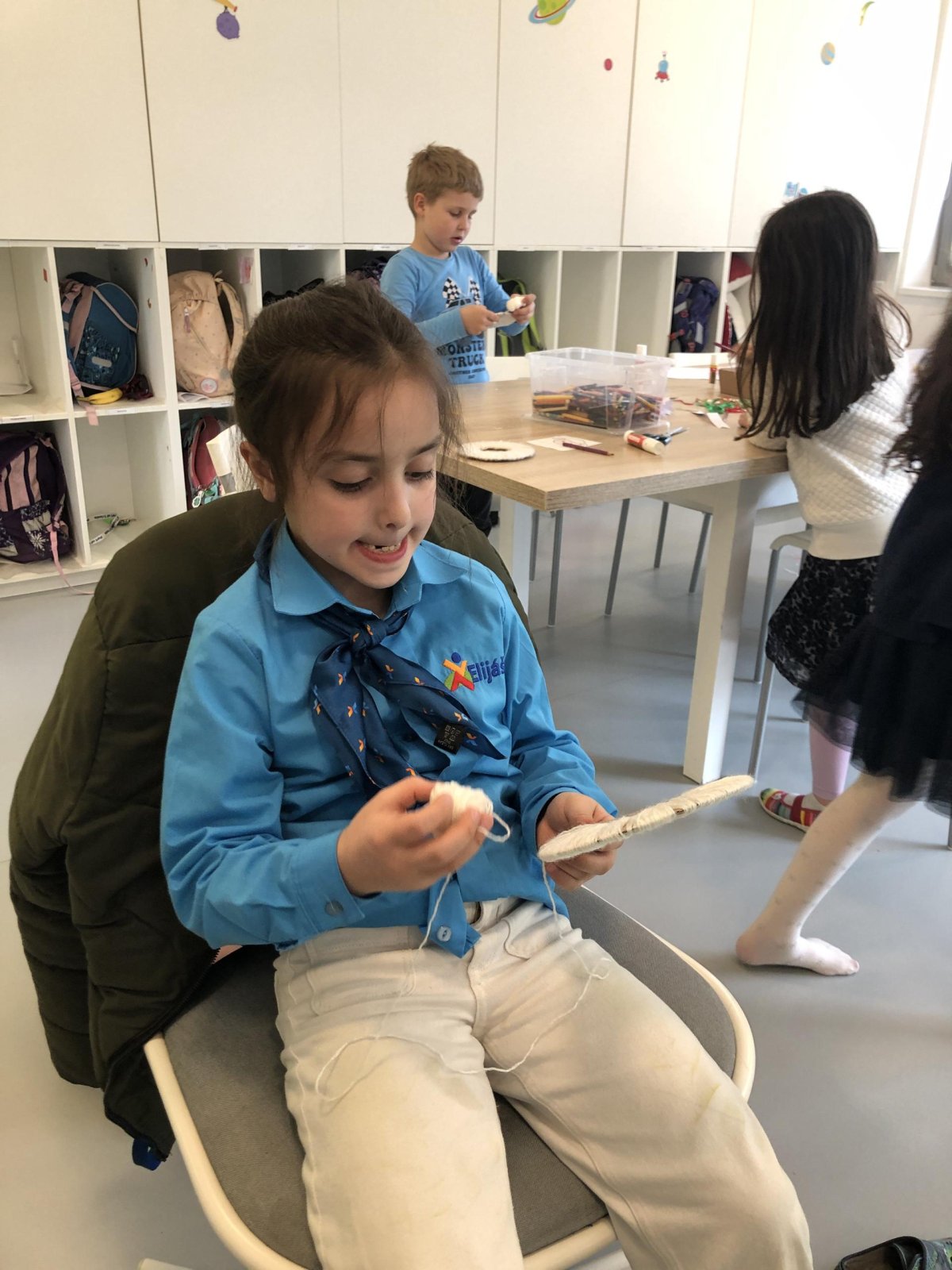 Dnes jsme si povídali o Květné neděli, poslouchali jsme písničku o oslíkovi, na kterém seděl Pán Ježíš, když procházel Jeruzalémem. Vyslechli jsme si dva biblické příběhy a následně jsme si vyrobili motanou ovečku. Dala nám zabrat, ale nakonec jsme to zvládli. Zazpívali jsme si také písničku, kterou dnes naše děti budou zpívat na Budějovické, a protože bylo venku krásně, šli jsme na hřiště.
