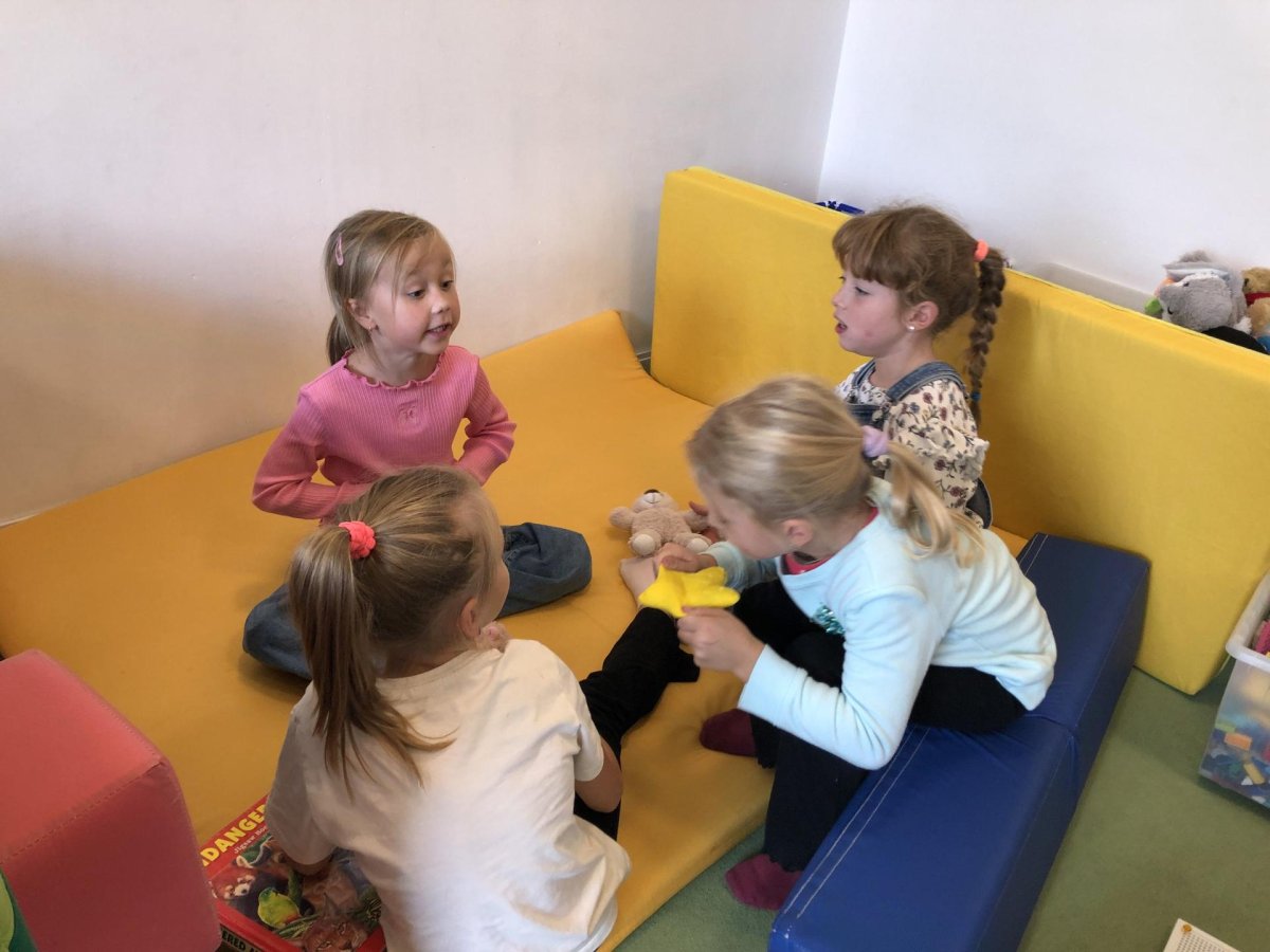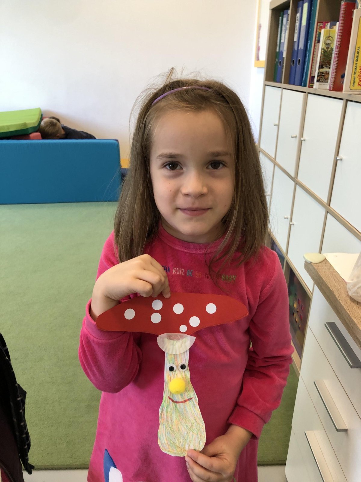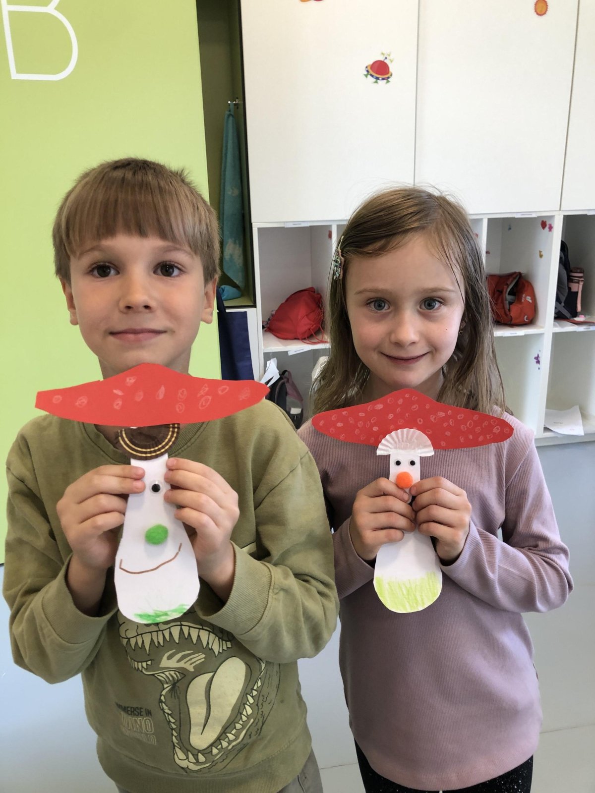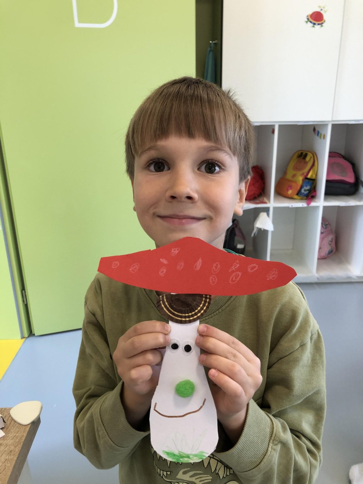 Dnes jsme si společně četli příběh o zajíčcích, kteří měli své dobrodružství, povídali jsme si o houbách a vyráběli jsme je z papíru. Každý si mohl vytvořit svoji vlastní houbičku – barevnou, veselou a jedinečnou. Na závěr jsme šli ven na sluníčko. Čerstvý vzduch a pohyb nám udělal dobře a celý den jsme si moc užili.