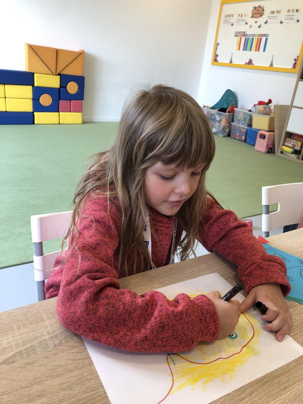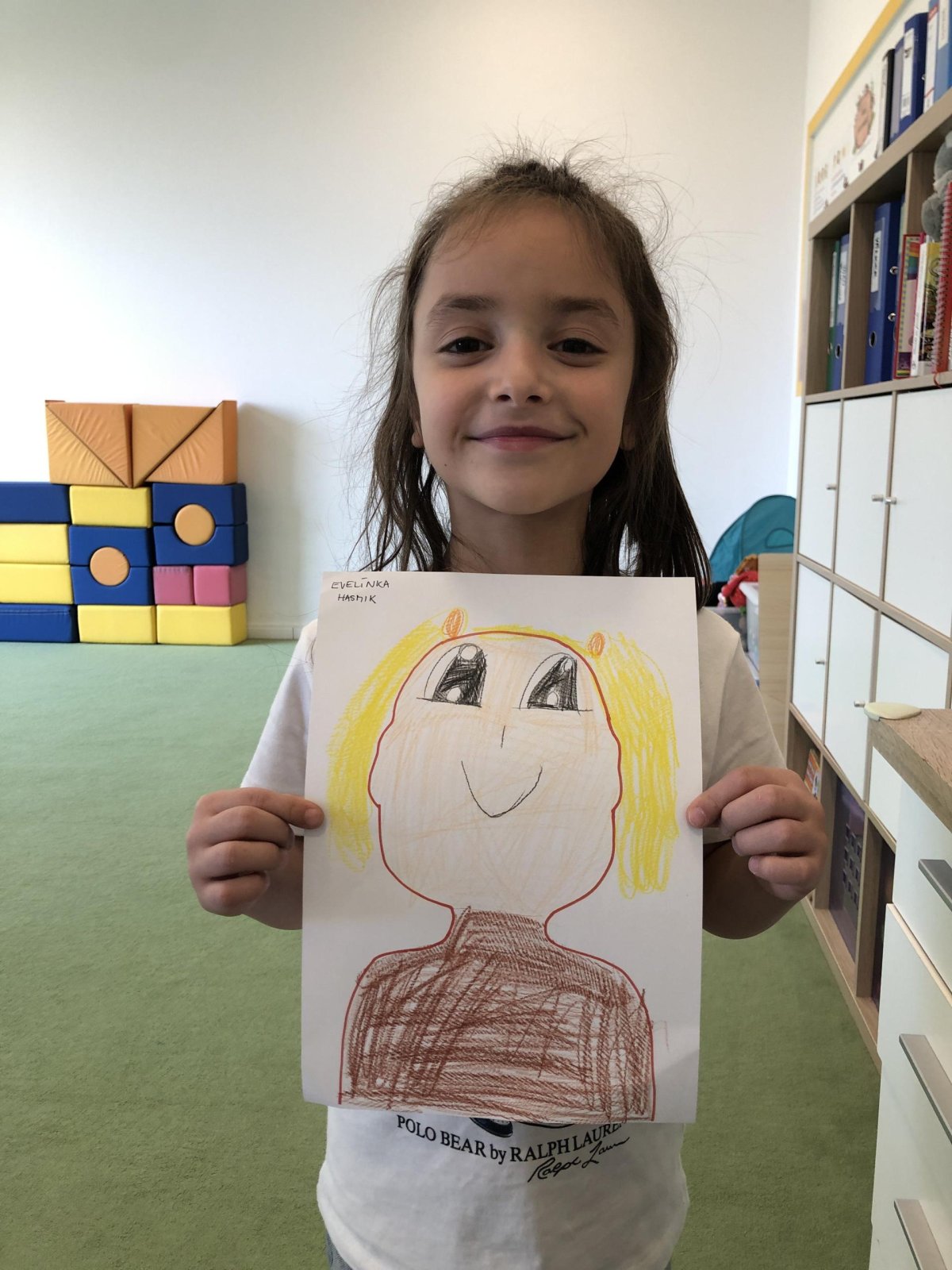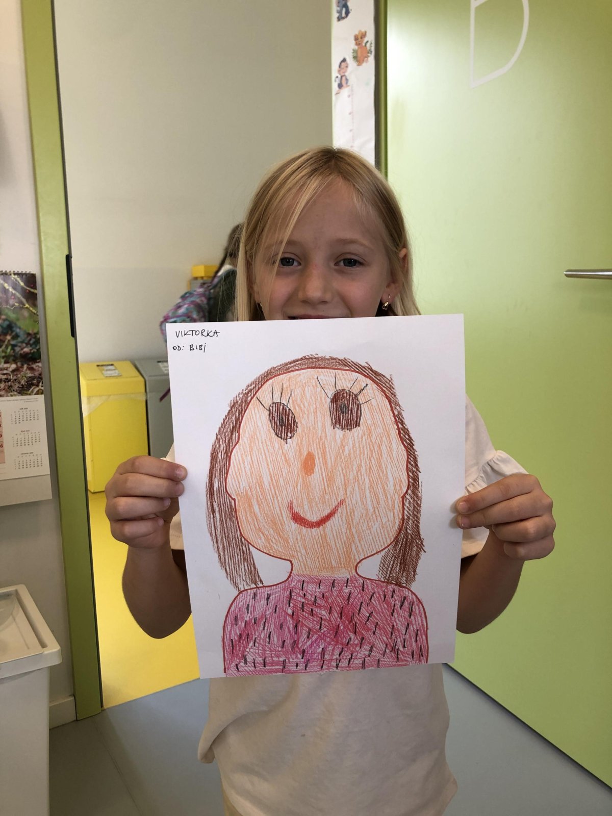 Dnes jsme měli moc hezký den – malovali jsme svého nejlepšího kamaráda. Byla to zábava a všichni jsme se snažili zachytit jeho podobu i povahu co nejlépe. Každý obrázek byl jiný, ale všechny ukazovaly, že se máme rádi. Venku bylo krásně, tak jsme šli ven a tam jsme hráli fotbal, florbal a jiné hry.