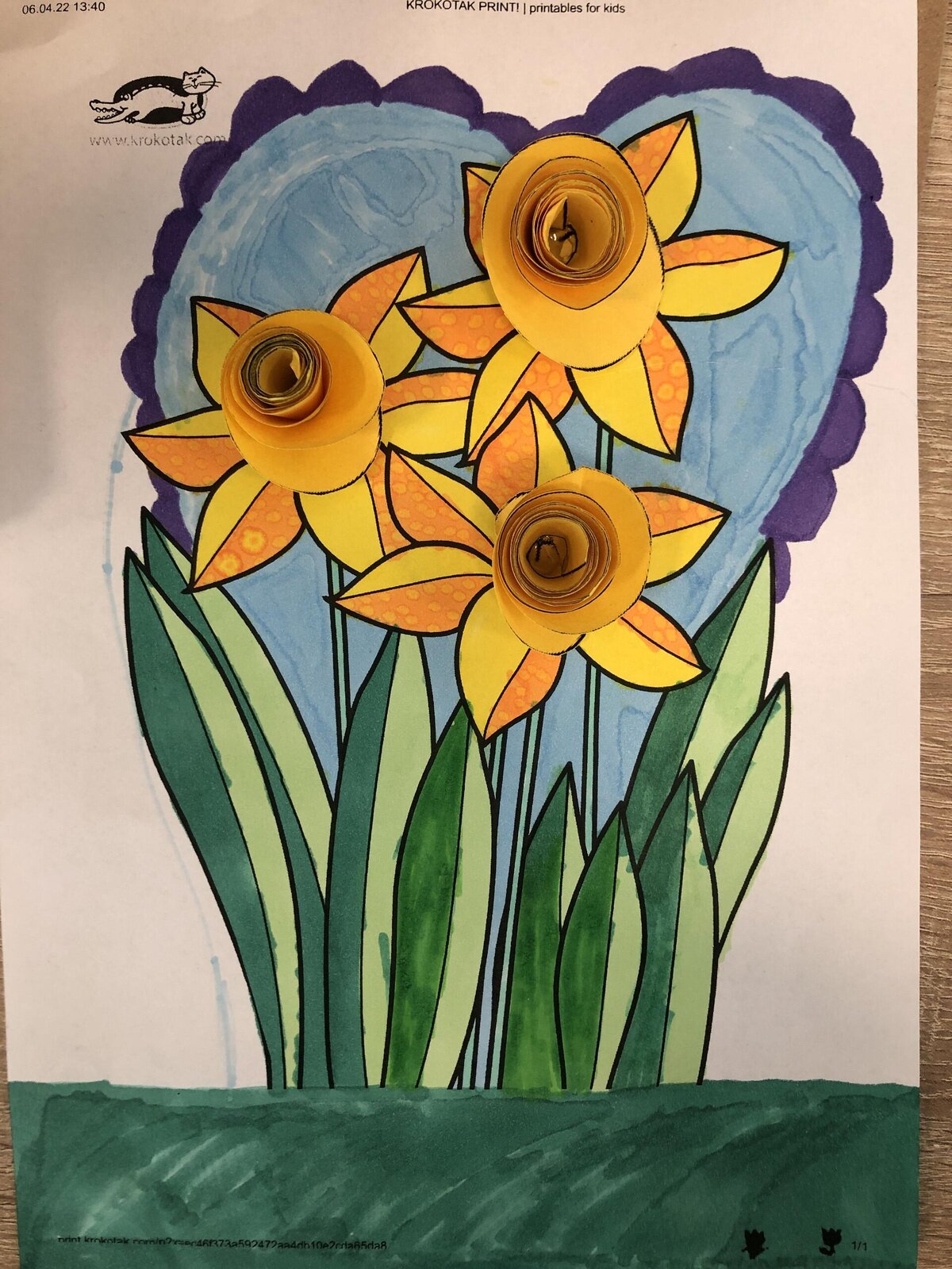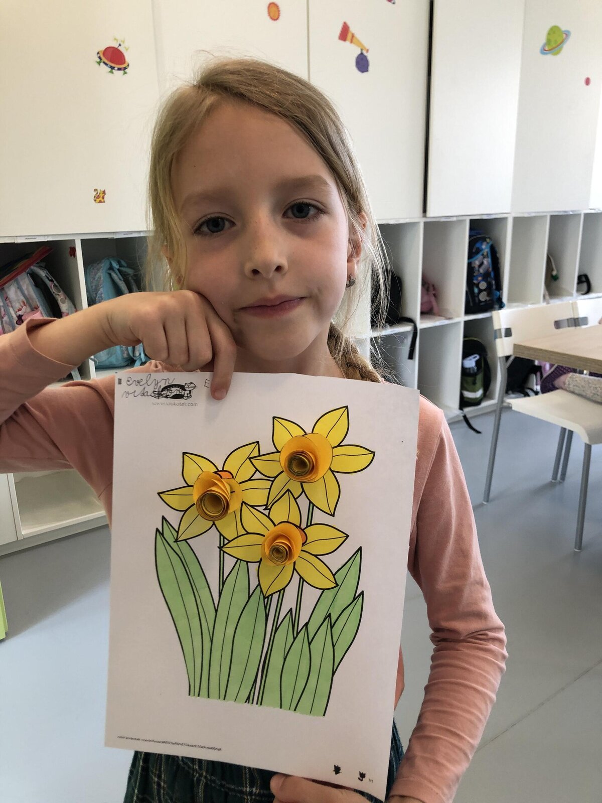 Dnes jsme si s dětmi vyrobili krásný narcis, který symbolizuje příchod jara. Děti pracovaly s nadšením, protože rády malují lihovými fixy. Každý narcis byl jedinečný a vznikaly opravdu nápadité výrobky. Kdo si chtěl vytvořit 3D narcis, potřeboval k tomu ještě dodělat kruhový zvoneček. A jak vypadá 3D narcis? Podívejte se sami.