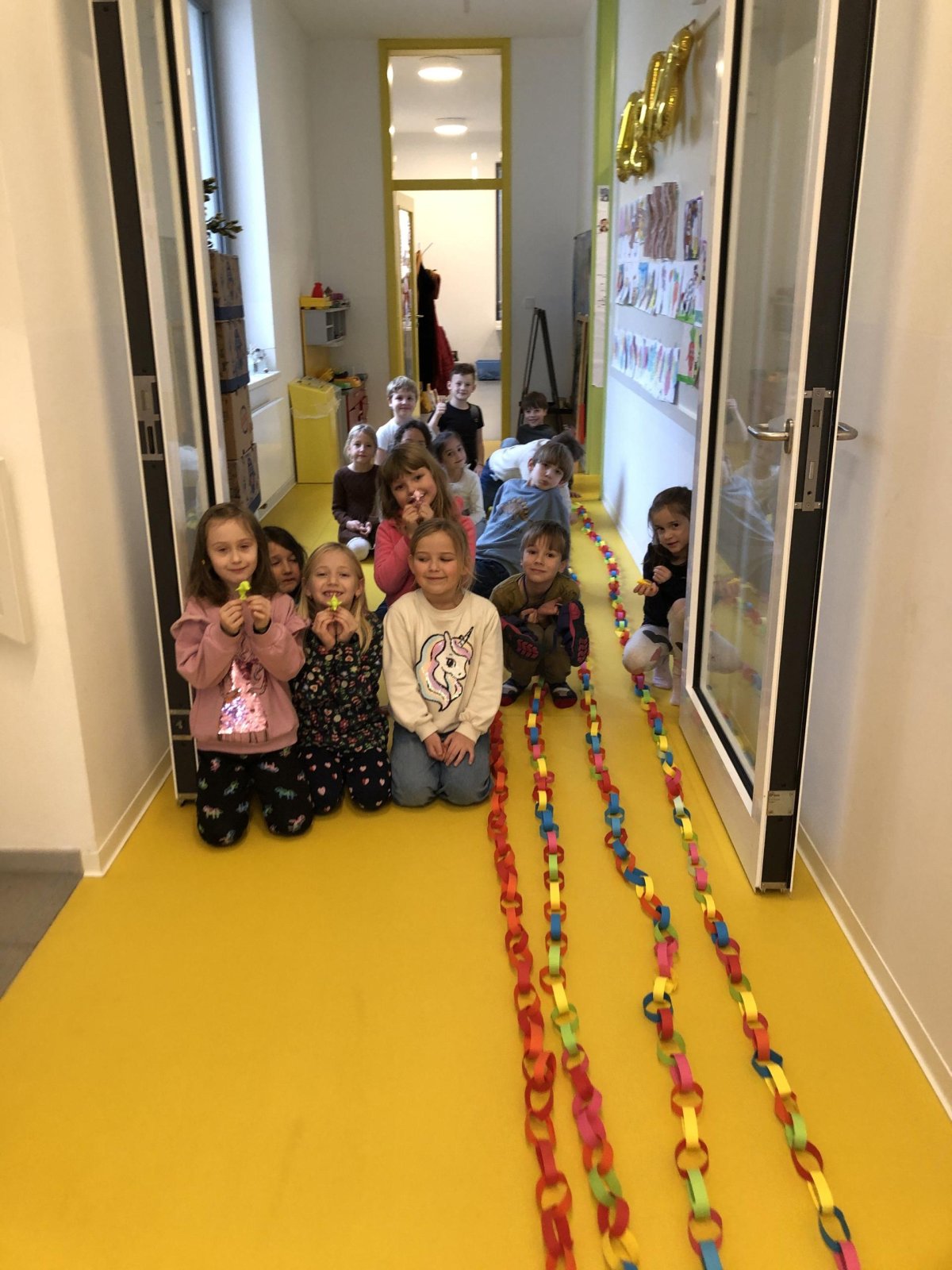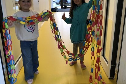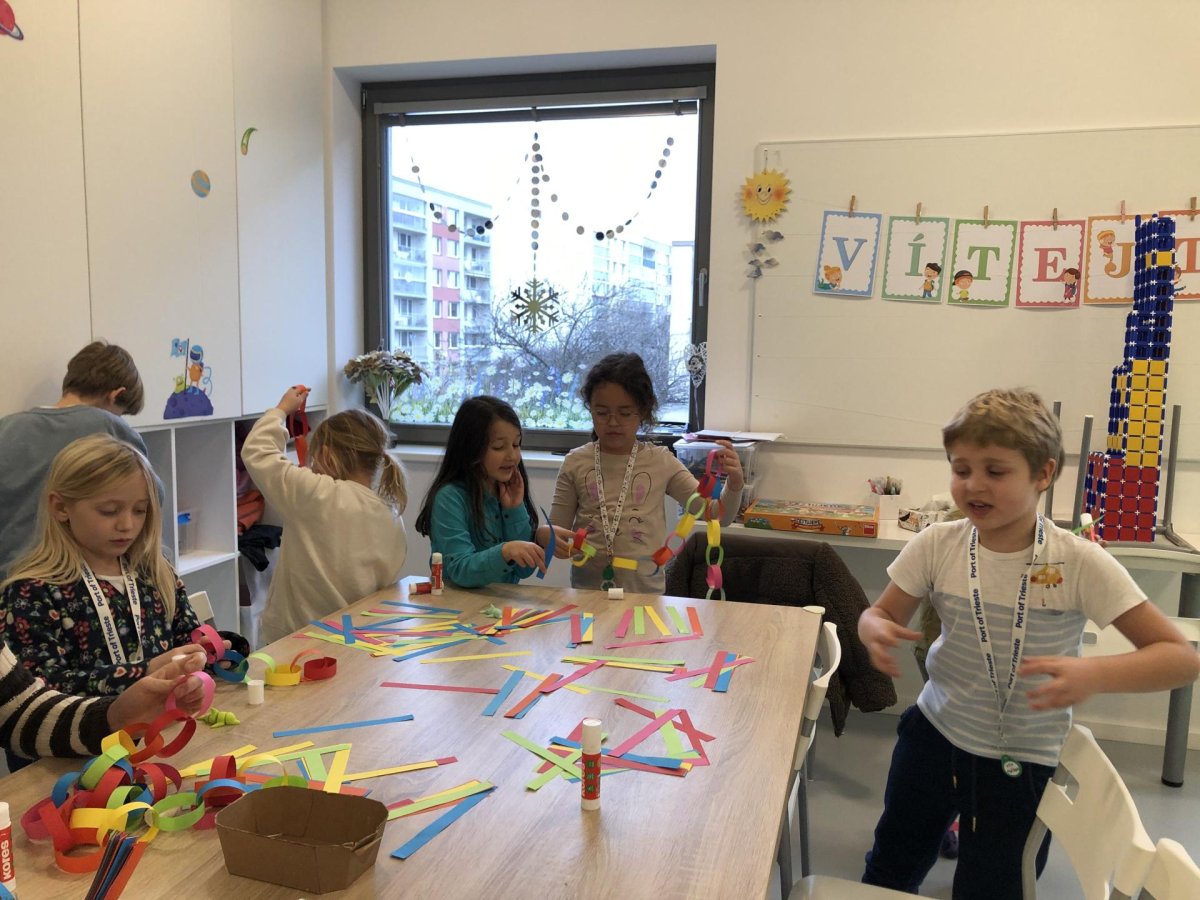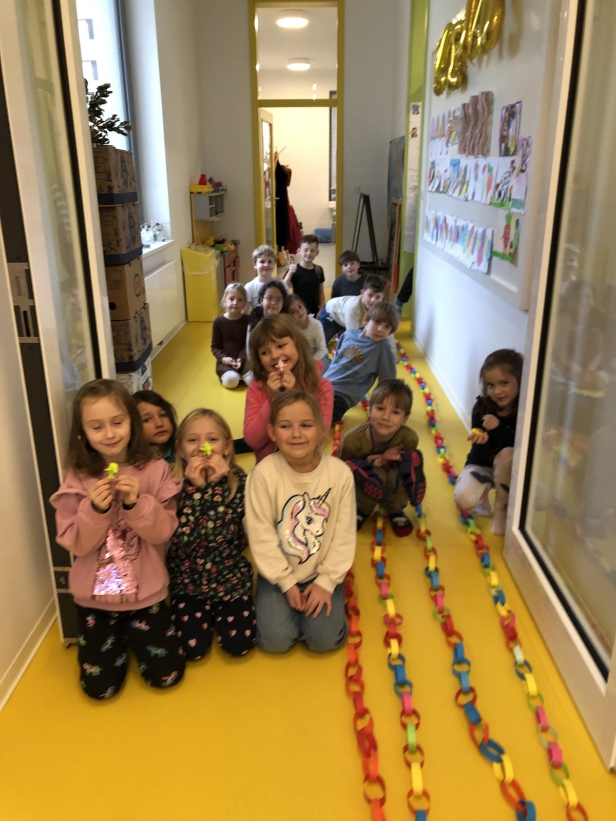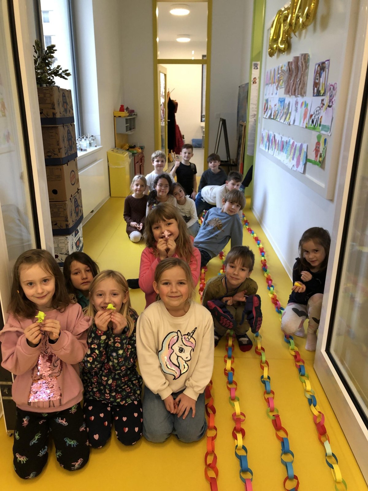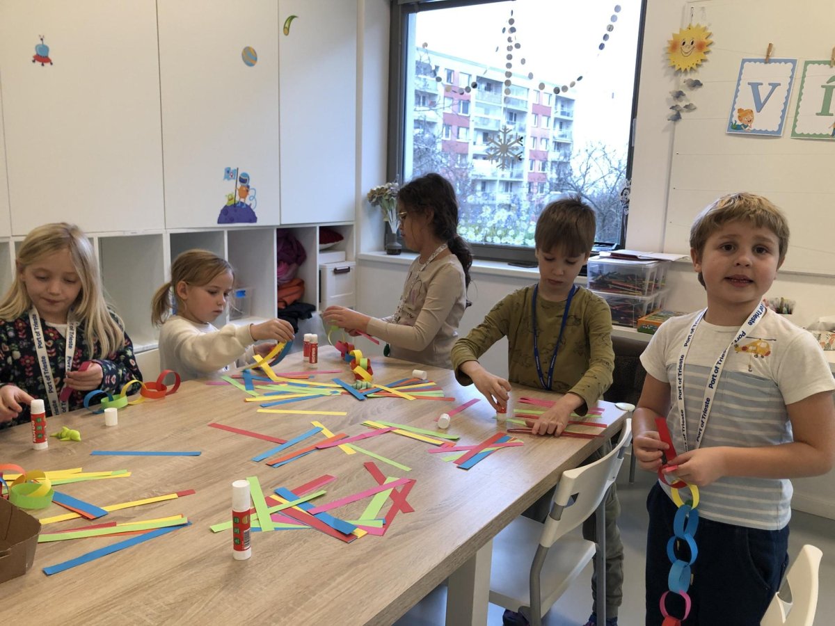 Dnes jsme se s dětmi pustili do výroby dlouhého vánočního papírového řetězu. Na stole už na ně čekaly připravené barevné proužky papíru i lepidlo – a pak to šlo samo. Děti pracovaly s nadšením, řetěz rostl před očima a radost byla vidět na každém kroku.