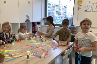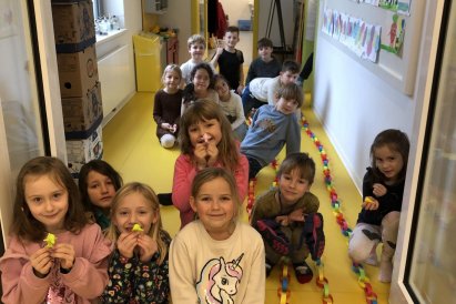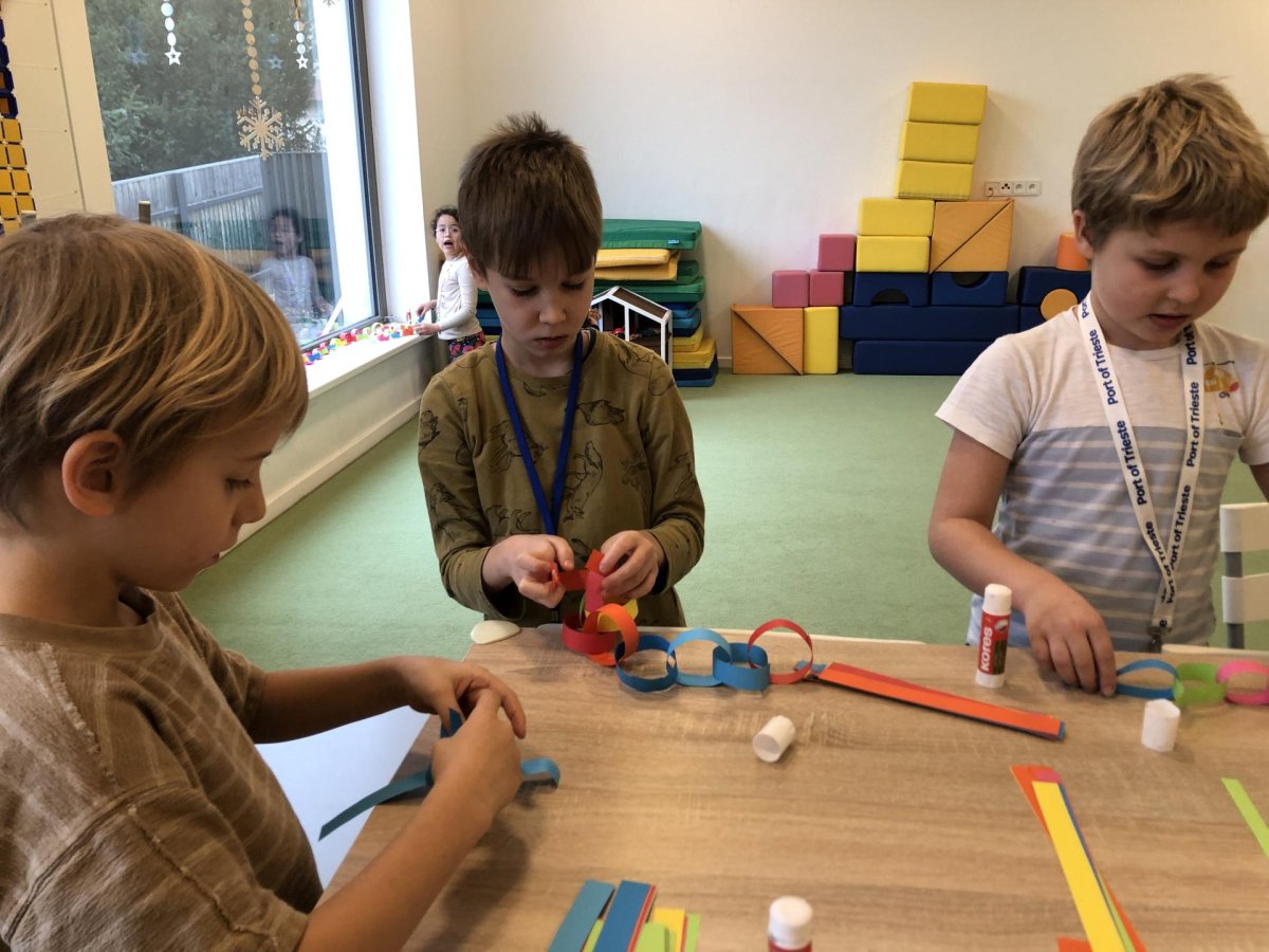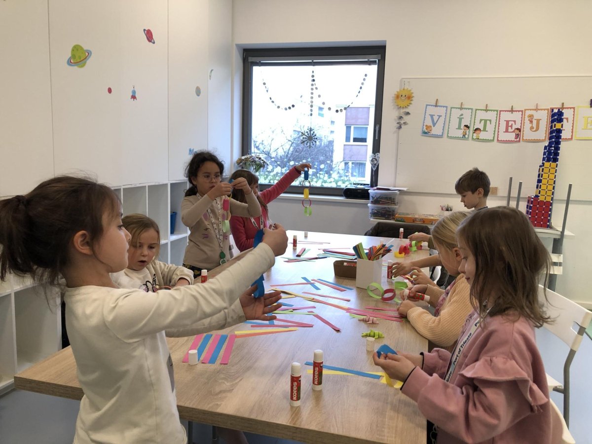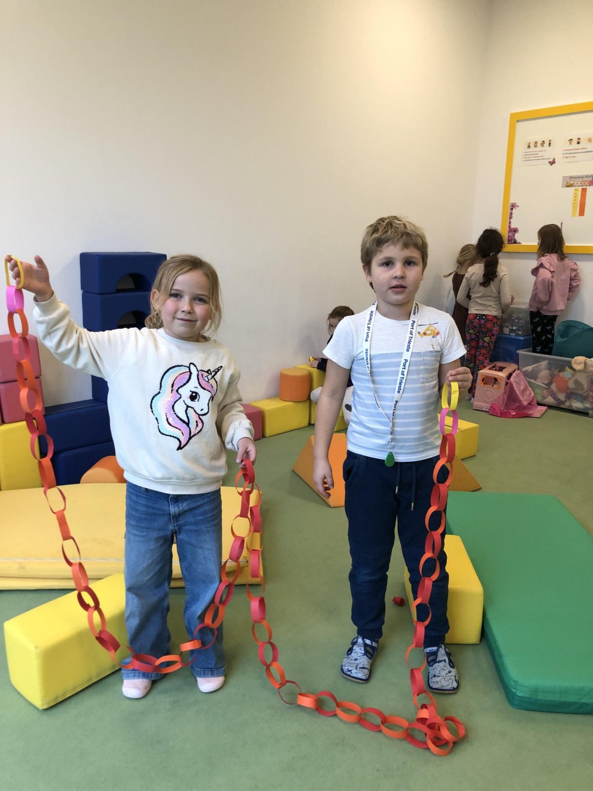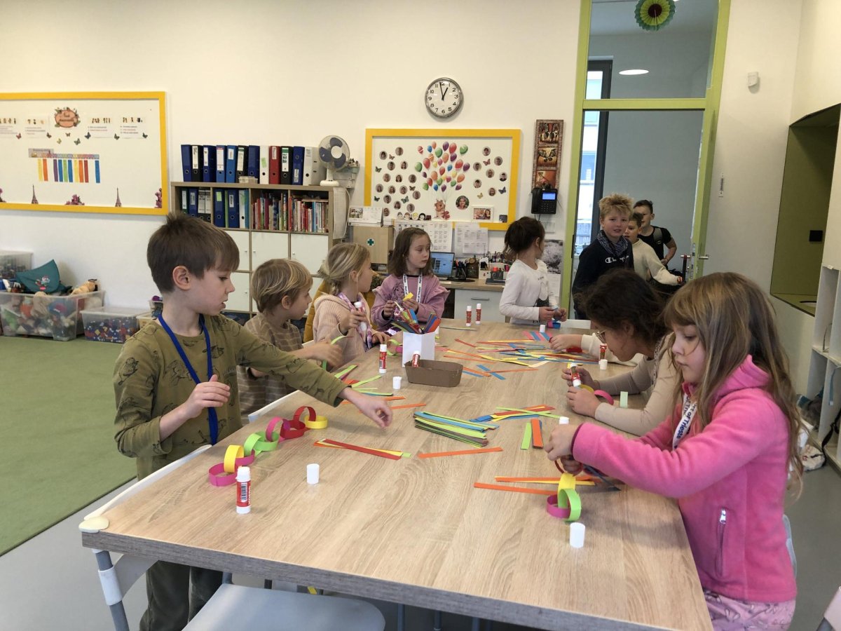 Dnes jsme se s dětmi pustili do výroby dlouhého vánočního papírového řetězu. Na stole už na ně čekaly připravené barevné proužky papíru i lepidlo – a pak to šlo samo. Děti pracovaly s nadšením, řetěz rostl před očima a radost byla vidět na každém kroku.