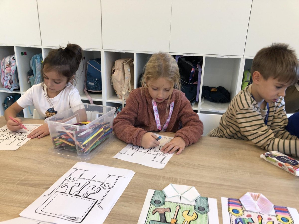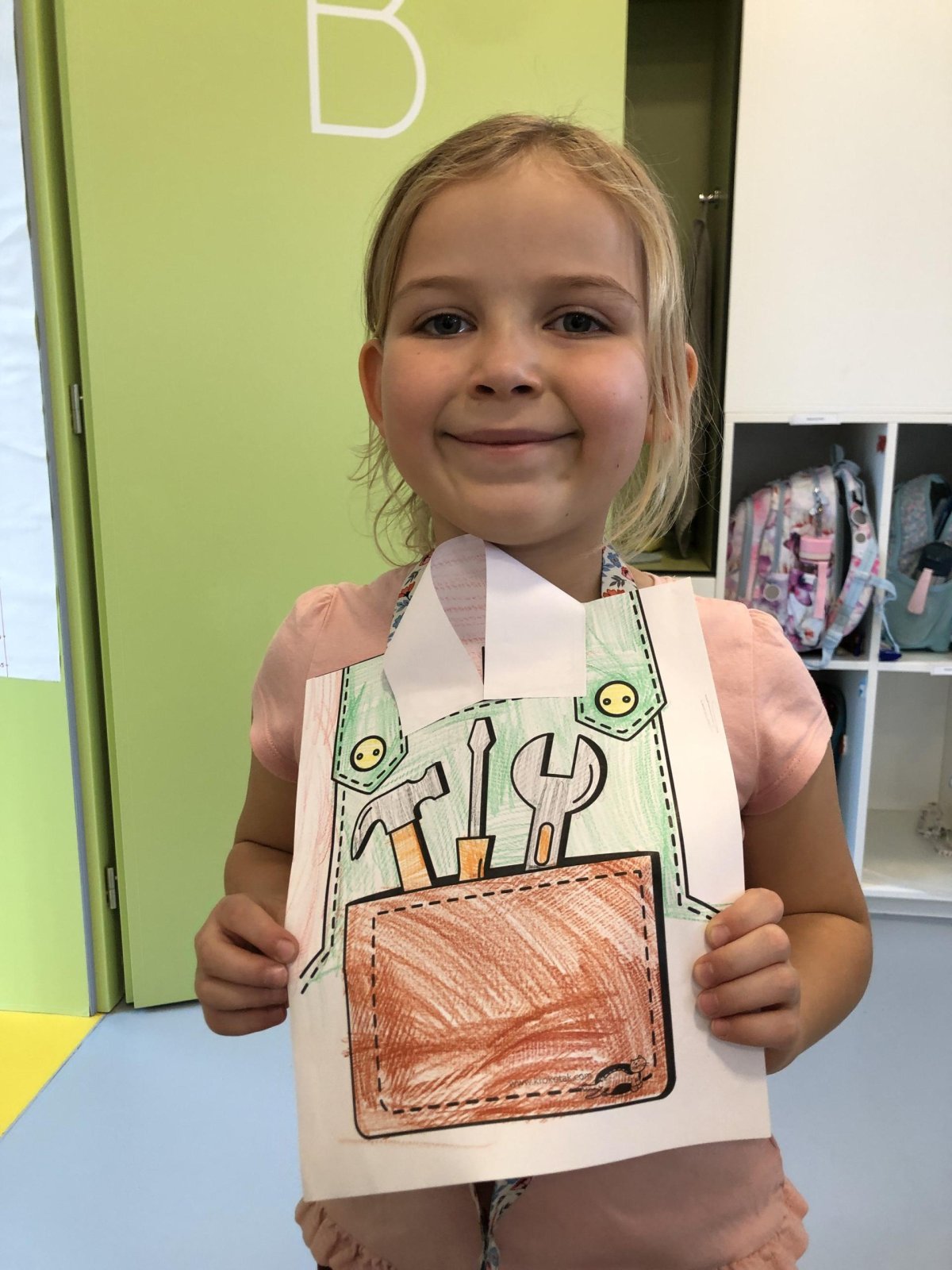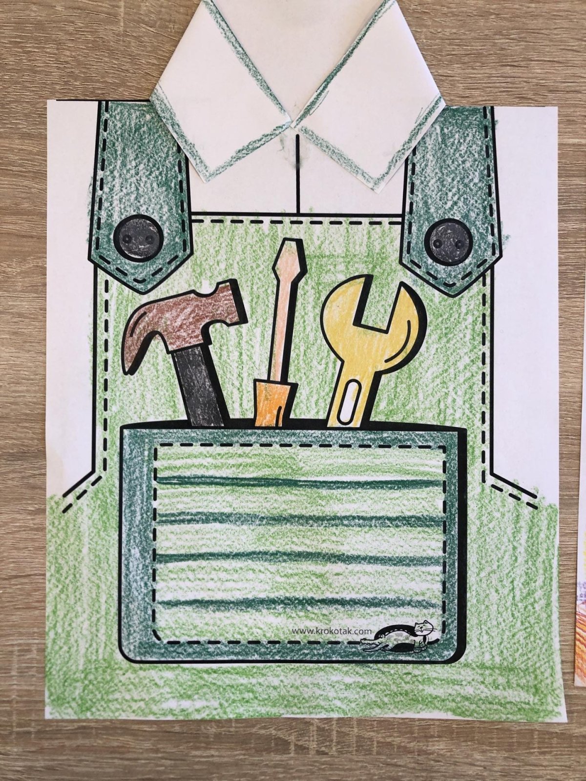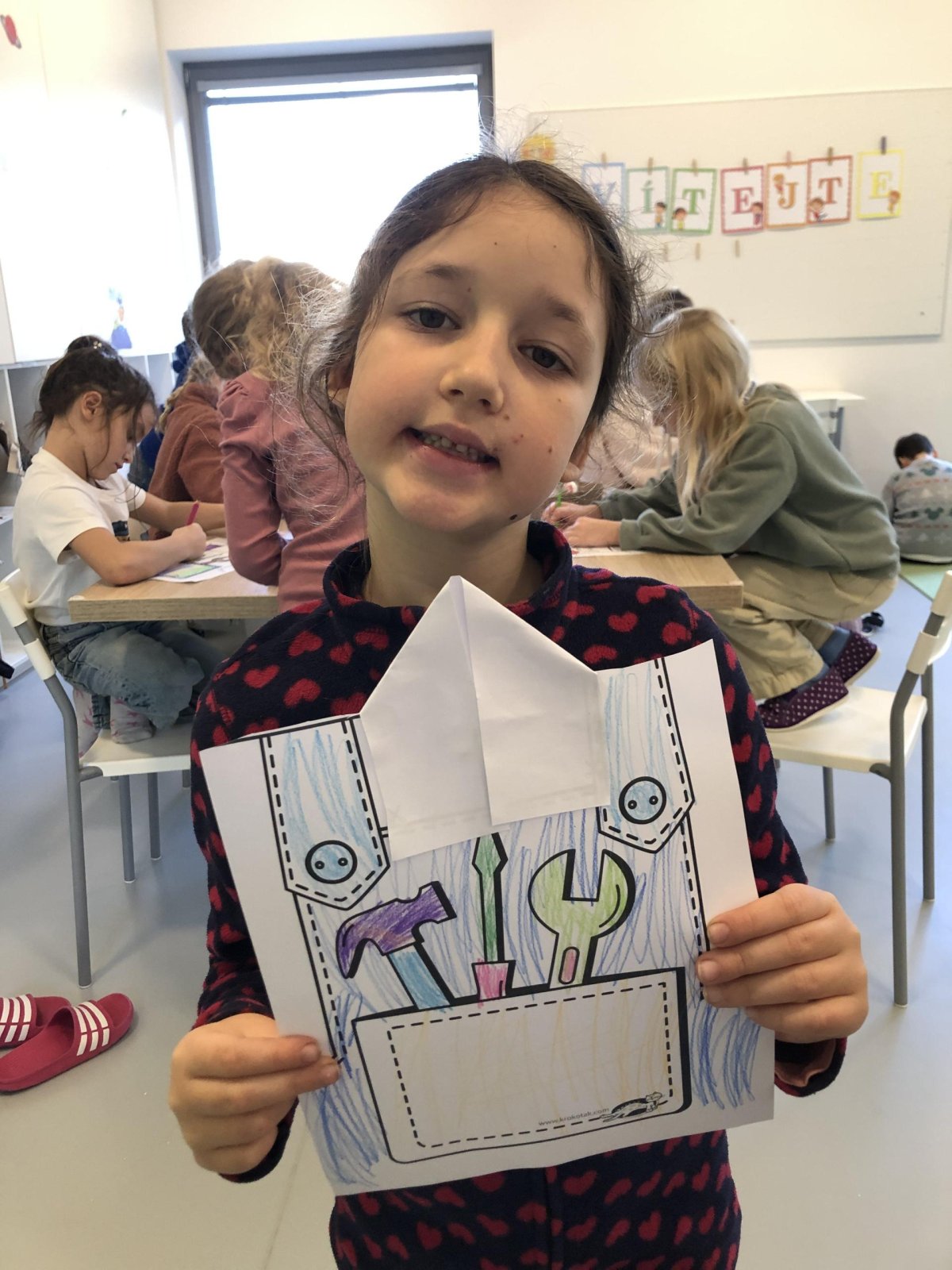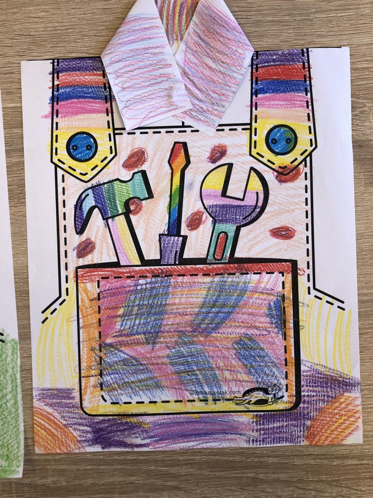 Malovali jsme montérky plné pracovního nářadí, které opraváři používají. Dětem se pracovní listy opravdu moc povedly. Povídali jsme si o tom, jaké opraváře známe, co všechno opravují a kde se s nimi můžeme setkat. Nechyběla ani písnička – zpívali jsme si a cvičili s Mirem Jarošem, hráli se ve družině s loutkovým divadlem a na závěr jsme si užili společný pobyt venku.