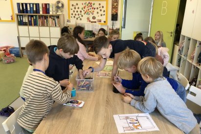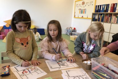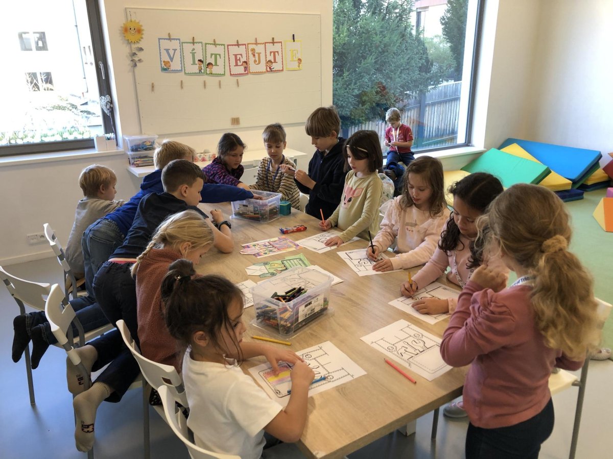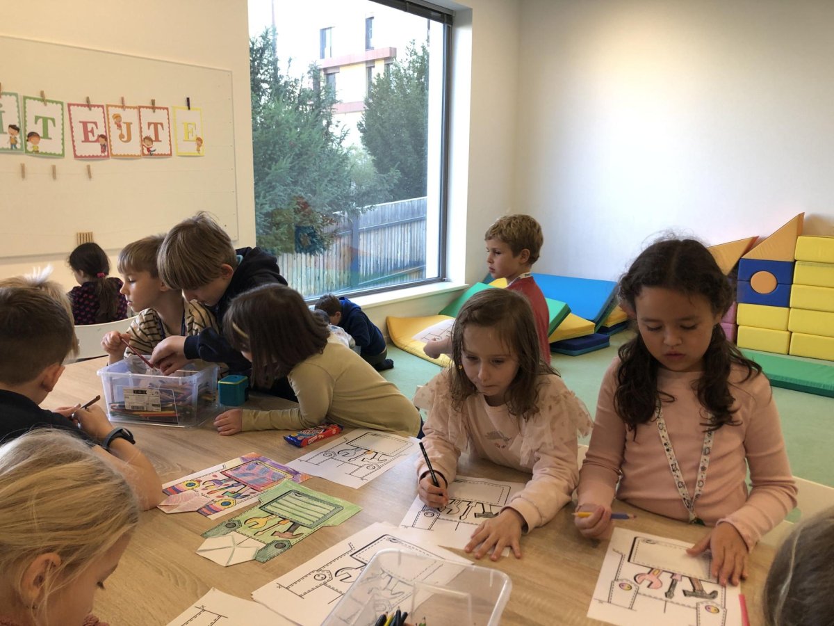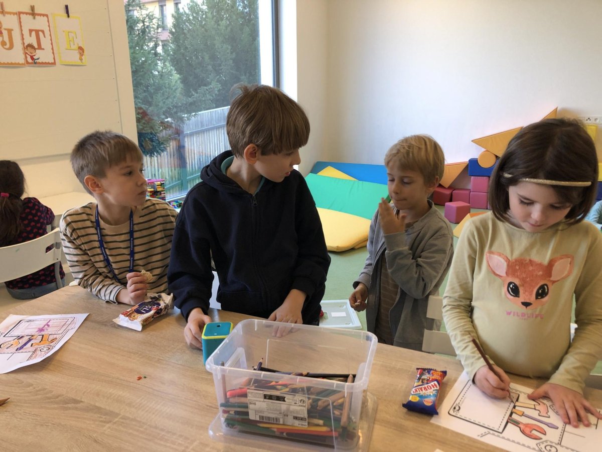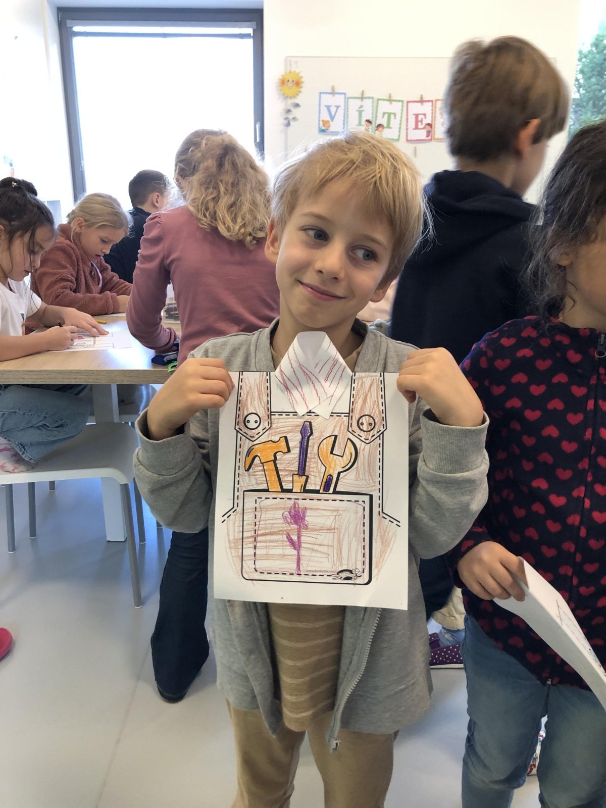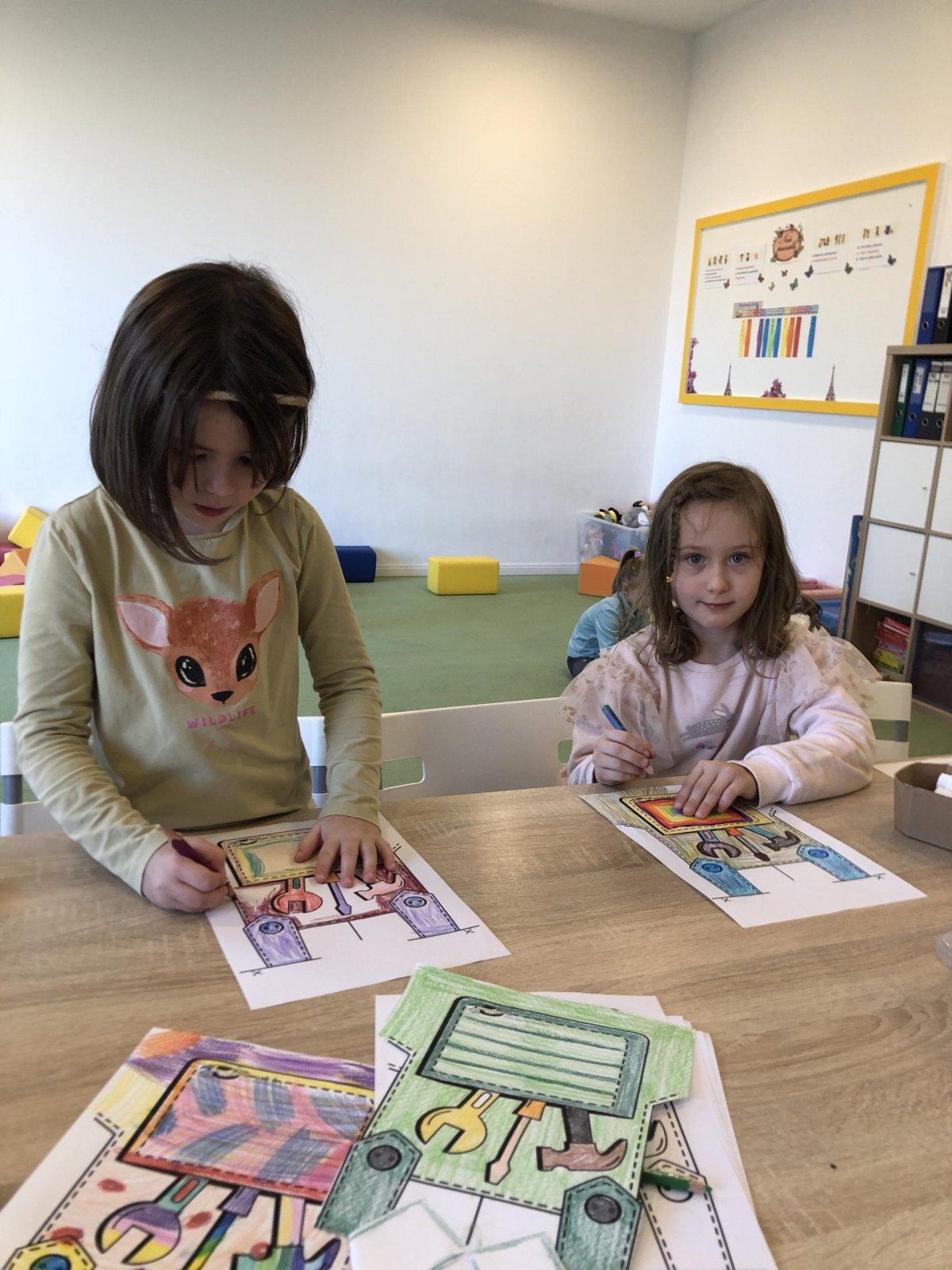 Malovali jsme montérky plné pracovního nářadí, které opraváři používají. Dětem se pracovní listy opravdu moc povedly. Povídali jsme si o tom, jaké opraváře známe, co všechno opravují a kde se s nimi můžeme setkat. Nechyběla ani písnička – zpívali jsme si a cvičili s Mirem Jarošem, hráli se ve družině s loutkovým divadlem a na závěr jsme si užili společný pobyt venku.