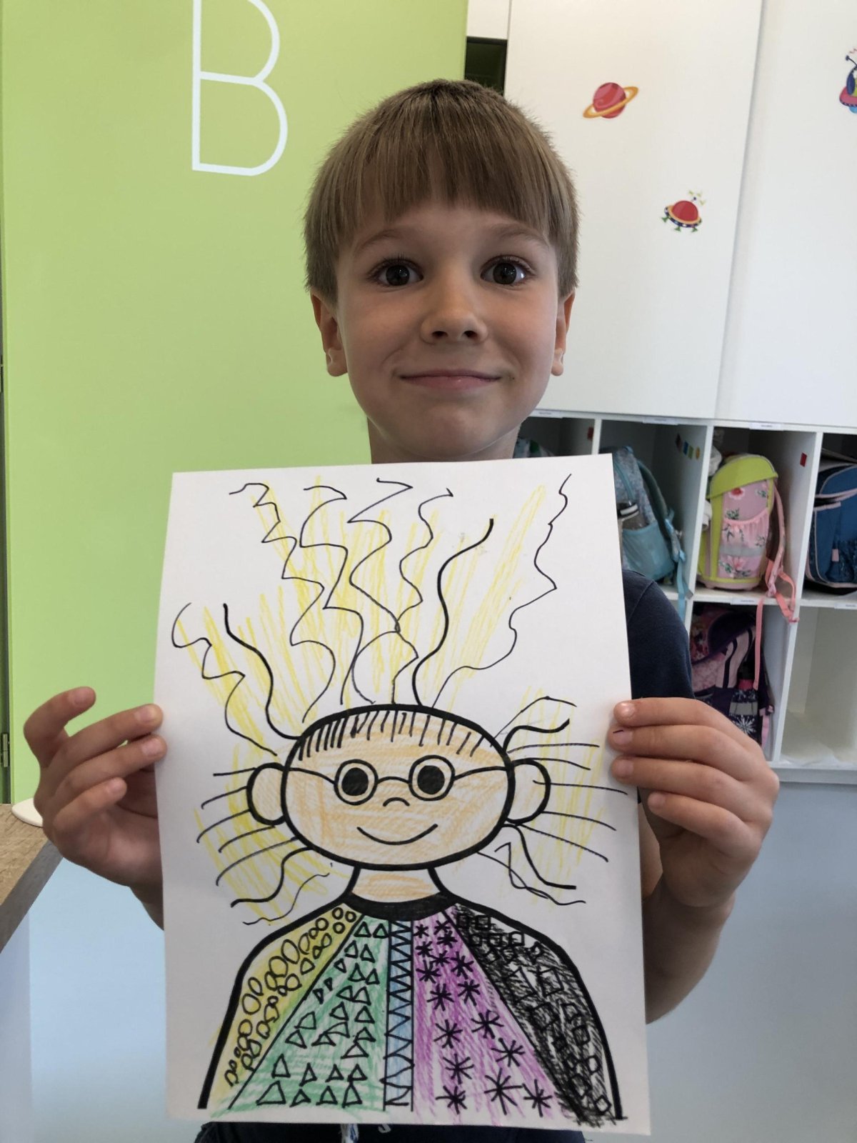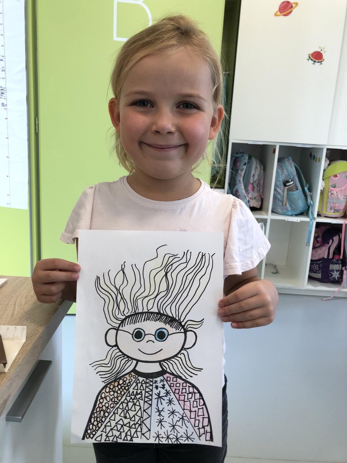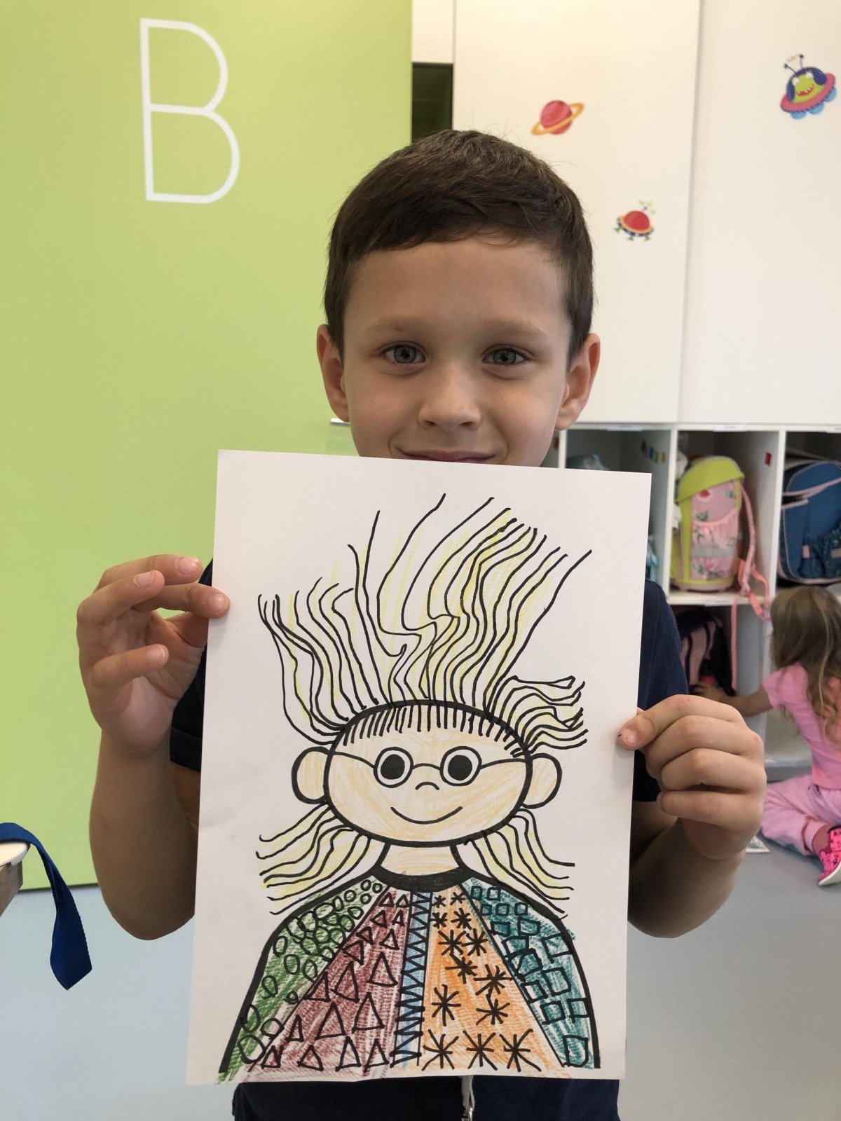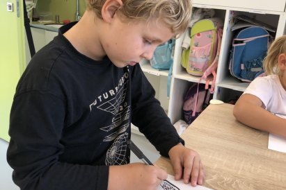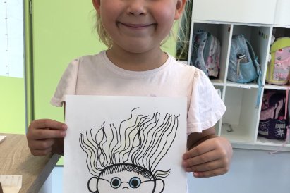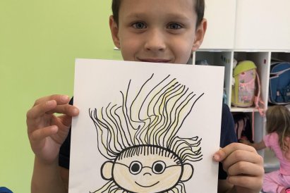Grafomotorika je soubor pohybů ruky, které souvisejí s kreslením a psaním. Je to vlastně schopnost ovládat jemnou motoriku ruky tak, aby člověk dokázal udělat čáry, tvary nebo písmena. Panáček je oblíbený motiv právě proto, že se skládá z jednoduchých tvarů (kolečka, čárky, oblouky), které hezky rozvíjejí grafomotorické dovednosti. Takového panáčka jsme dnes tvořili i my a moc se dětem povedl. Co říkáte?