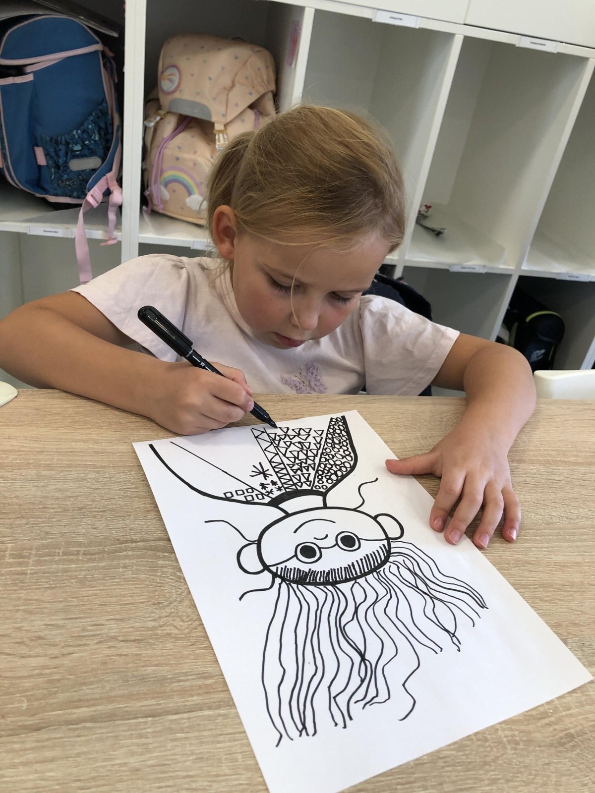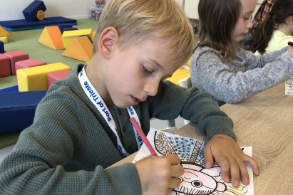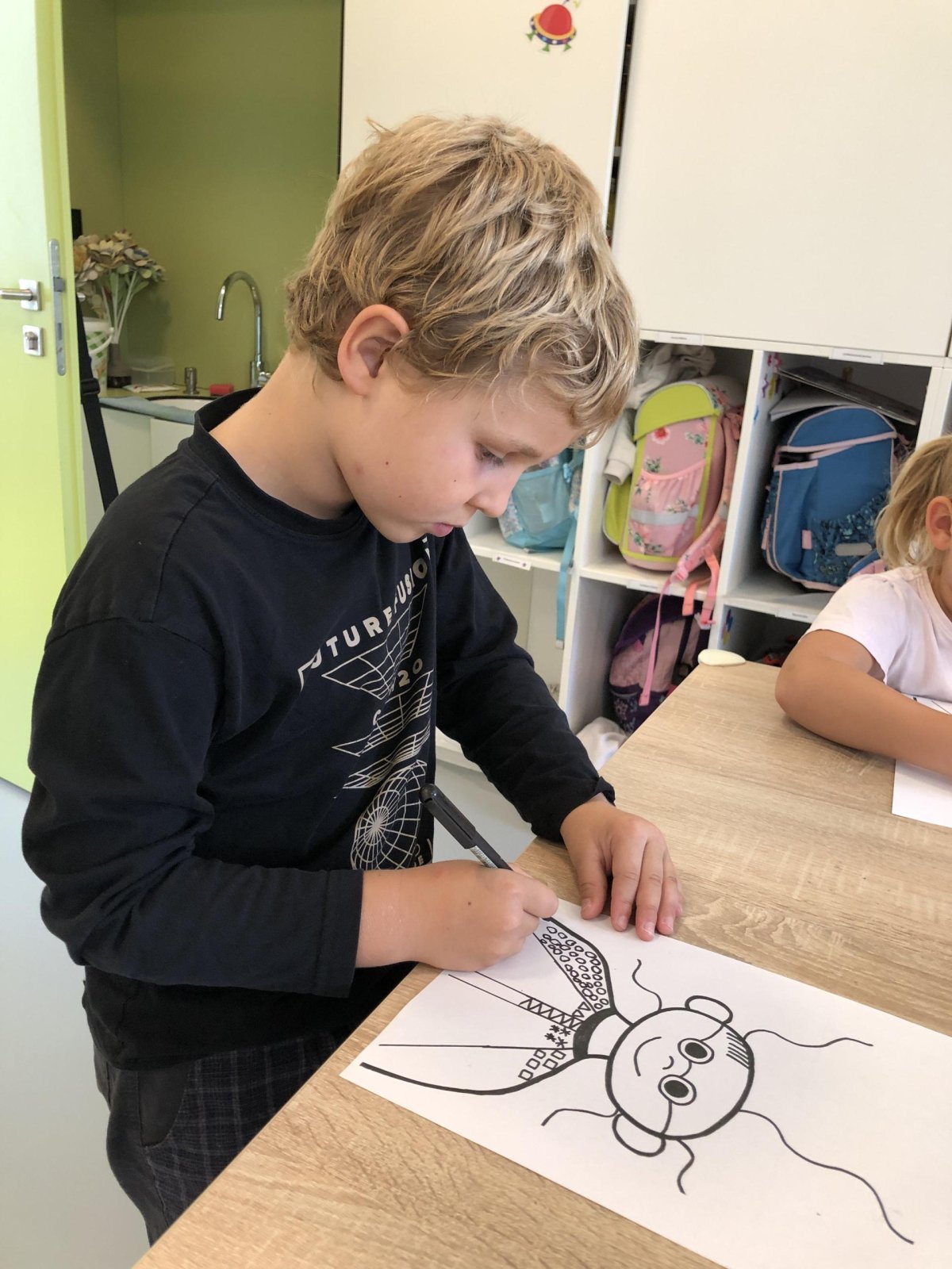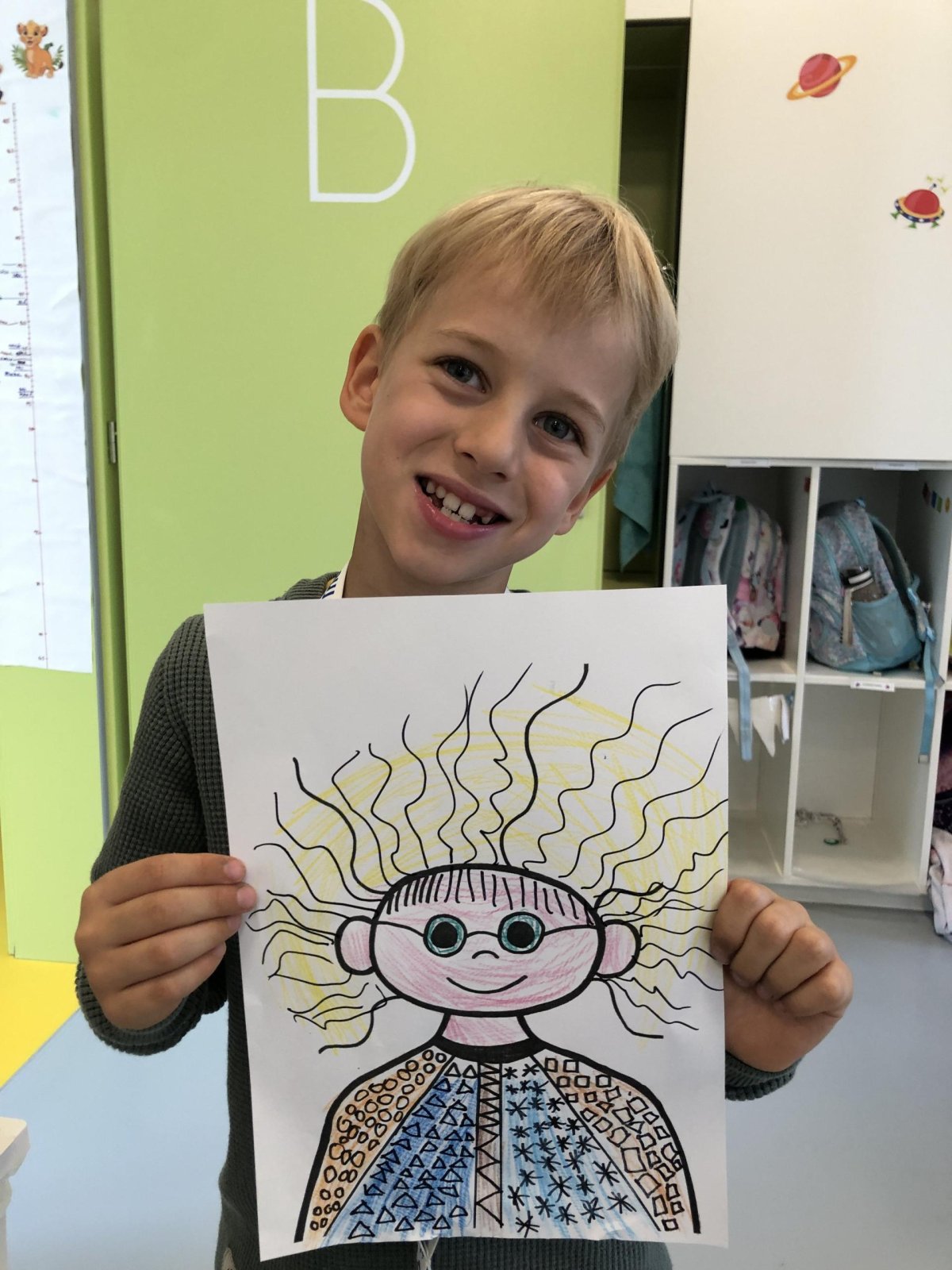 Grafomotorika je soubor pohybů ruky, které souvisejí s kreslením a psaním. Je to vlastně schopnost ovládat jemnou motoriku ruky tak, aby člověk dokázal udělat čáry, tvary nebo písmena. Panáček je oblíbený motiv právě proto, že se skládá z jednoduchých tvarů (kolečka, čárky, oblouky), které hezky rozvíjejí grafomotorické dovednosti. Takového panáčka jsme dnes tvořili i my a moc se dětem povedl. Co říkáte?