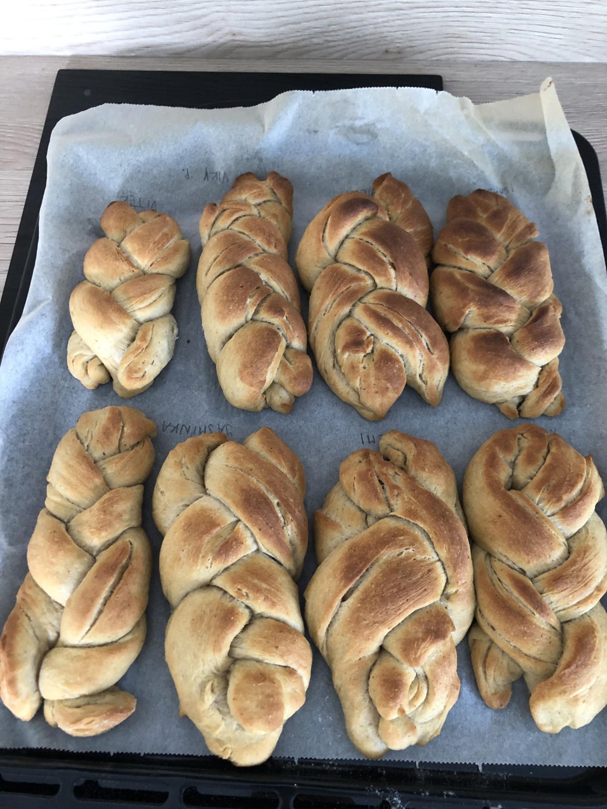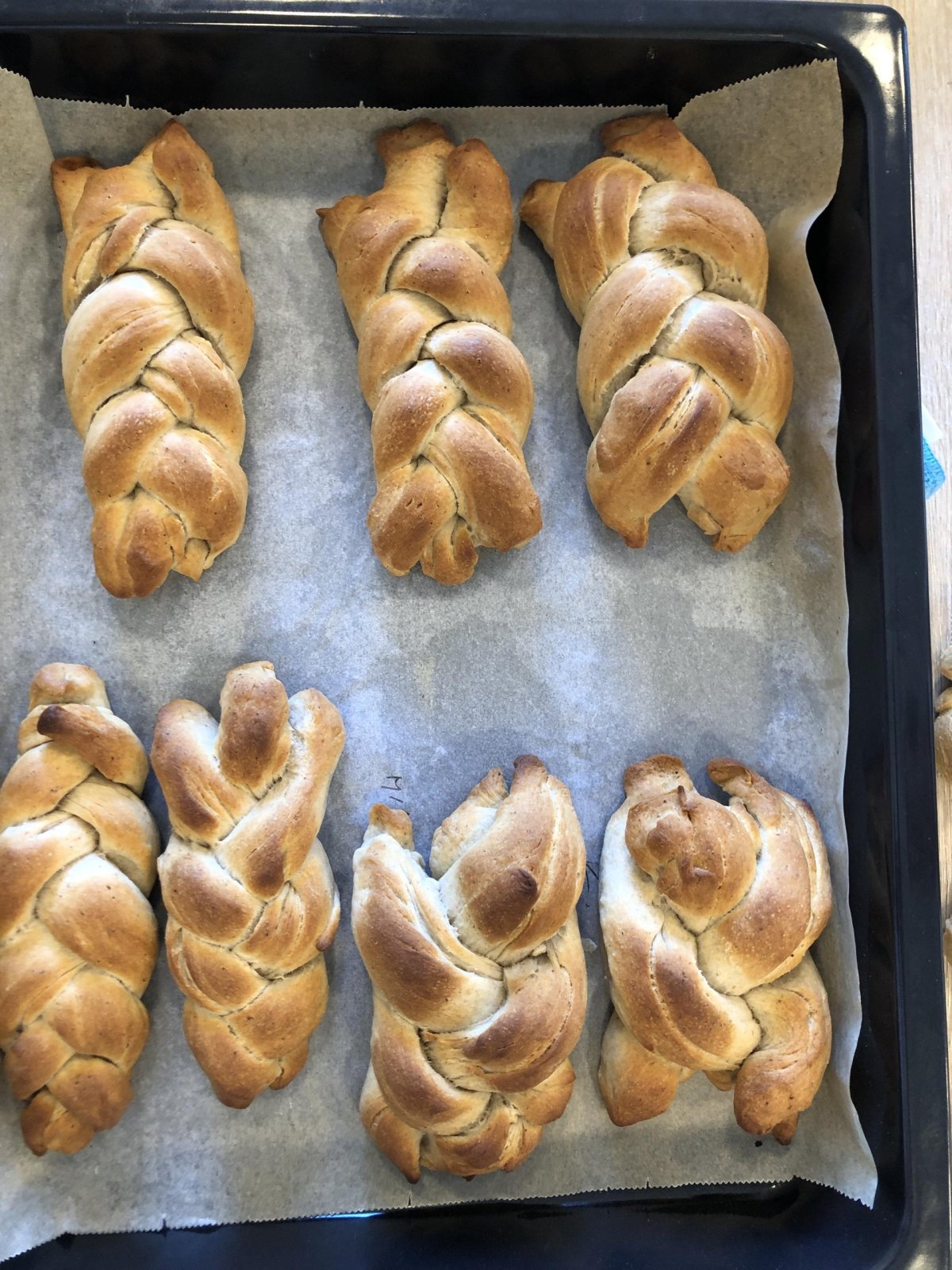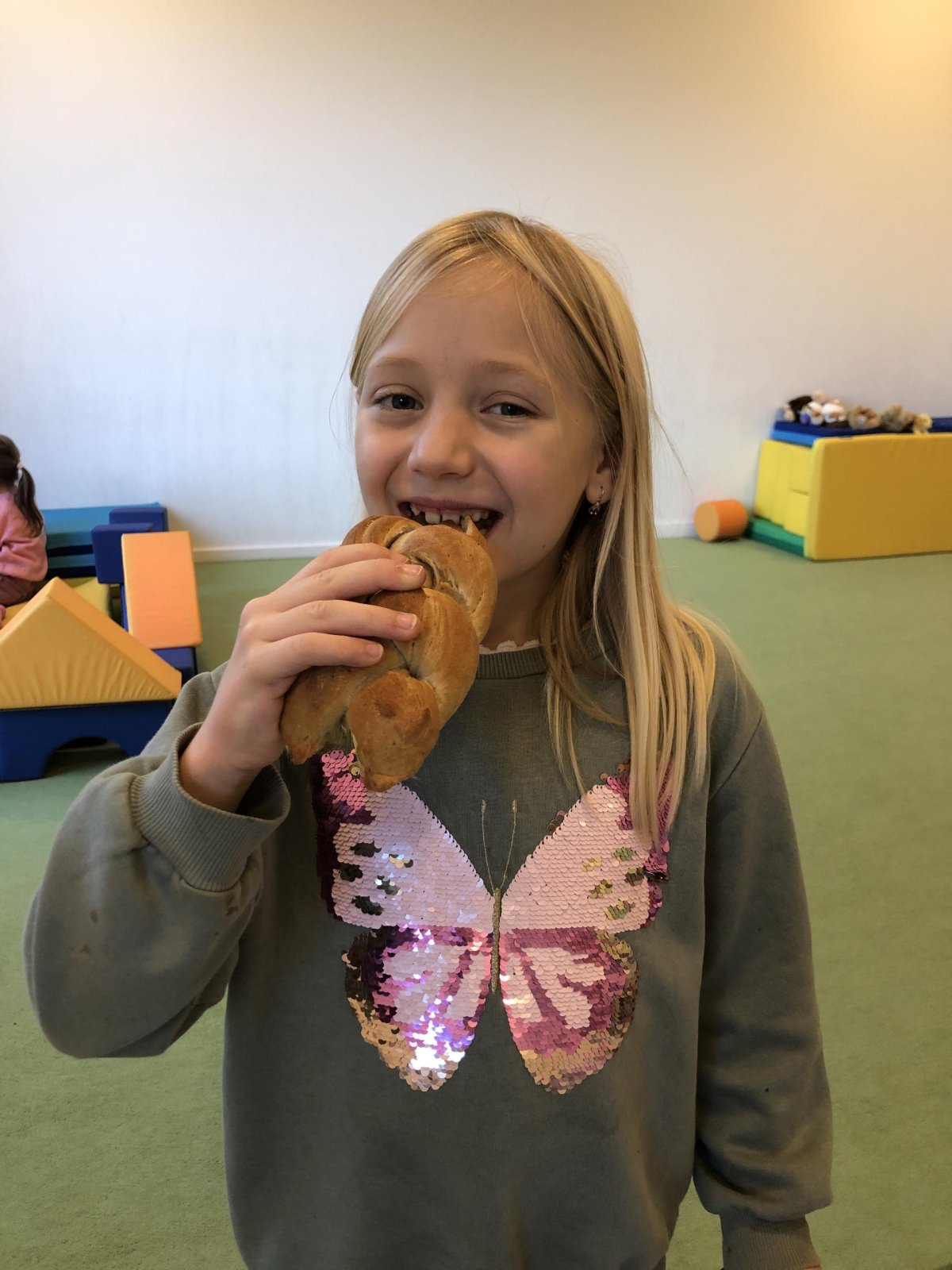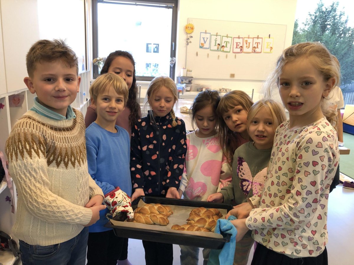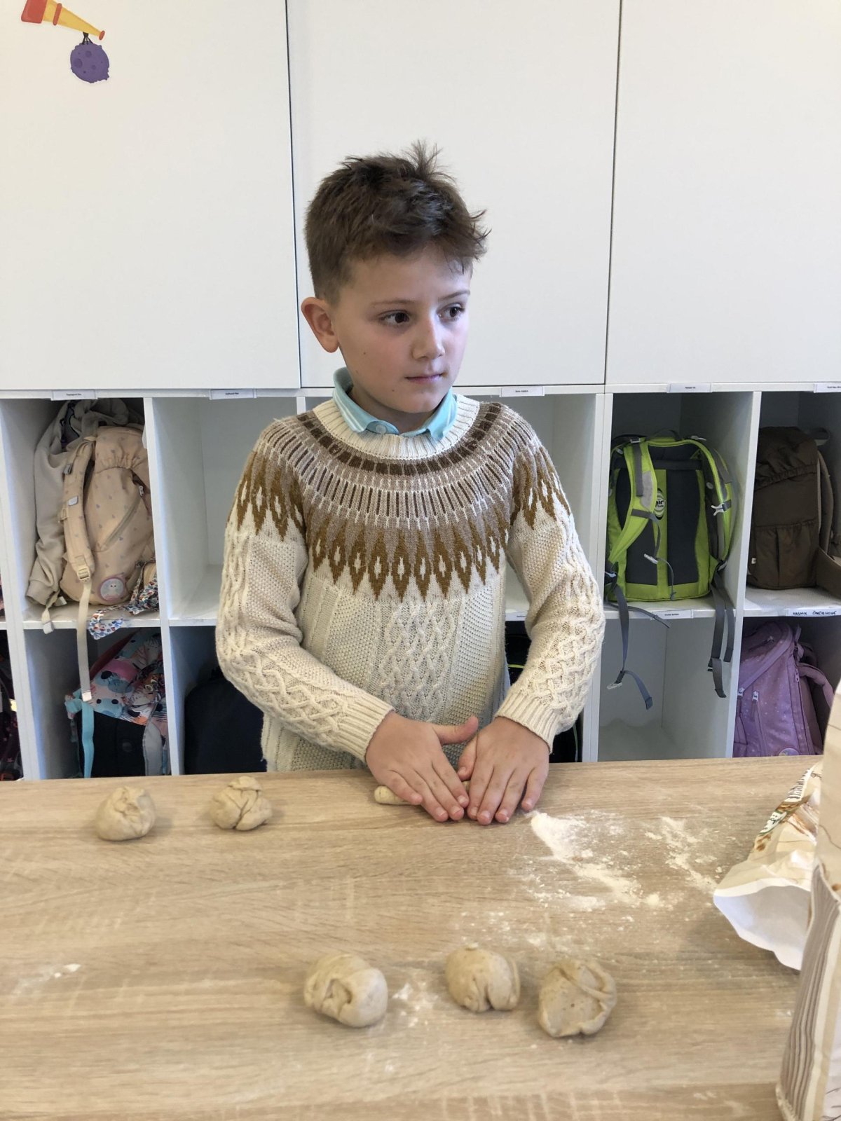 Když jsme je konečně vyndali, byli jsme na sebe opravdu pyšní. Naše malé housky byly krásné, voňavé a ještě lepší na chuť. A hlavně — upekli jsme je úplně sami!