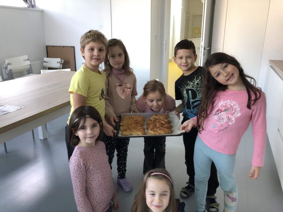 A pak začalo to nejtěžší: čekání. Z trouby se pomalu začala linout omamná vůně čerstvého pečiva a děti se nemohly dočkat, kdy už budou housky hotové.
