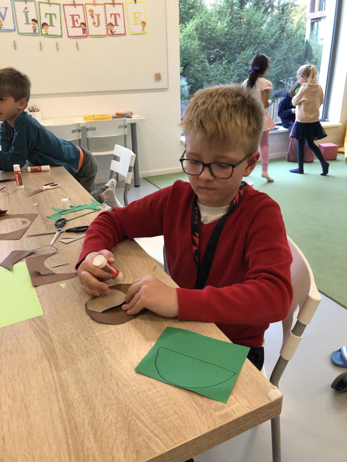 I dnešní práce se nesla v duchu podzimního pozorování a objevování. Vyrobili jsme si ptáčka a kaštánka.