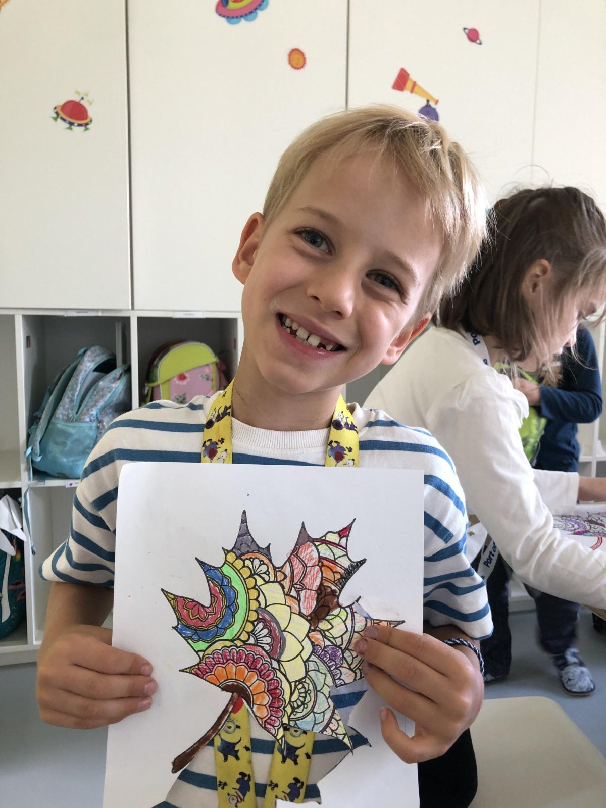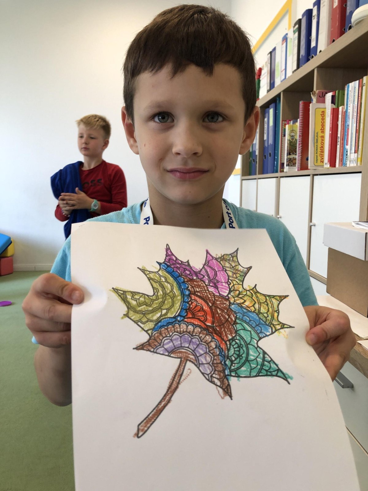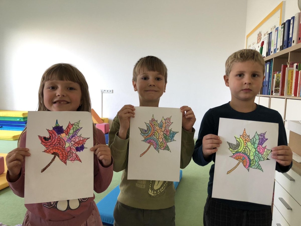 Dnes jsme si přečetli krásný příběh o věrném služebníku a pak jsme se společně pustili do tvořivé podzimní aktivity – malovali jsme list ve stylu mandaly. Práce to nebyla vůbec jednoduchá, protože vyžadovala velkou dávku soustředění, trpělivosti a pečlivosti při vybarvování jednotlivých částí. Děti se ale této výzvy zhostily s nadšením a dokázaly, že si poradí i s takto náročným úkolem. Výsledné obrázky se opravdu povedly – jsou barevné, originální a každý nese osobní rukopis svého autora. Hotová dílka nyní ozdobí naši nástěnku, aby mohla potěšit všechny kolemjdoucí a připomenout krásu podzimních barev.