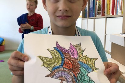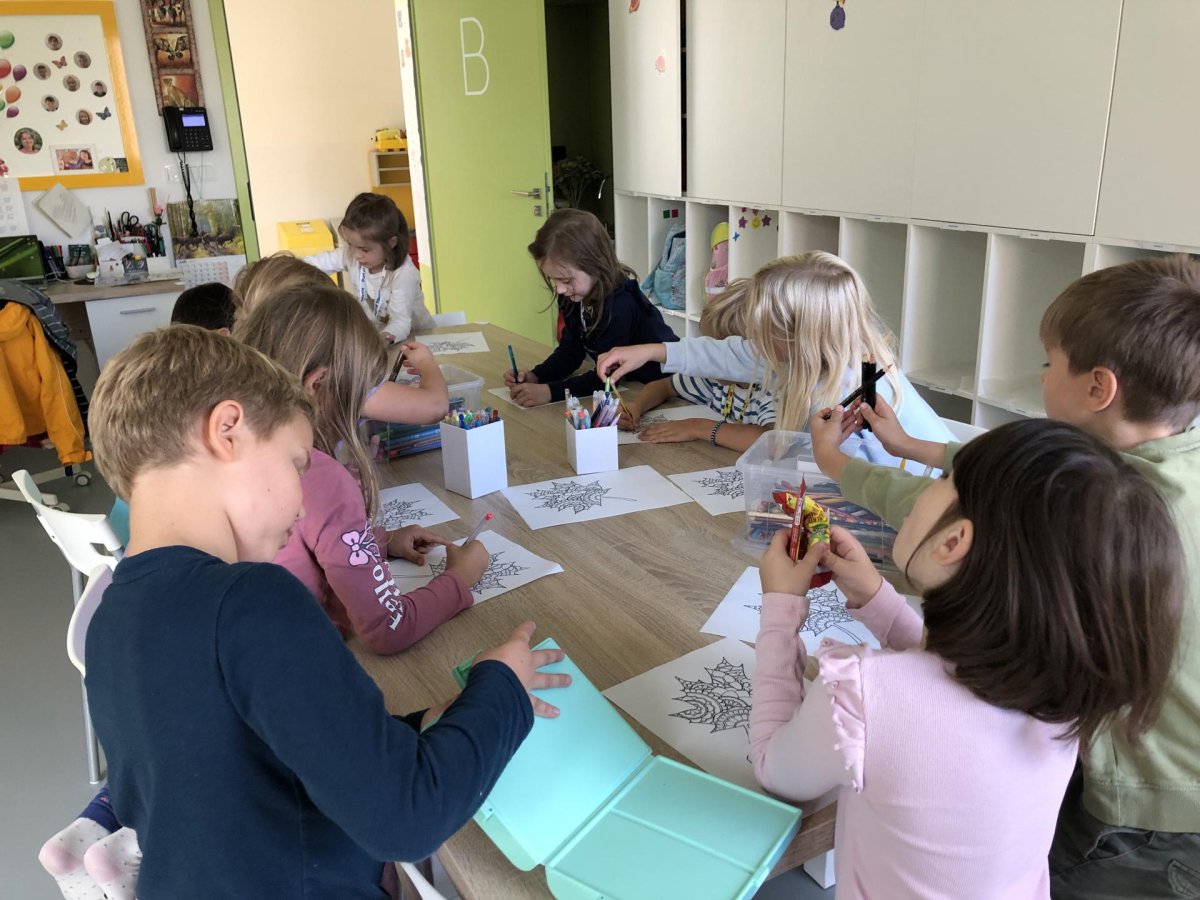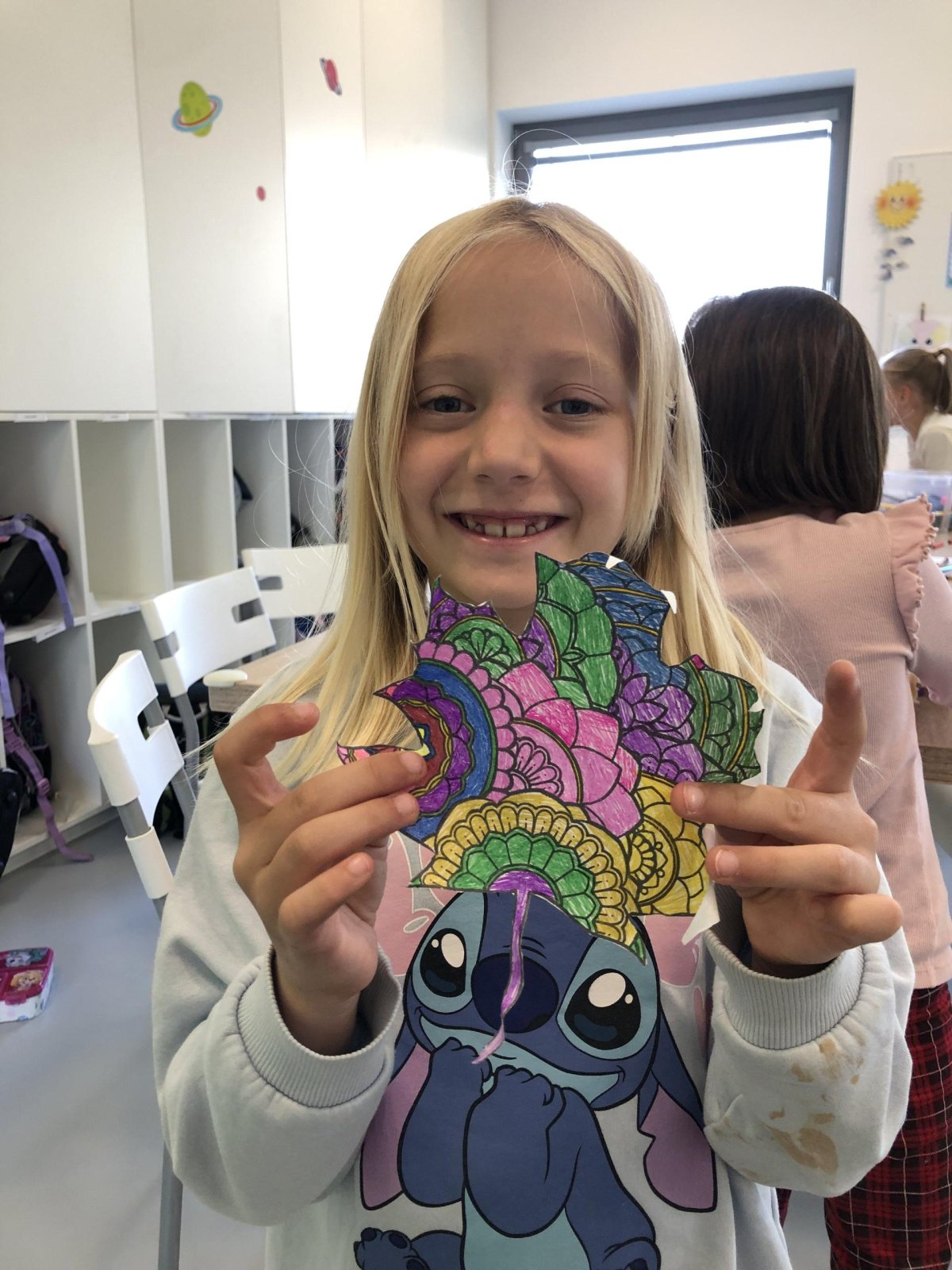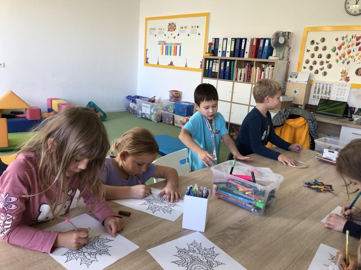 Dnes jsme si přečetli krásný příběh o věrném služebníku a pak jsme se společně pustili do tvořivé podzimní aktivity – malovali jsme list ve stylu mandaly. Práce to nebyla vůbec jednoduchá, protože vyžadovala velkou dávku soustředění, trpělivosti a pečlivosti při vybarvování jednotlivých částí. Děti se ale této výzvy zhostily s nadšením a dokázaly, že si poradí i s takto náročným úkolem. Výsledné obrázky se opravdu povedly – jsou barevné, originální a každý nese osobní rukopis svého autora. Hotová dílka nyní ozdobí naši nástěnku, aby mohla potěšit všechny kolemjdoucí a připomenout krásu podzimních barev.