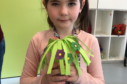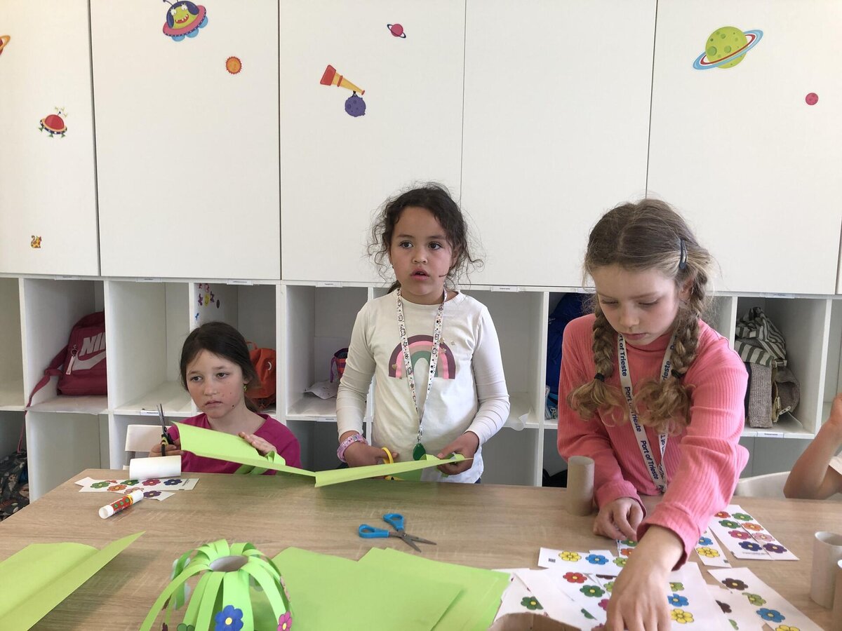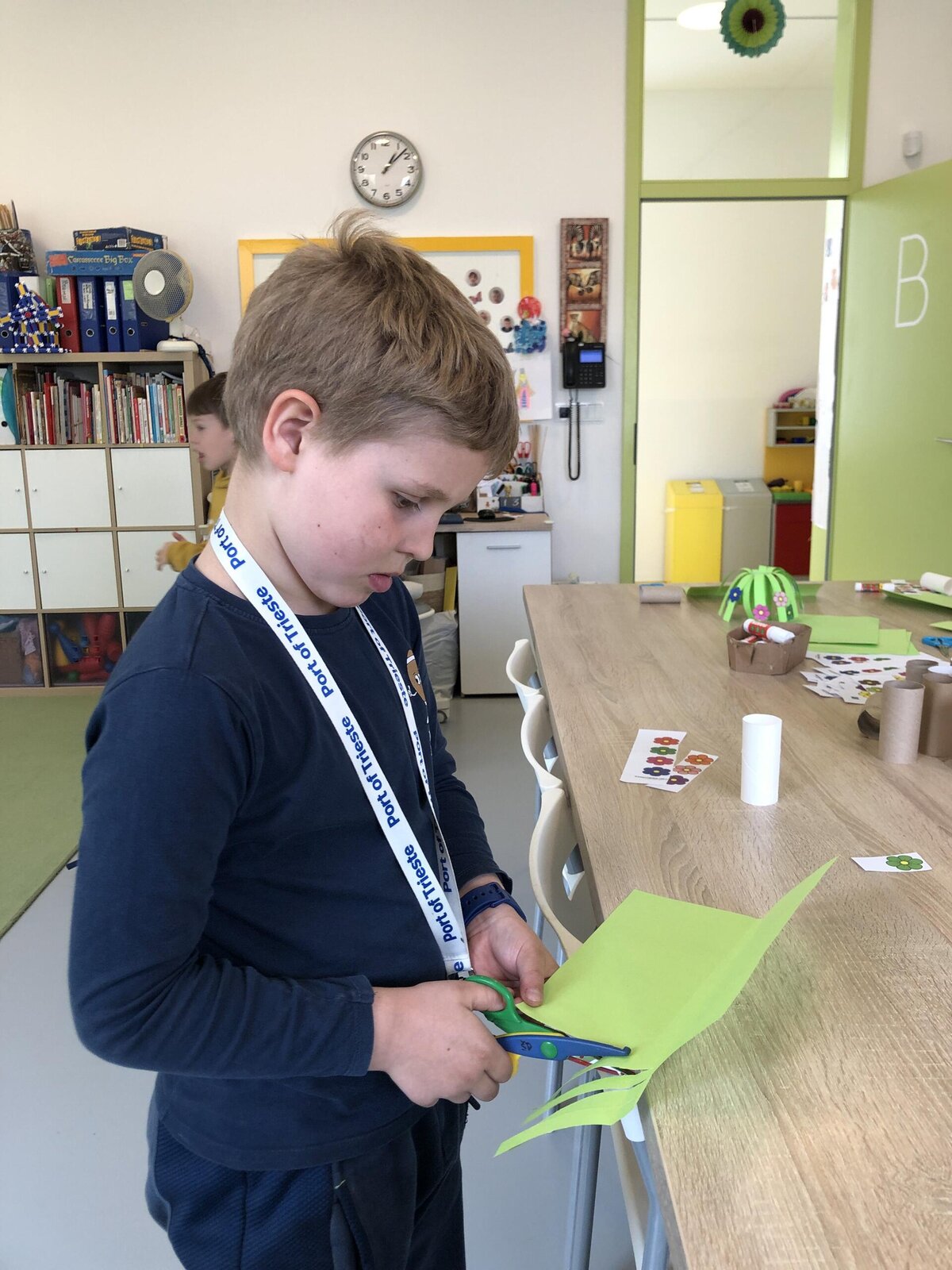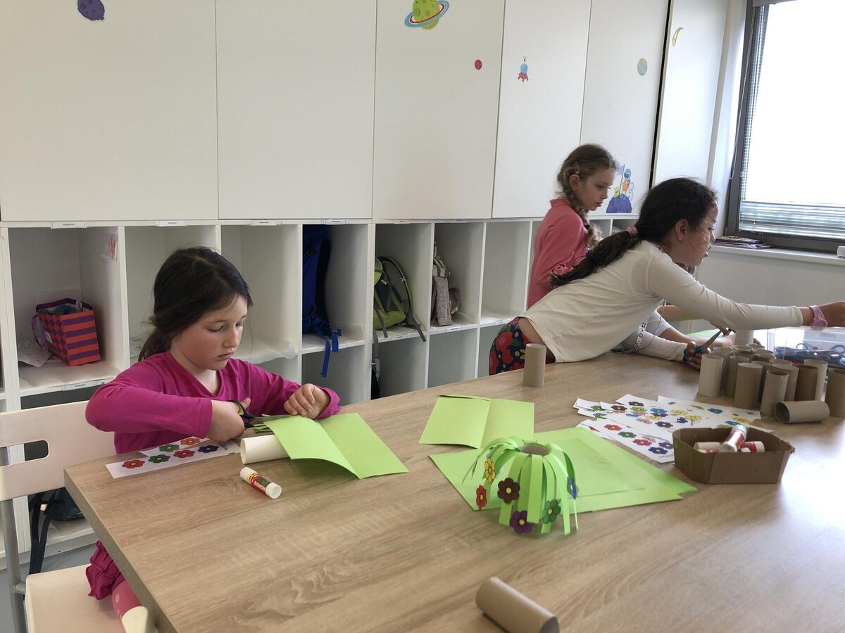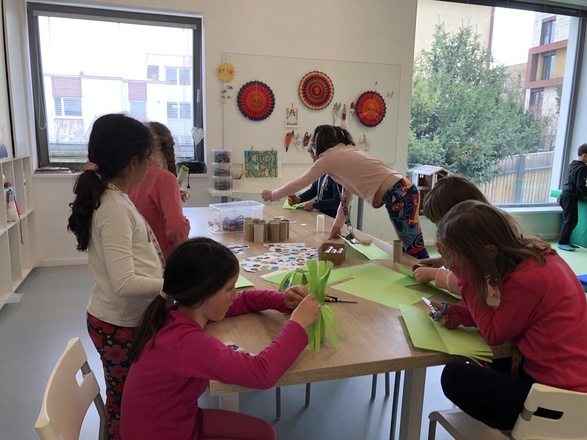 Dnes jsme vyráběli kytku – primulu. Je to druh prvosenky a má nádherné barvy. Děti dnes byly v lese, jaro je v plném proudu, a tak jsme si i my vyrobili krásný jarní květ. Děti s chutí a pečlivostí stříhaly, lepily a hotové primuly si odnášely domů. Po práci měly děti kroužek zpěvu a zbytek se šel vyběhat ven. Bylo celkem krásně, a tak jsme si hráli.