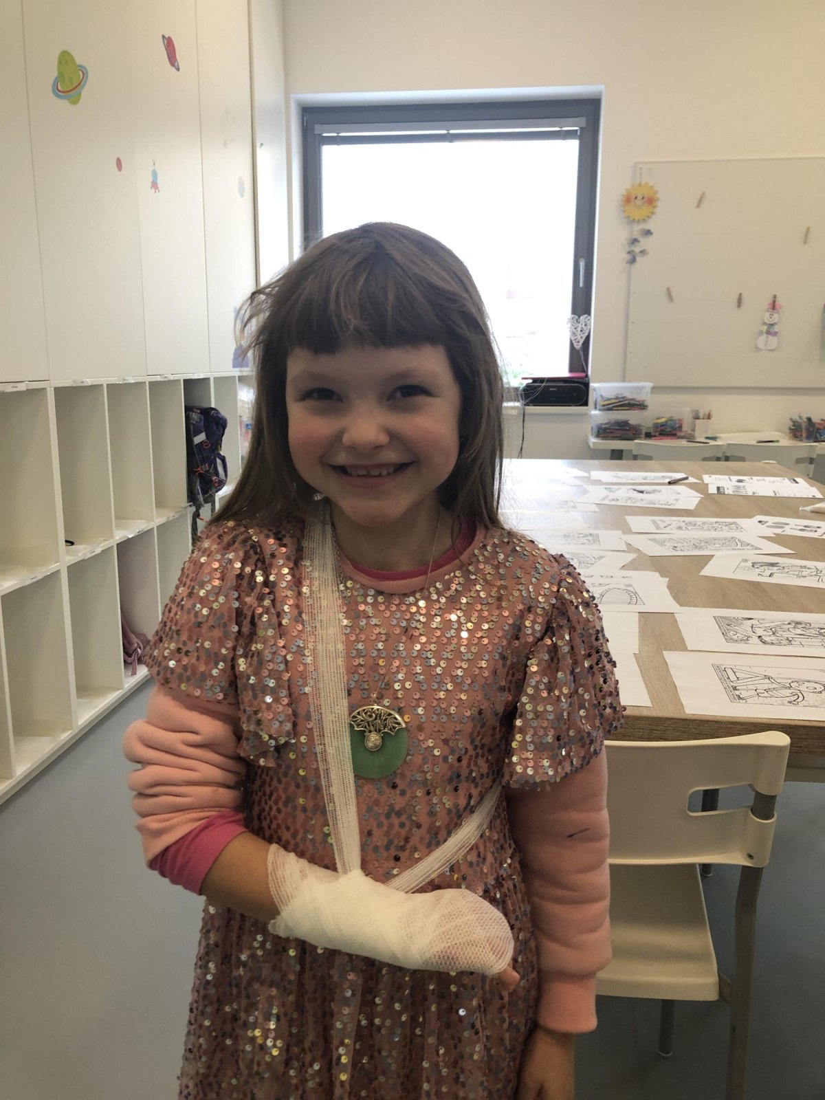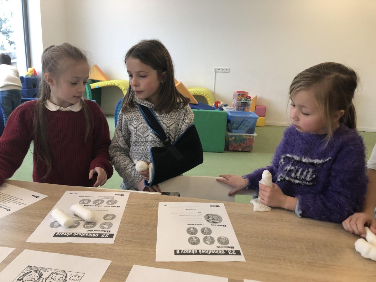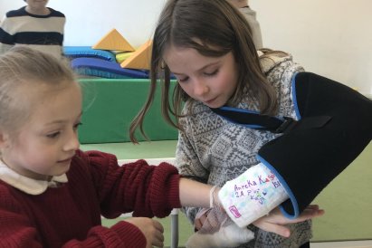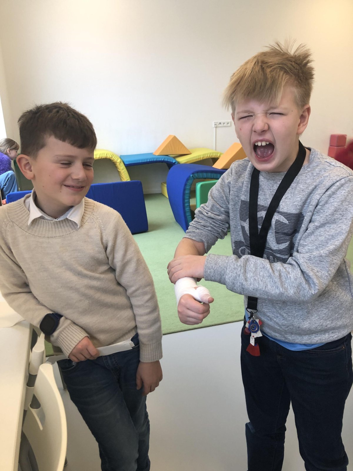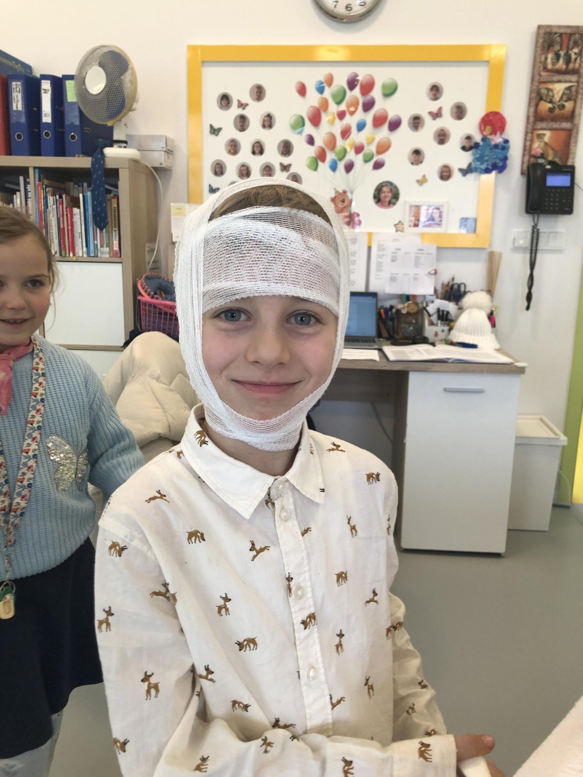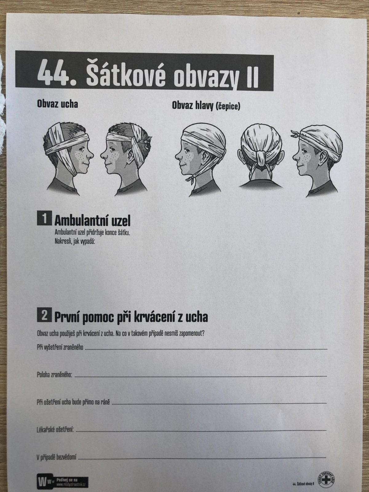 Dnes jsme si v družině hráli na první pomoc. Učili jsme se, jak správně zavázat ruku, nohu, hlavu, dlaň i jak postupovat při zlomenině. Děti si vše samy vyzkoušely a aktivita je moc bavila. Poté chodily po družině obvázané a s nadšením všechny „lekaly“ vyprávěním, co se jim přihodilo. Bylo to veselé, ale nikdo z nás by si nepřál, aby to byla skutečnost. Děti dnes dostaly vysvědčení, ze kterého měly velkou radost a ještě větší, že zítra mají prázdniny.