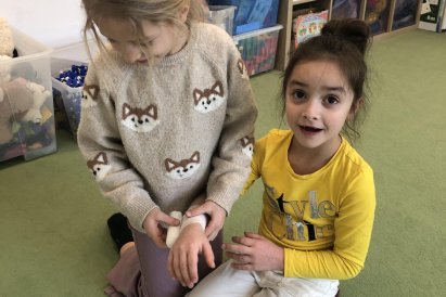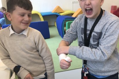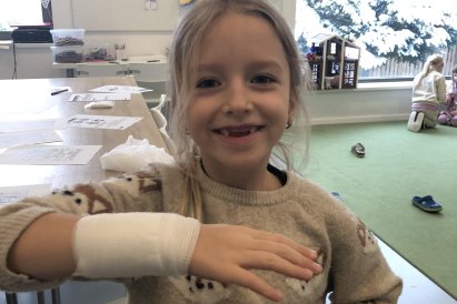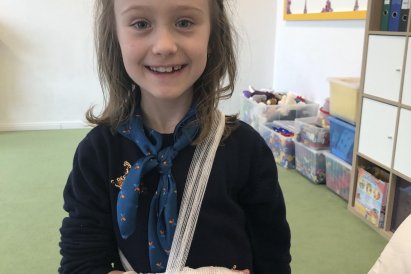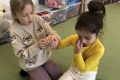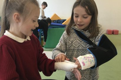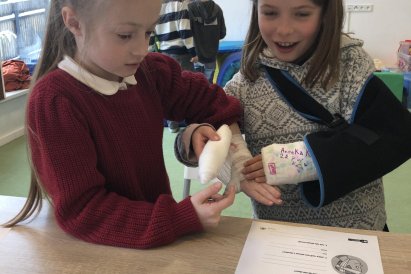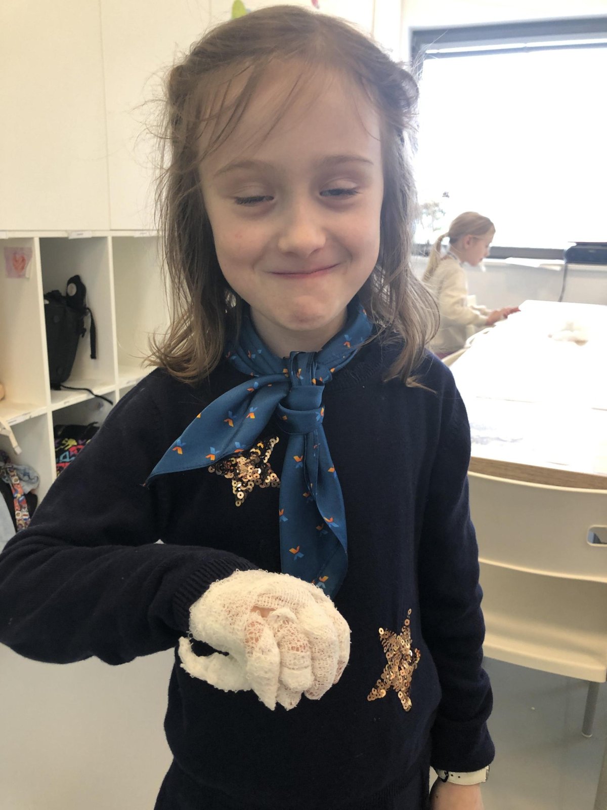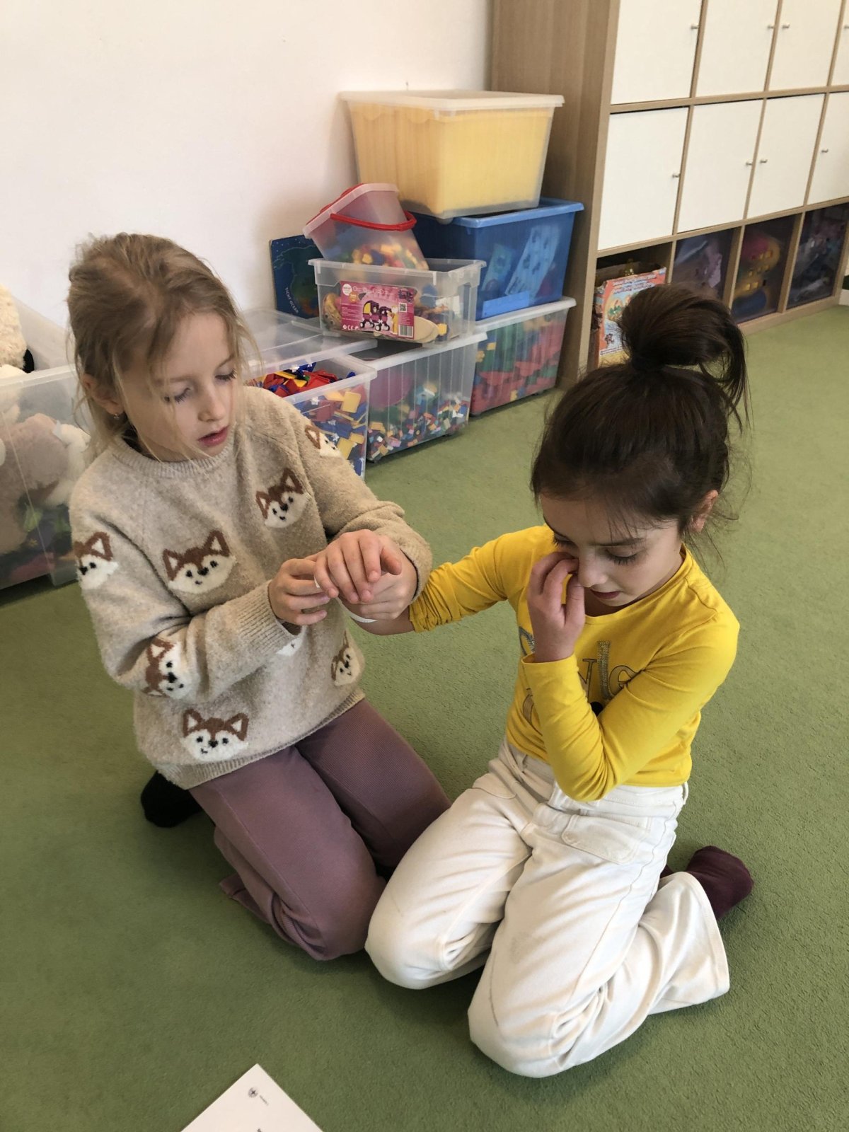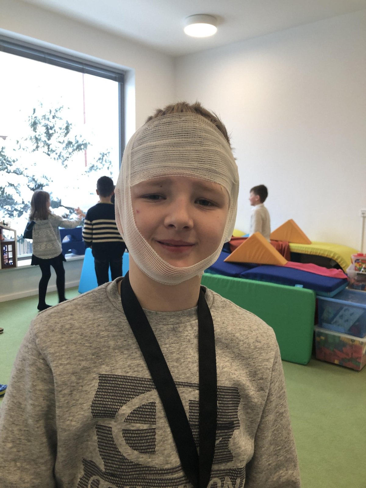Dnes jsme si v družině hráli na první pomoc. Učili jsme se, jak správně zavázat ruku, nohu, hlavu, dlaň i jak postupovat při zlomenině. Děti si vše samy vyzkoušely a aktivita je moc bavila. Poté chodily po družině obvázané a s nadšením všechny „lekaly“ vyprávěním, co se jim přihodilo. Bylo to veselé, ale nikdo z nás by si nepřál, aby to byla skutečnost. Děti dnes dostaly vysvědčení, ze kterého měly velkou radost a ještě větší, že zítra mají prázdniny.