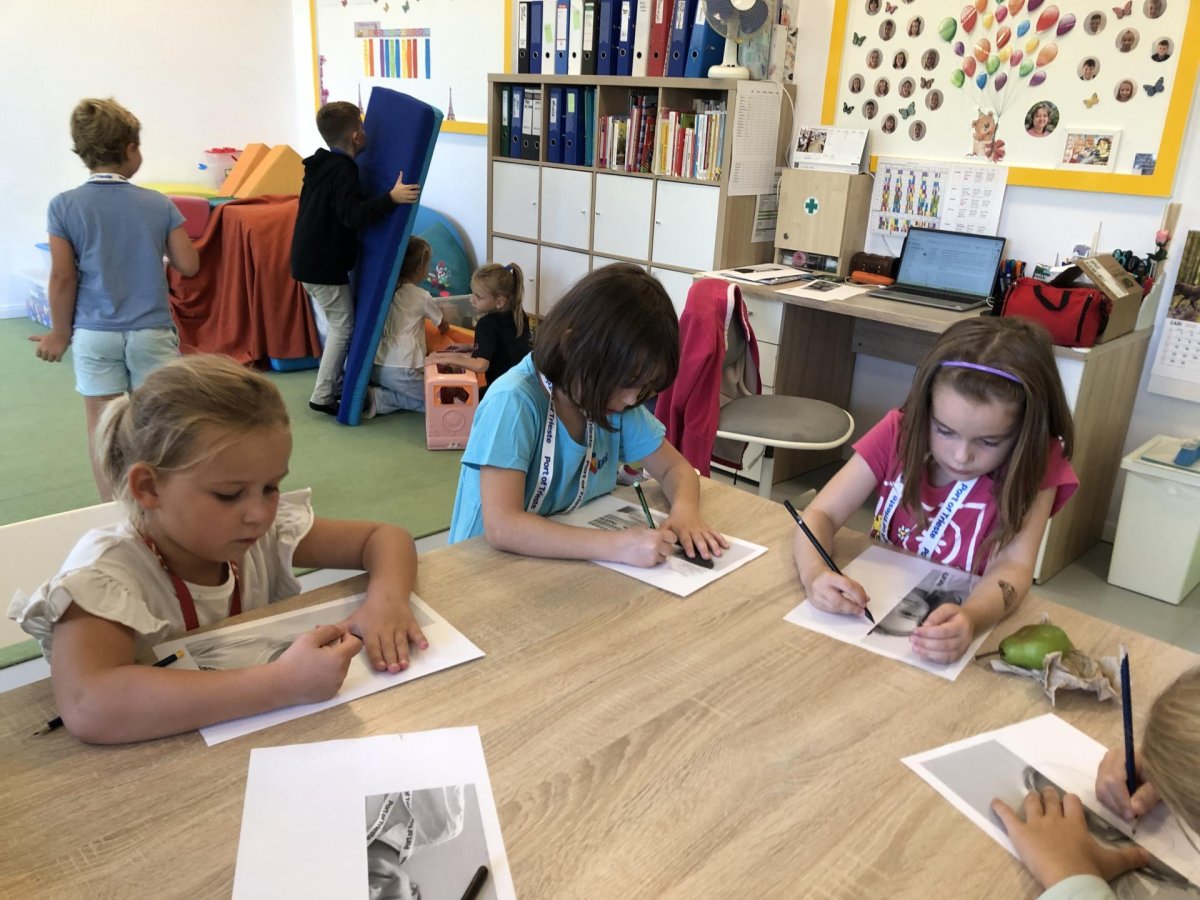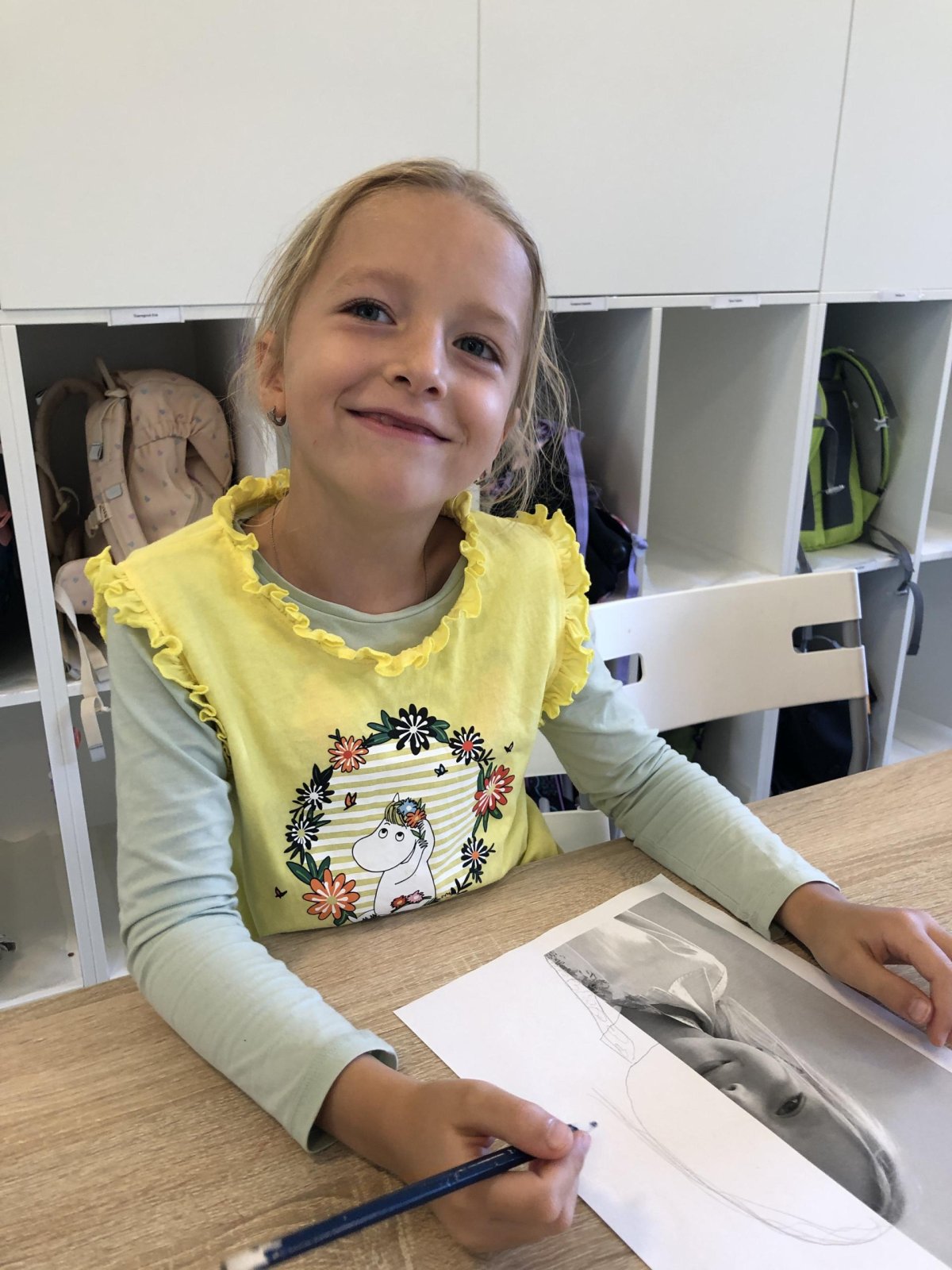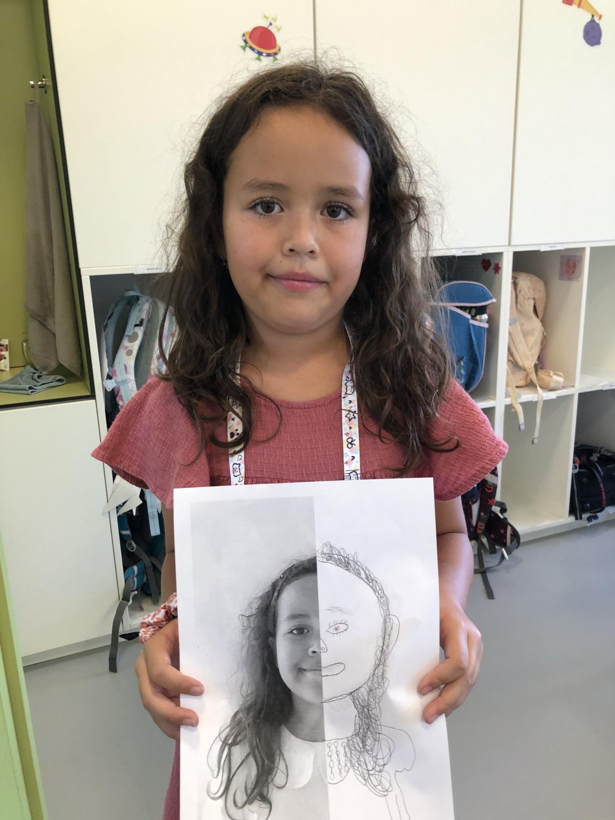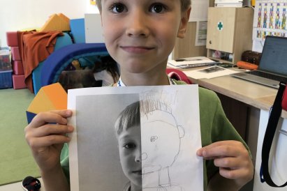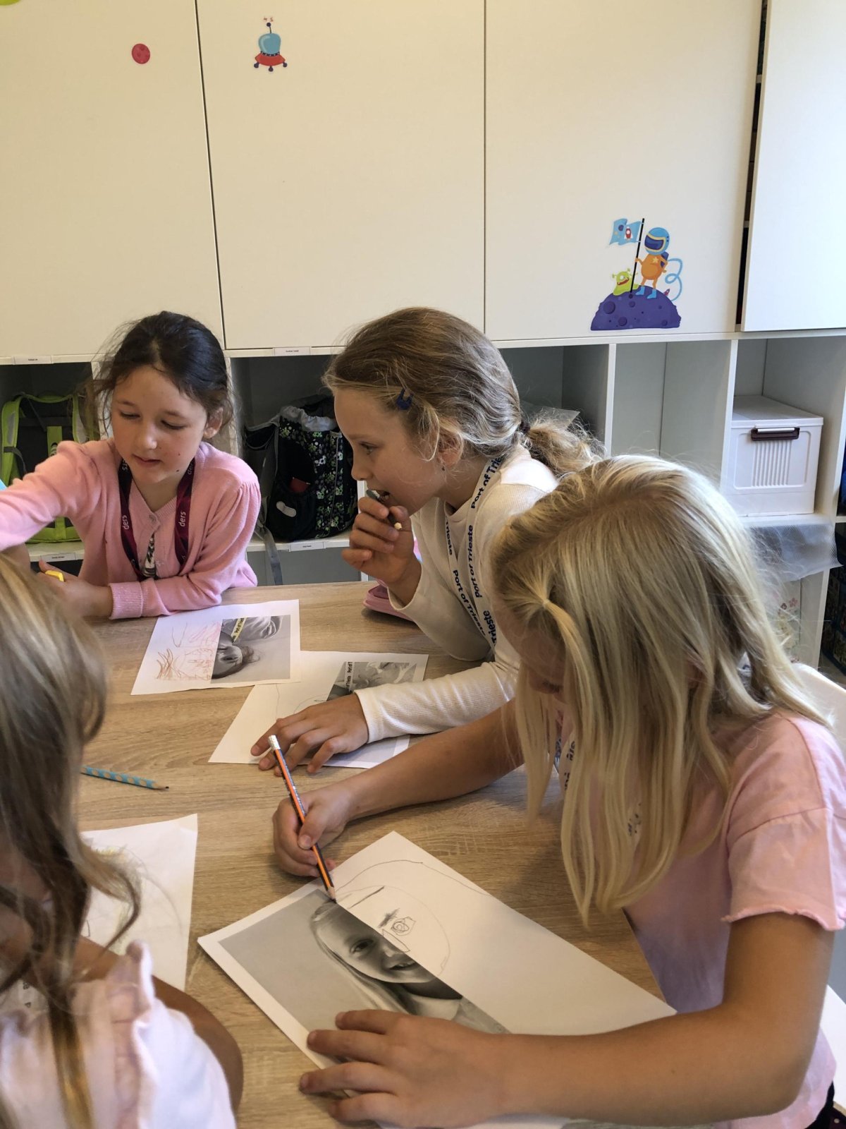 Dnes jsme pokračovali v kreslení půlportrétu s prvňáčky. Děti se krásně zapojily a výsledek? Podívejte se sami. Zvládli to, ne?