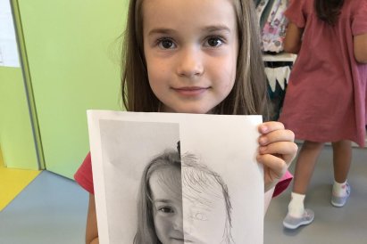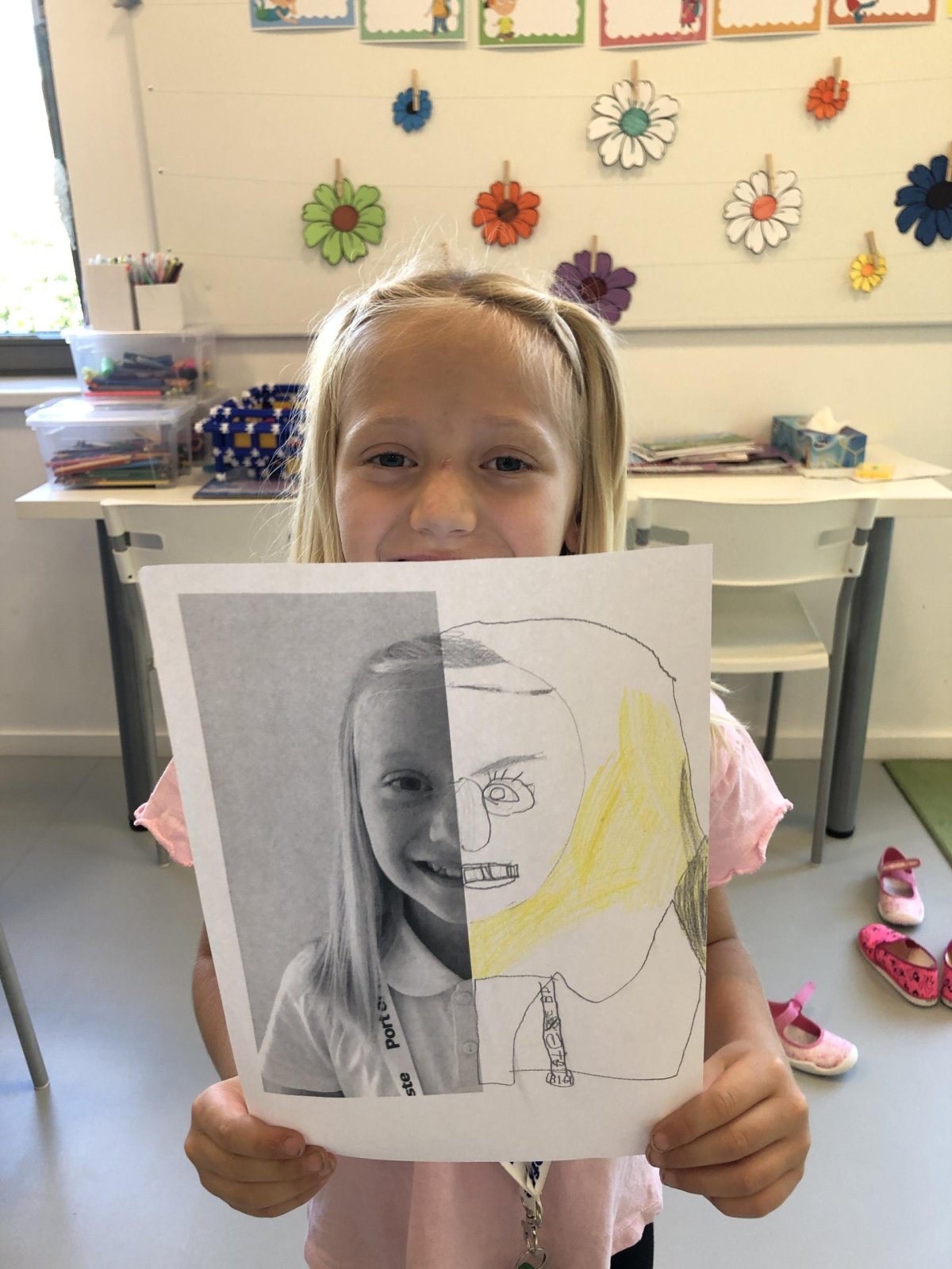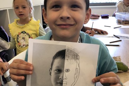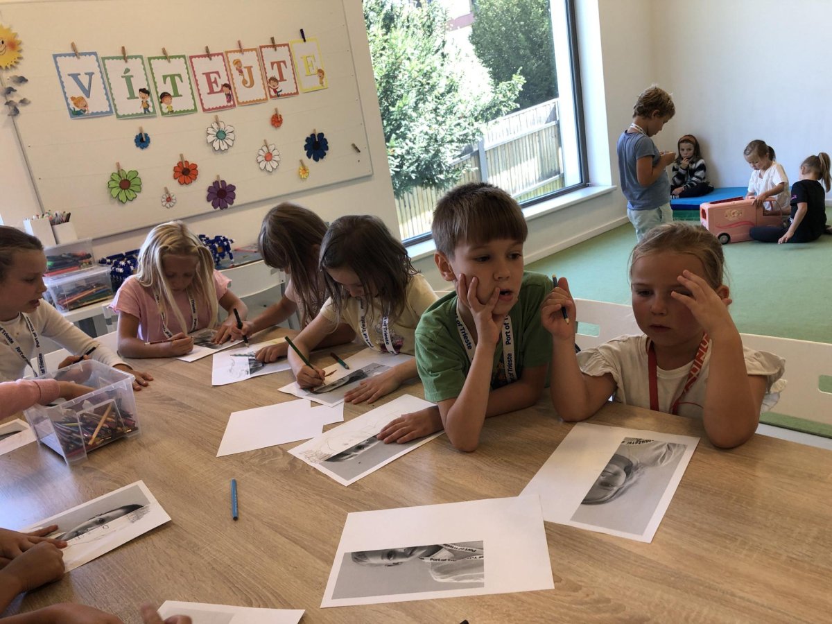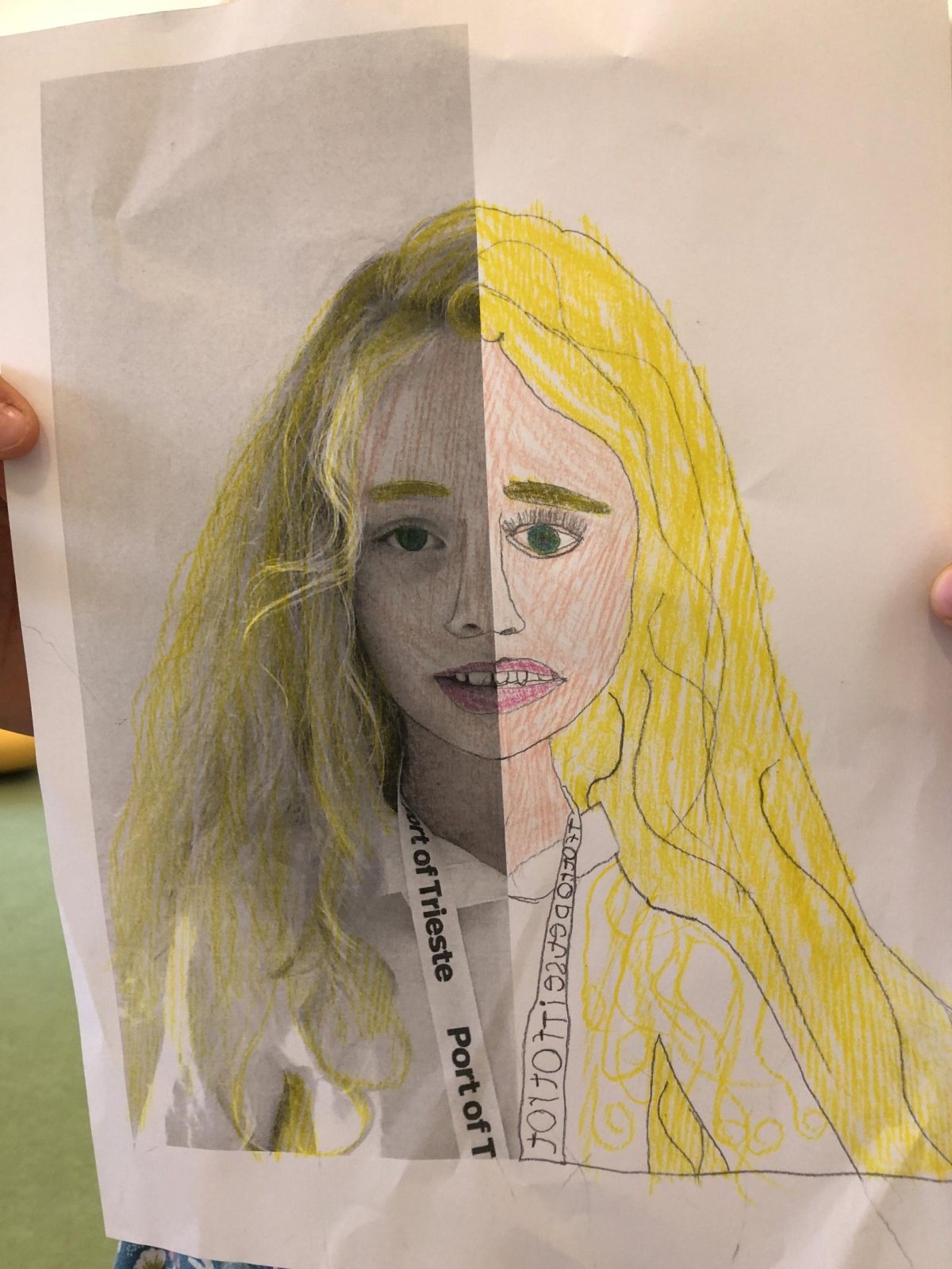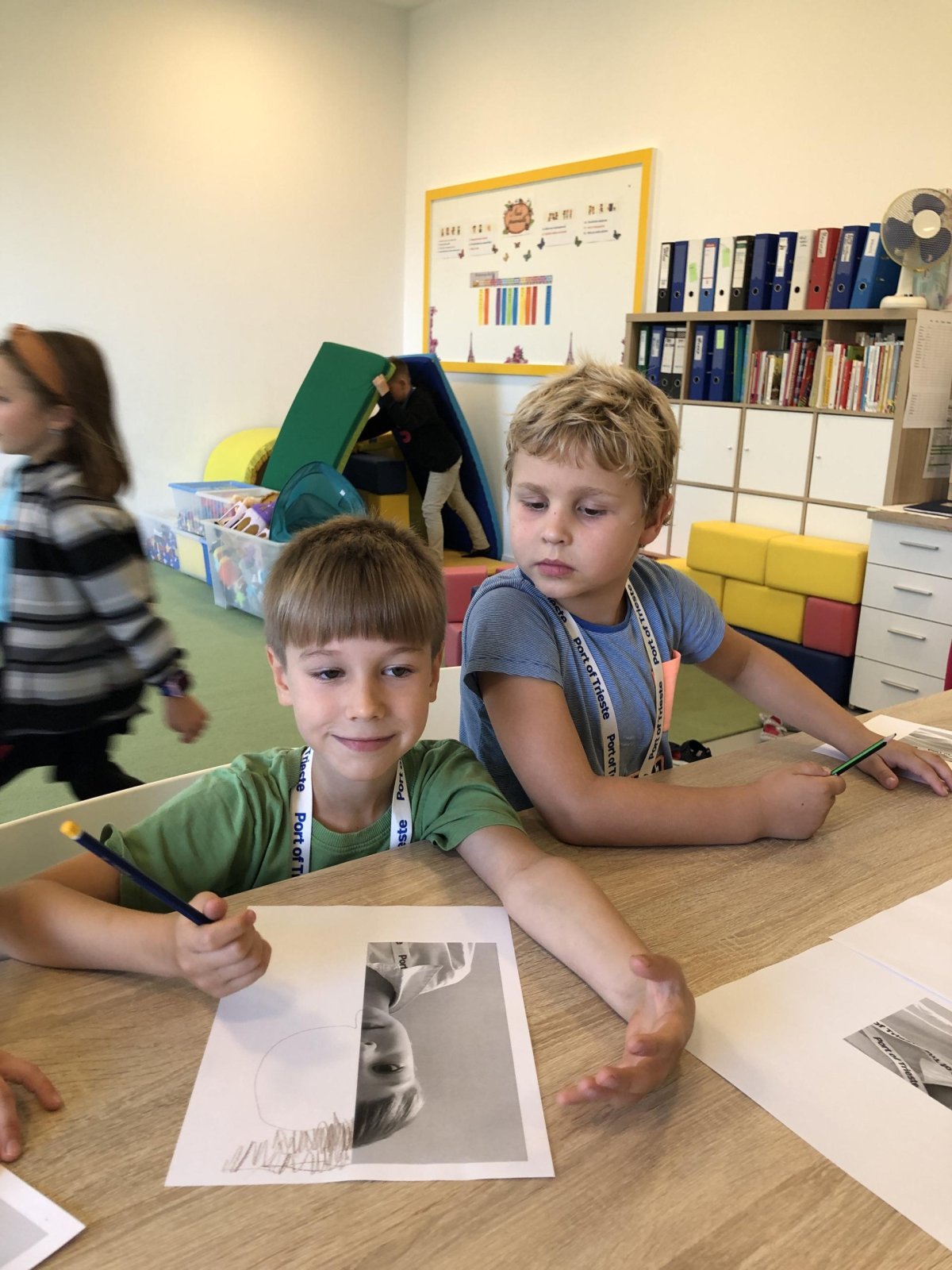 Dnes jsme pokračovali v kreslení půlportrétu s prvňáčky. Děti se krásně zapojily a výsledek? Podívejte se sami. Zvládli to, ne?