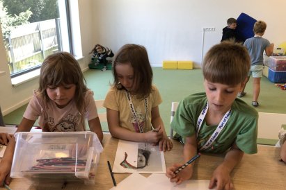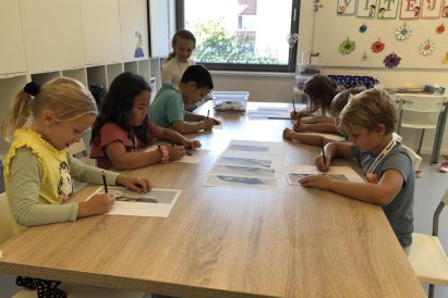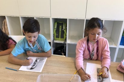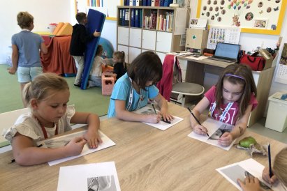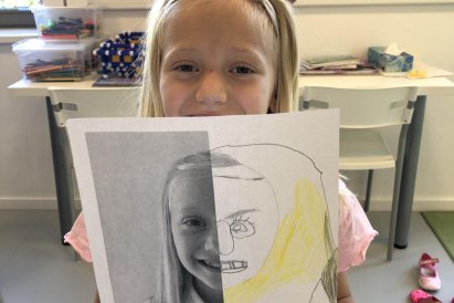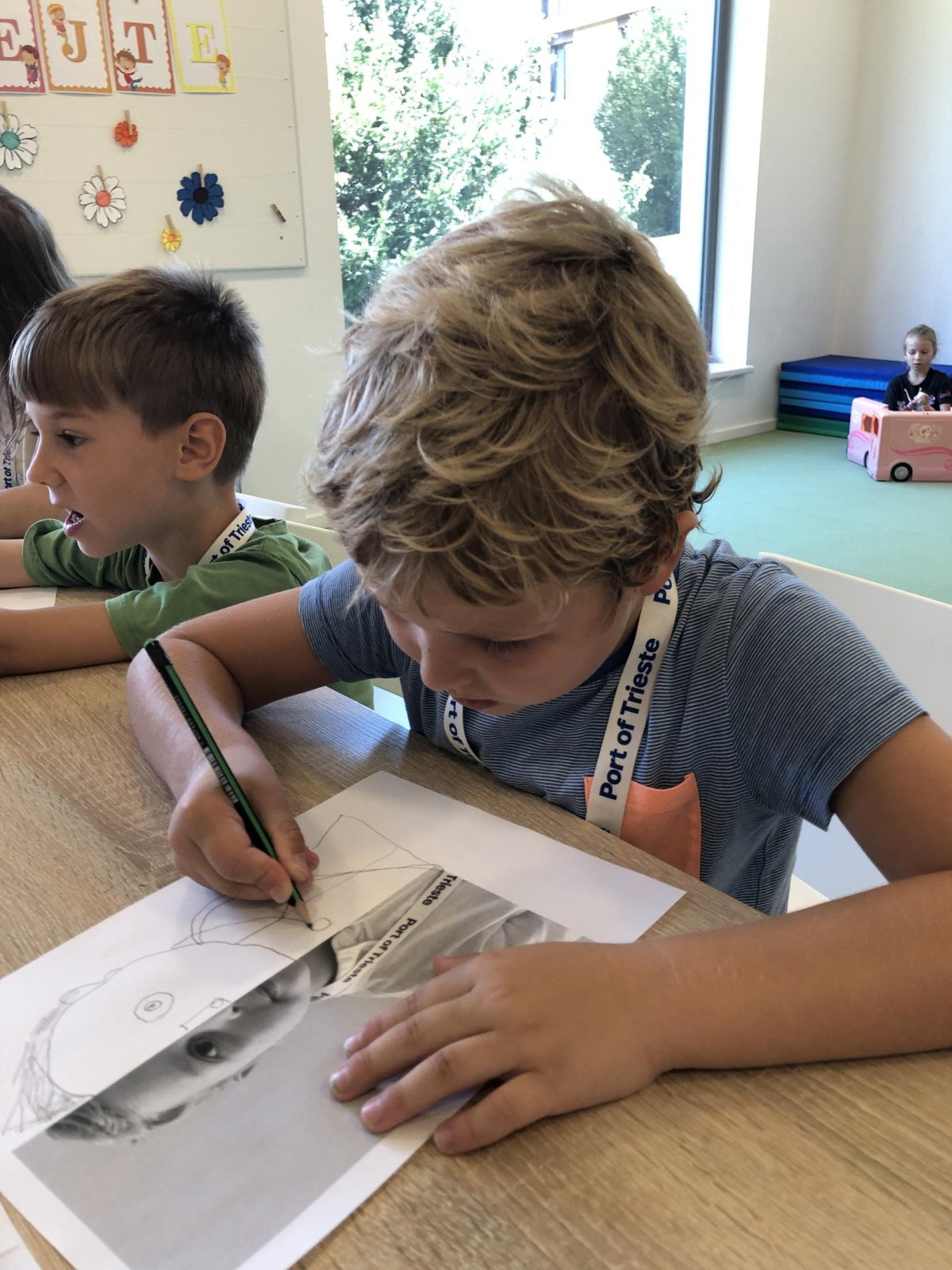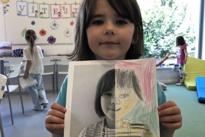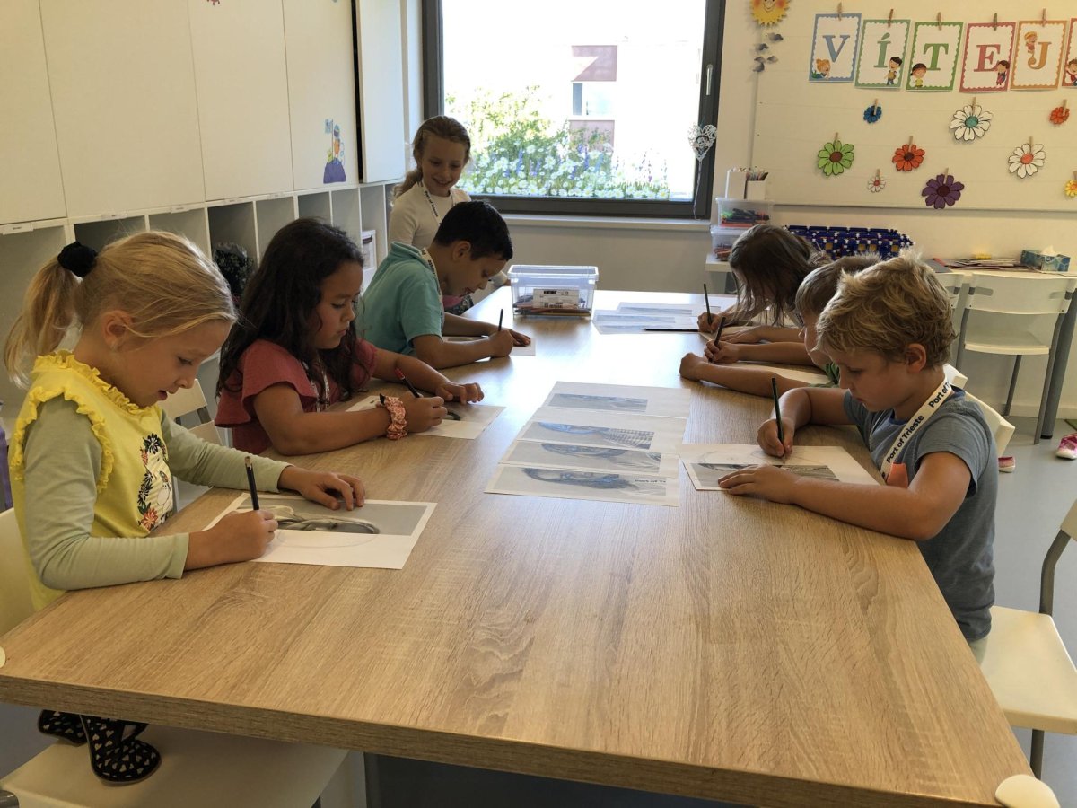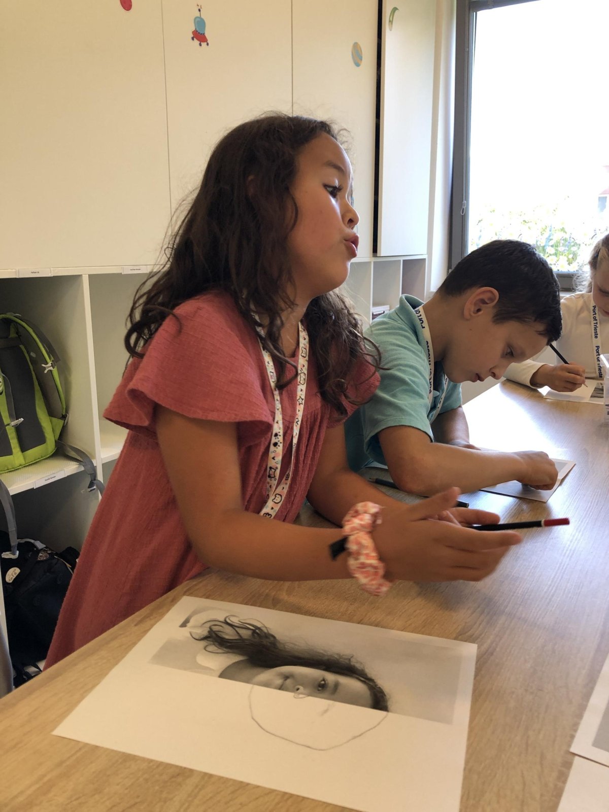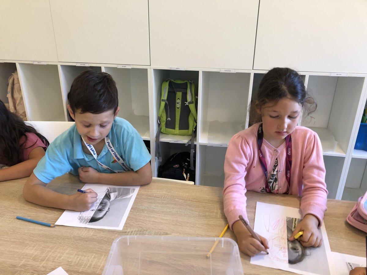 Dnes jsme pokračovali v kreslení půlportrétu s prvňáčky. Děti se krásně zapojily a výsledek? Podívejte se sami. Zvládli to, ne?