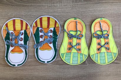 Ukázalo se, že to není vůbec jednoduché. Některým dětem dělalo potíže provléknout tkaničku skrz malé dírky, jiným se zase nedařilo udělat pěknou mašli. Ale všichni jsme to zkoušeli s velkou trpělivostí a nakonec se každému podařilo botu dokončit.