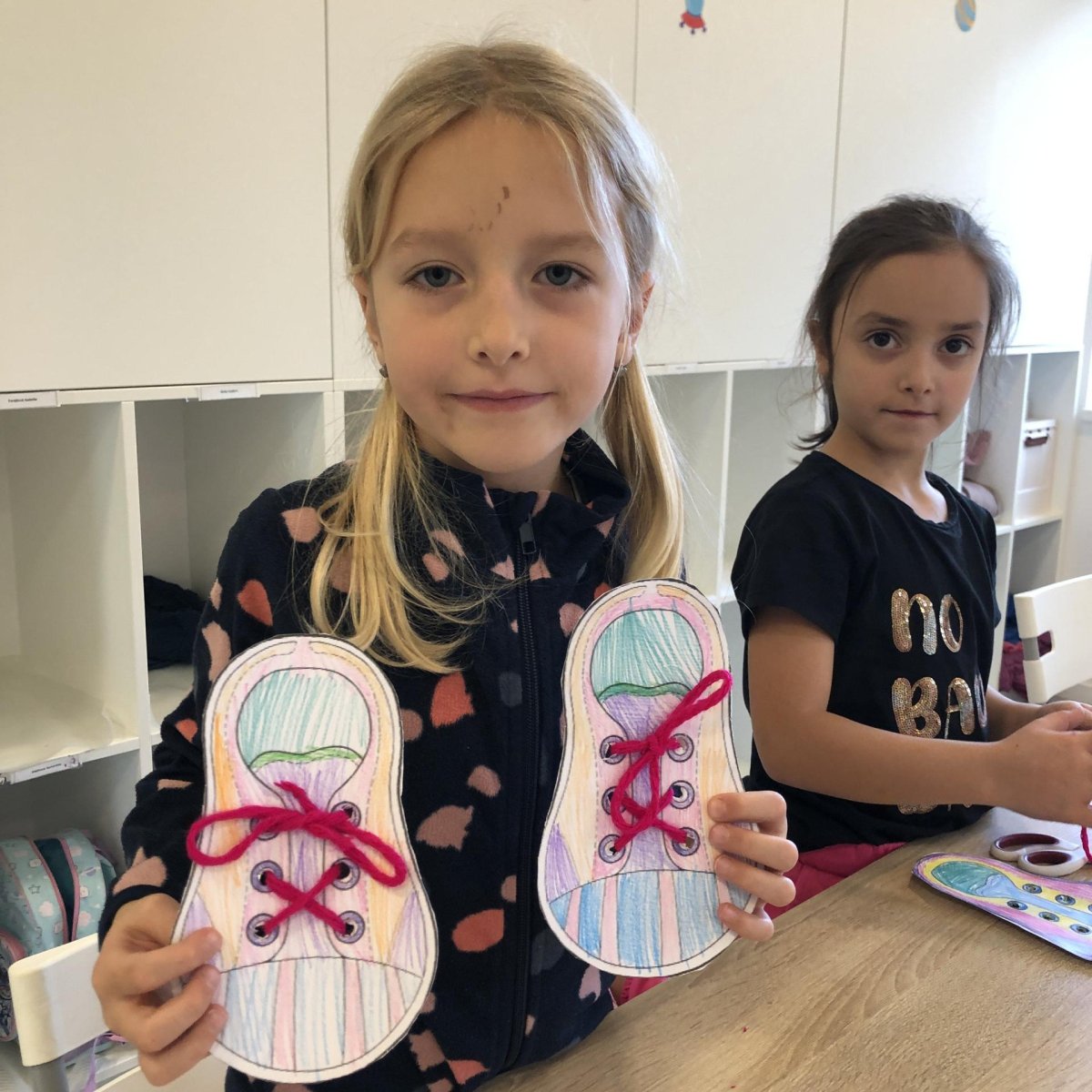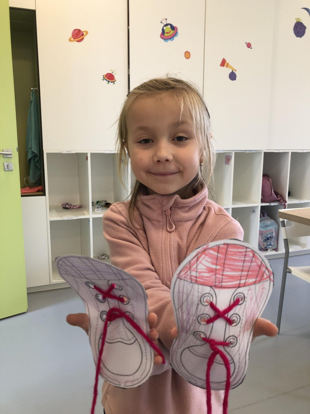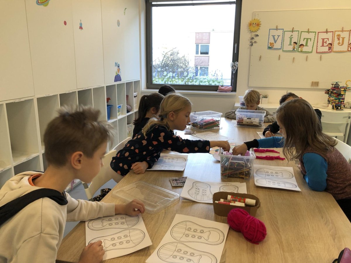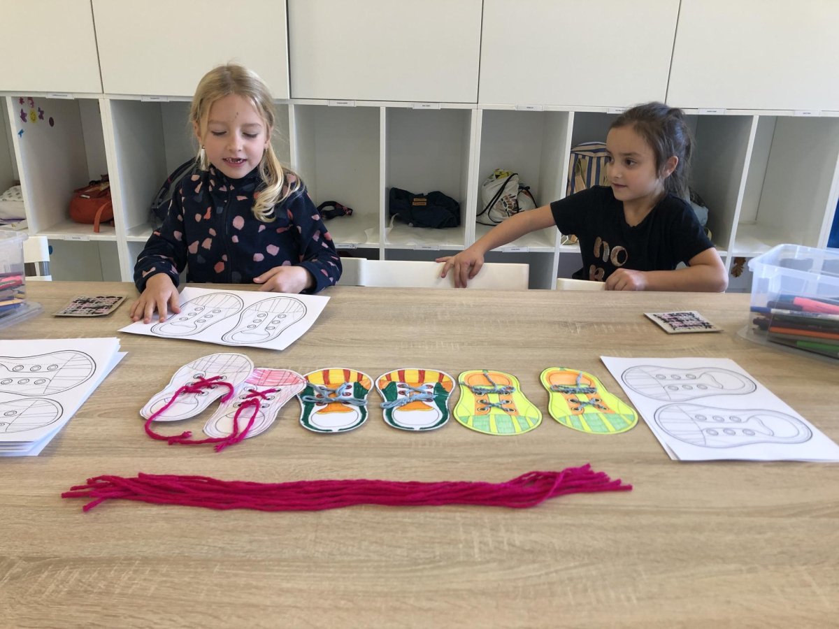 Tato aktivita byla nejen zábavná, ale také velmi užitečná – pomohla dětem procvičit jemnou motoriku, trpělivost a naučit se zavazovat tkaničky, což se jim bude hodit nejen ve škole, ale i v běžném životě.