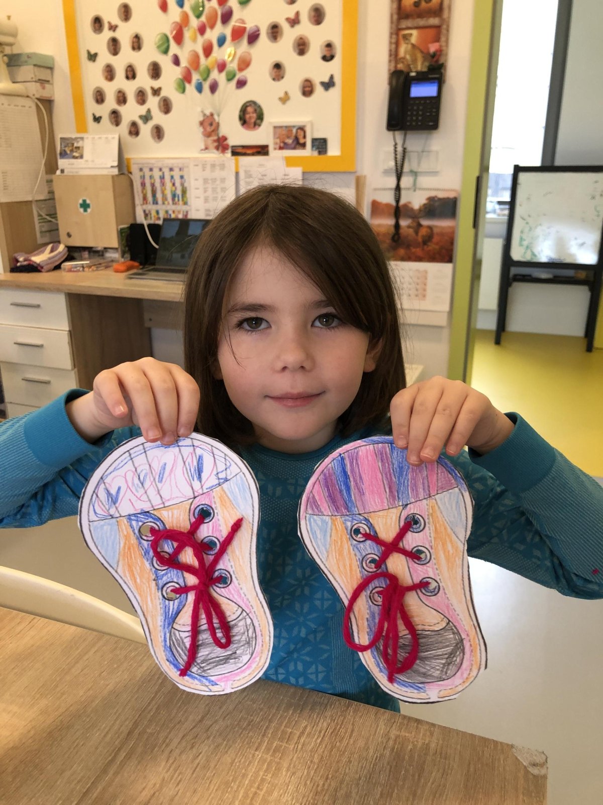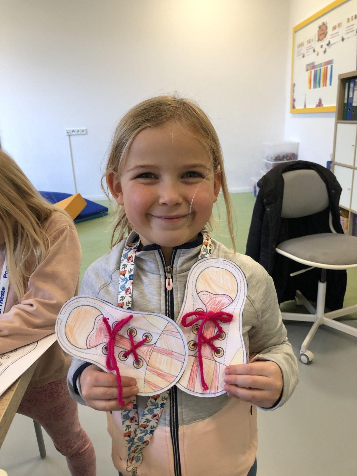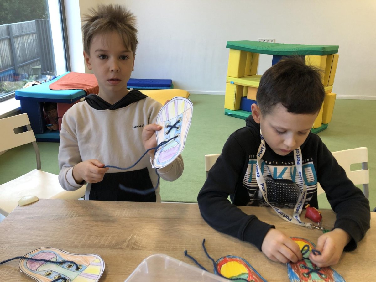 Tato aktivita byla nejen zábavná, ale také velmi užitečná – pomohla dětem procvičit jemnou motoriku, trpělivost a naučit se zavazovat tkaničky, což se jim bude hodit nejen ve škole, ale i v běžném životě.