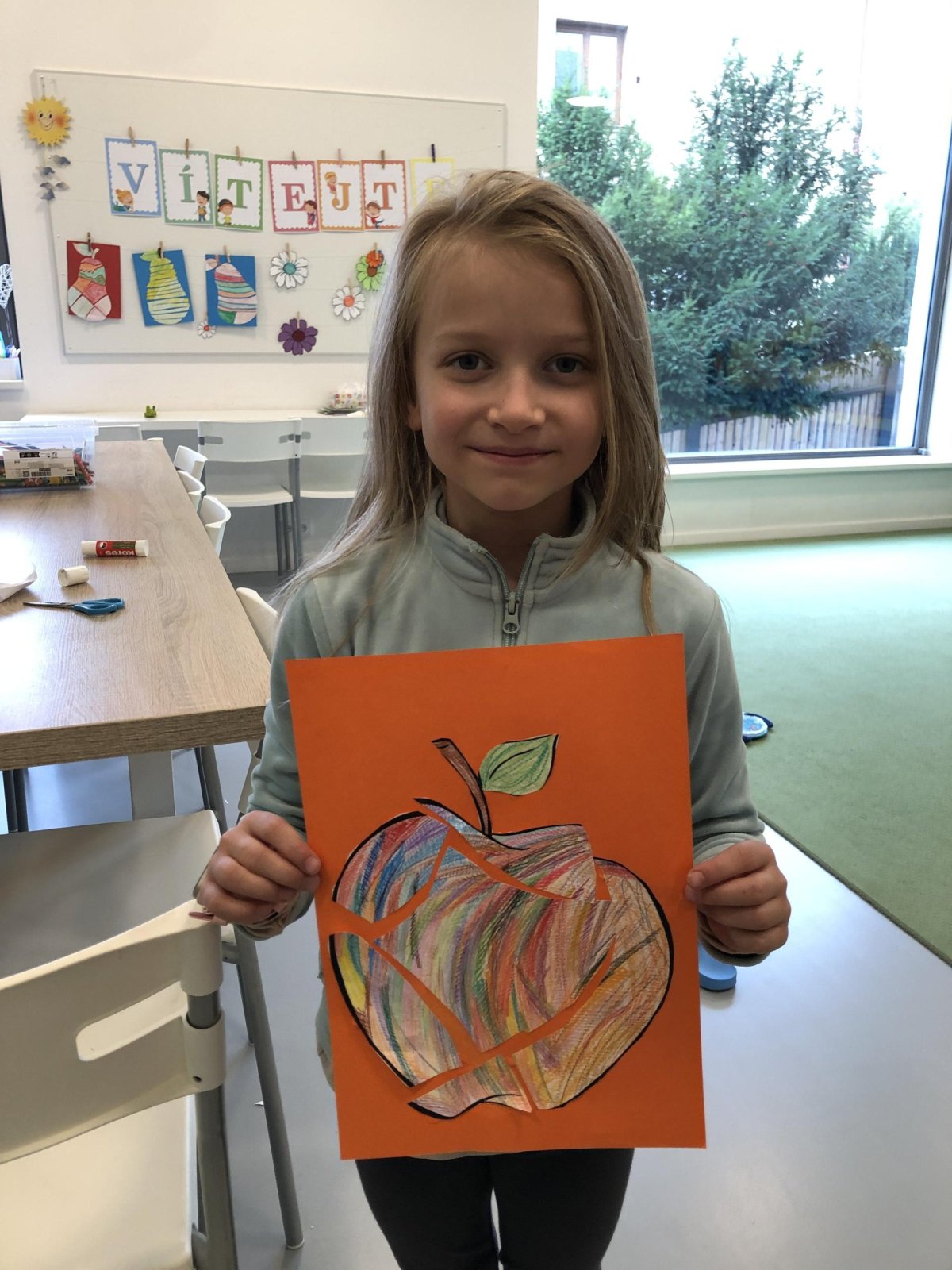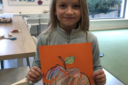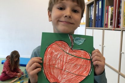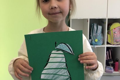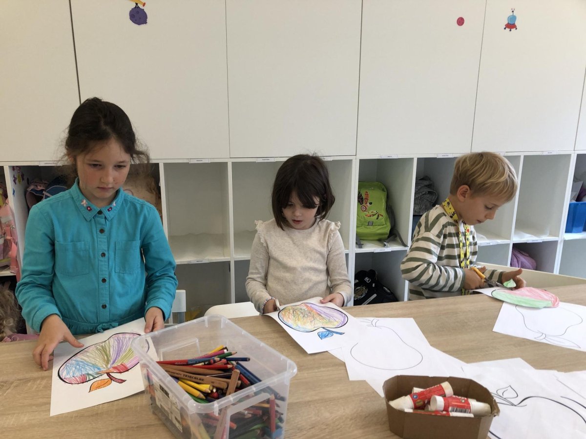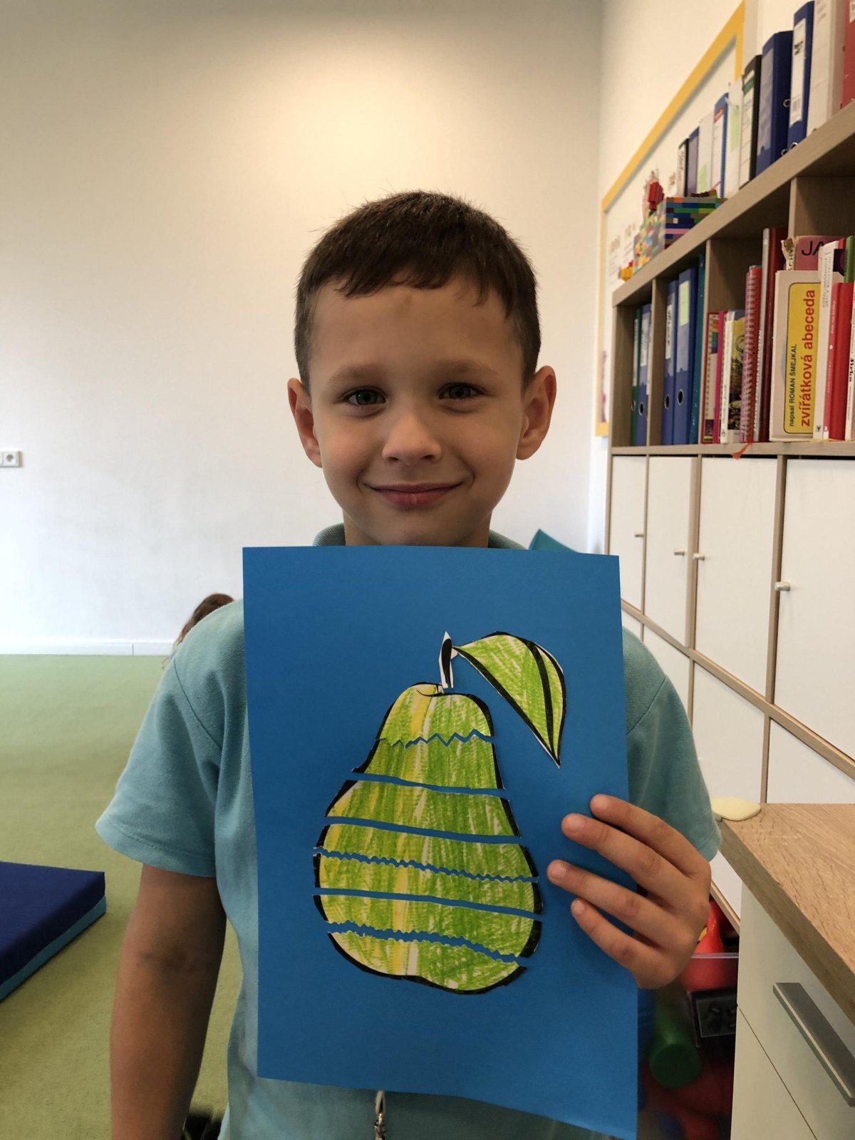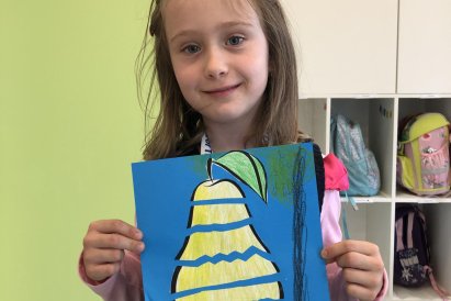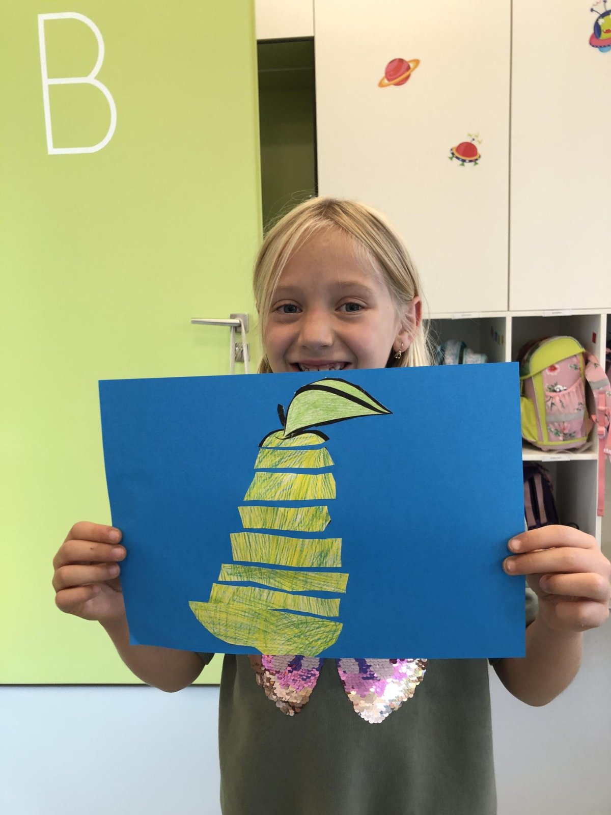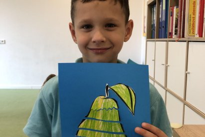 Dnes jsme v rámci družiny vyráběli tento veselý skládaný obrázek hrušky, nebo jablka. Děti si procvičily stříhání, lepení a tvořivou představivost, když jednotlivé proužky spojovaly zpět do tvaru ovoce.