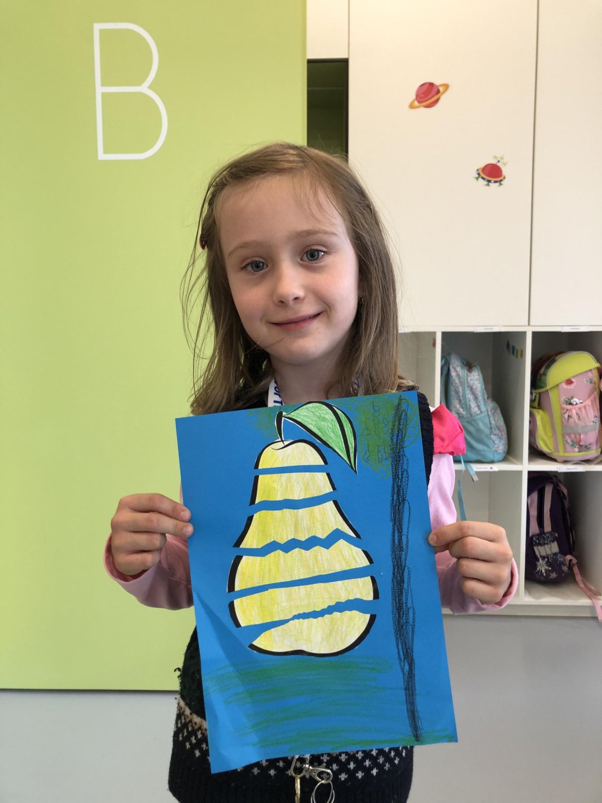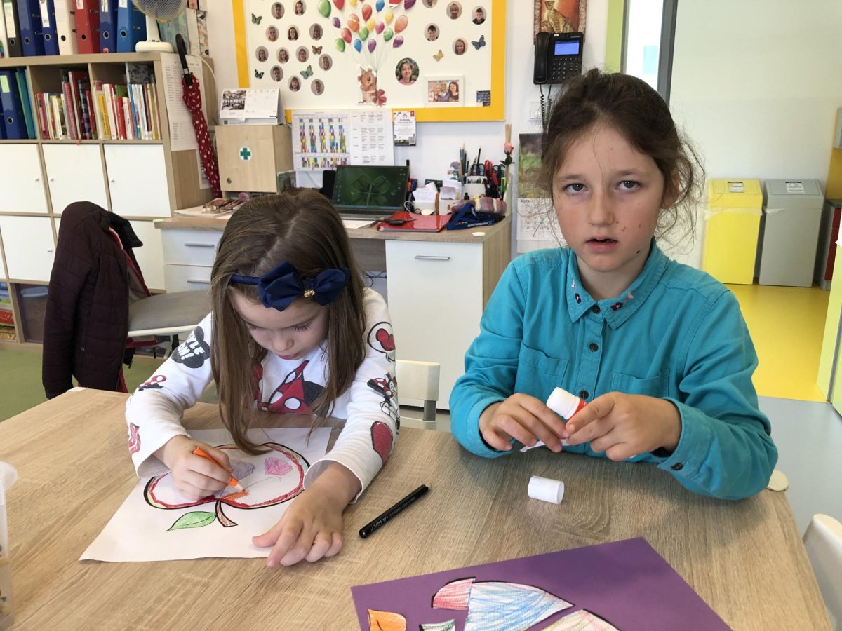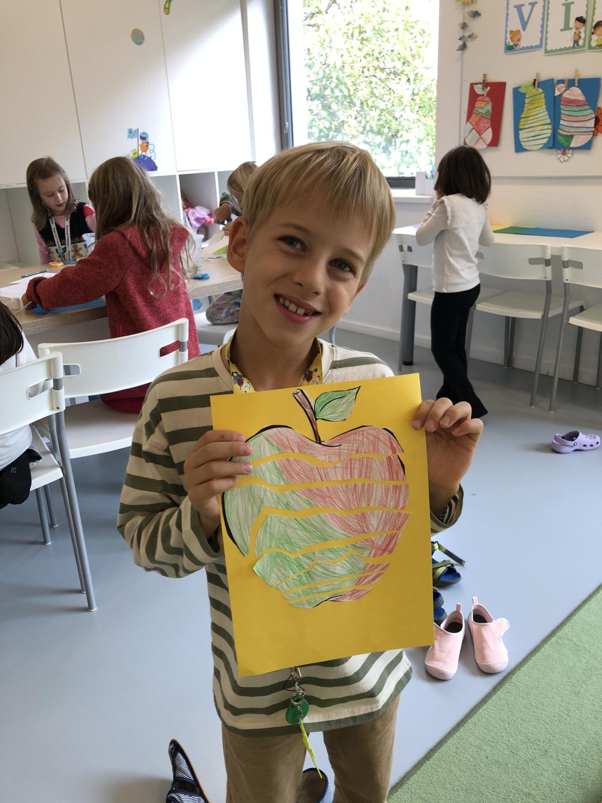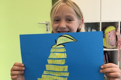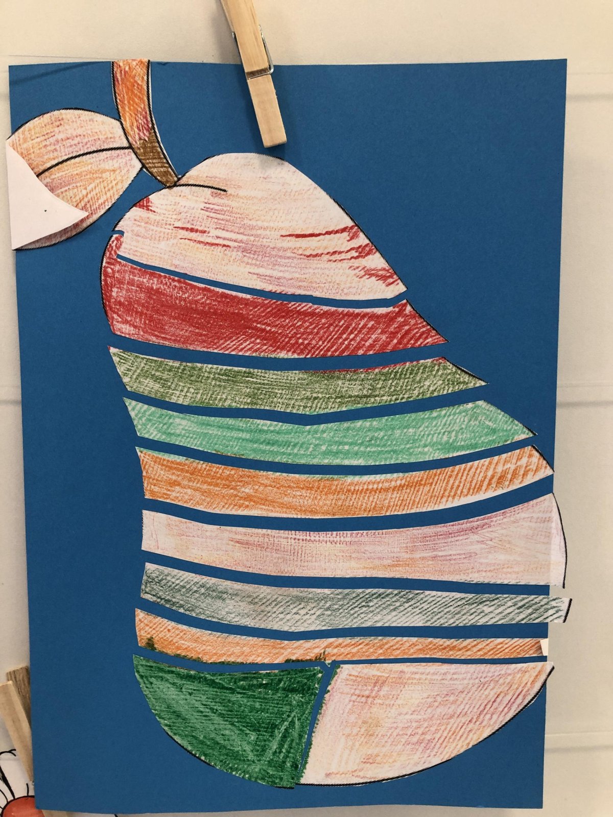 Dnes jsme v rámci družiny vyráběli tento veselý skládaný obrázek hrušky, nebo jablka. Děti si procvičily stříhání, lepení a tvořivou představivost, když jednotlivé proužky spojovaly zpět do tvaru ovoce.