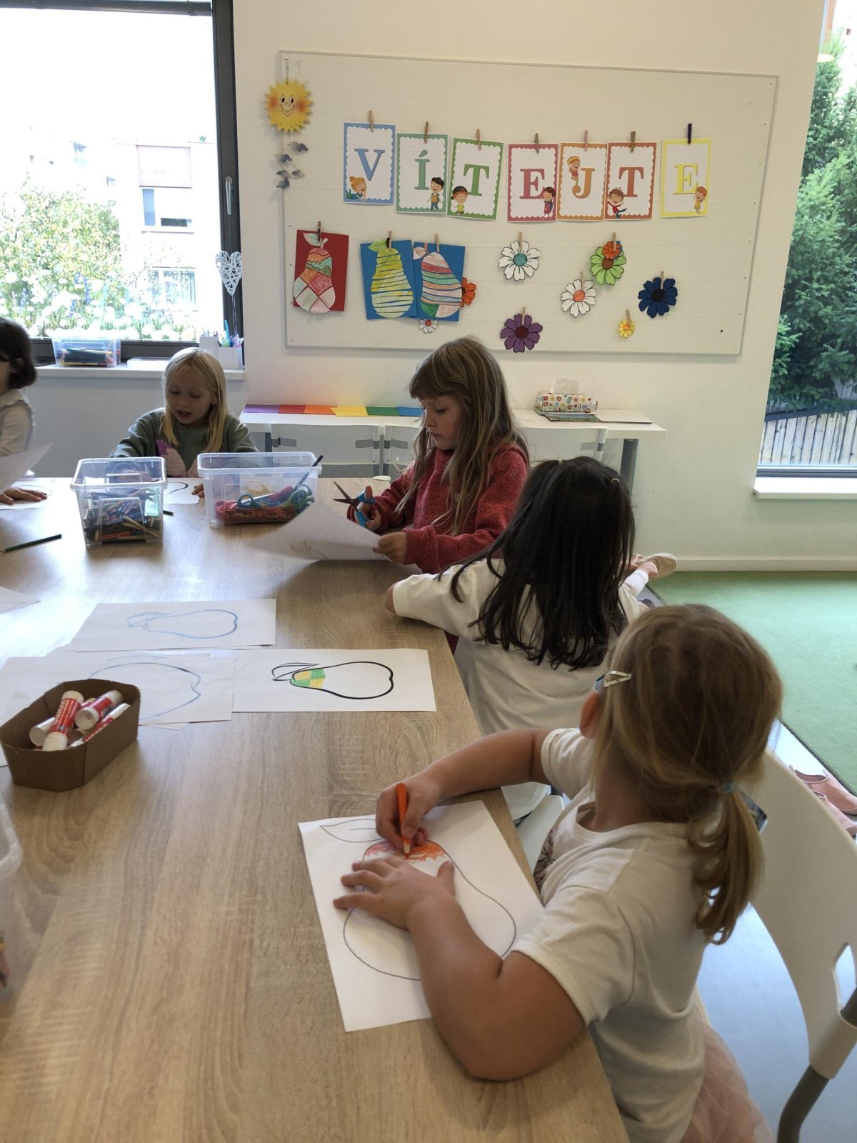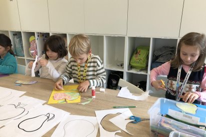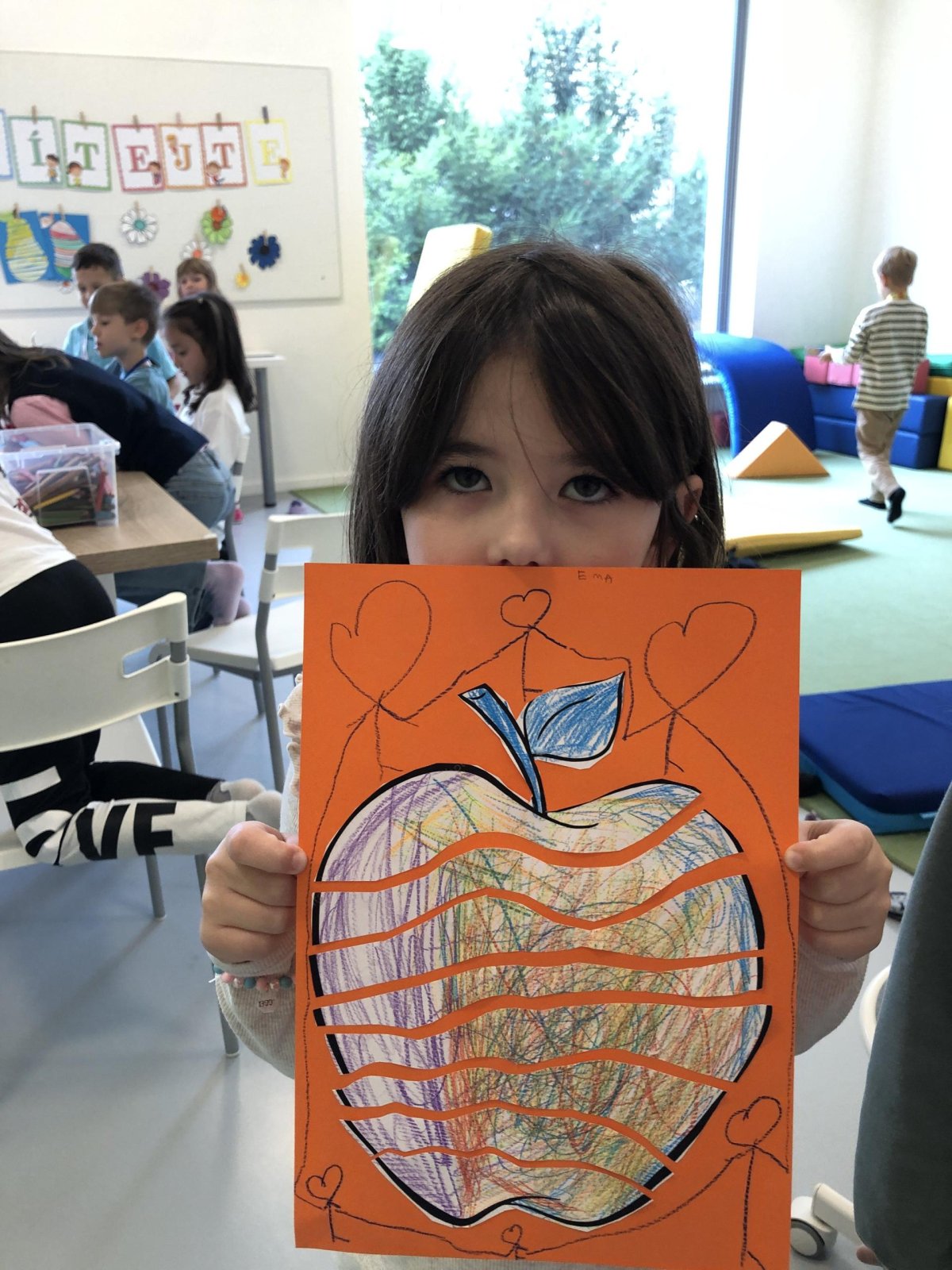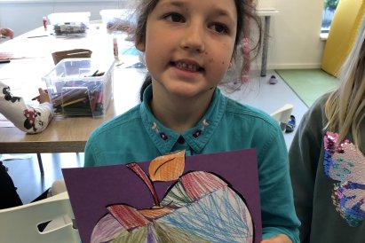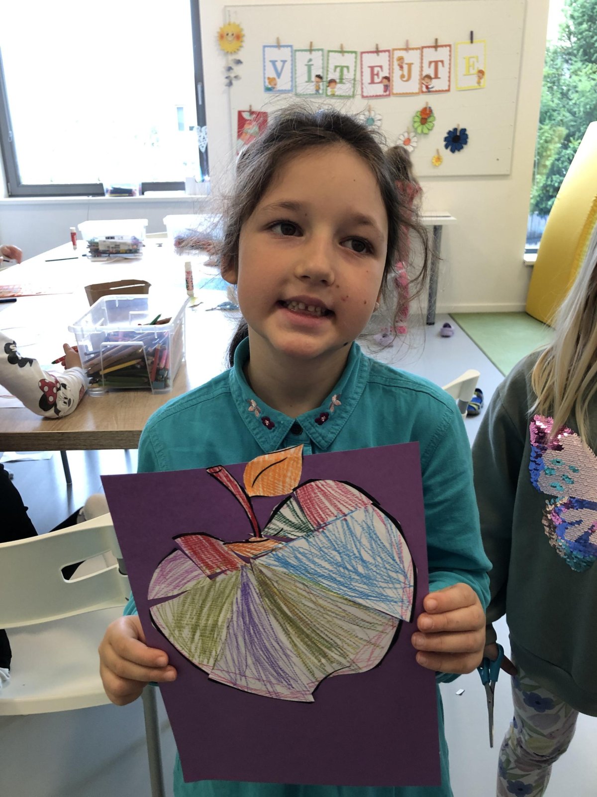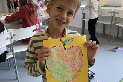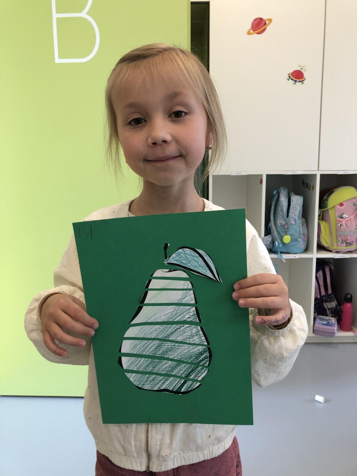 Dnes jsme v rámci družiny vyráběli tento veselý skládaný obrázek hrušky, nebo jablka. Děti si procvičily stříhání, lepení a tvořivou představivost, když jednotlivé proužky spojovaly zpět do tvaru ovoce.