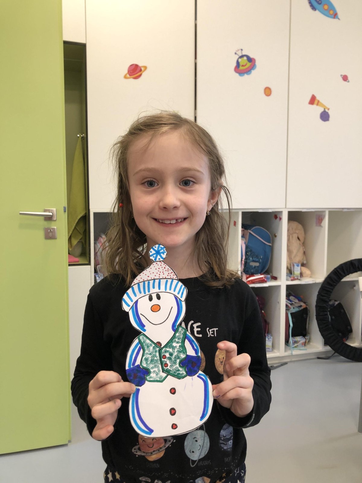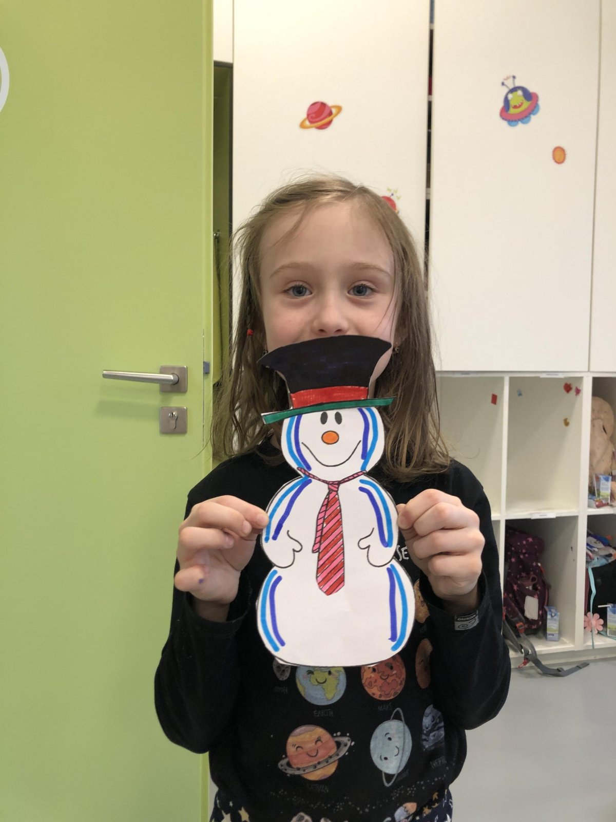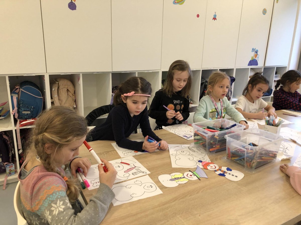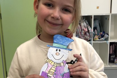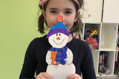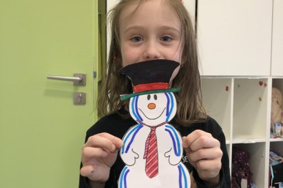 Dnes jsme vyrobili sněhuláka z papíru, protože sníh zatím nemáme, jen opravdovou zimu. I tak má všechno, co má správný sněhulák mít – kulaté tělo, veselý výraz a zimní kouzlo. Připomíná nám, že radost si můžeme vytvořit i bez sněhu, stačí trocha fantazie.
