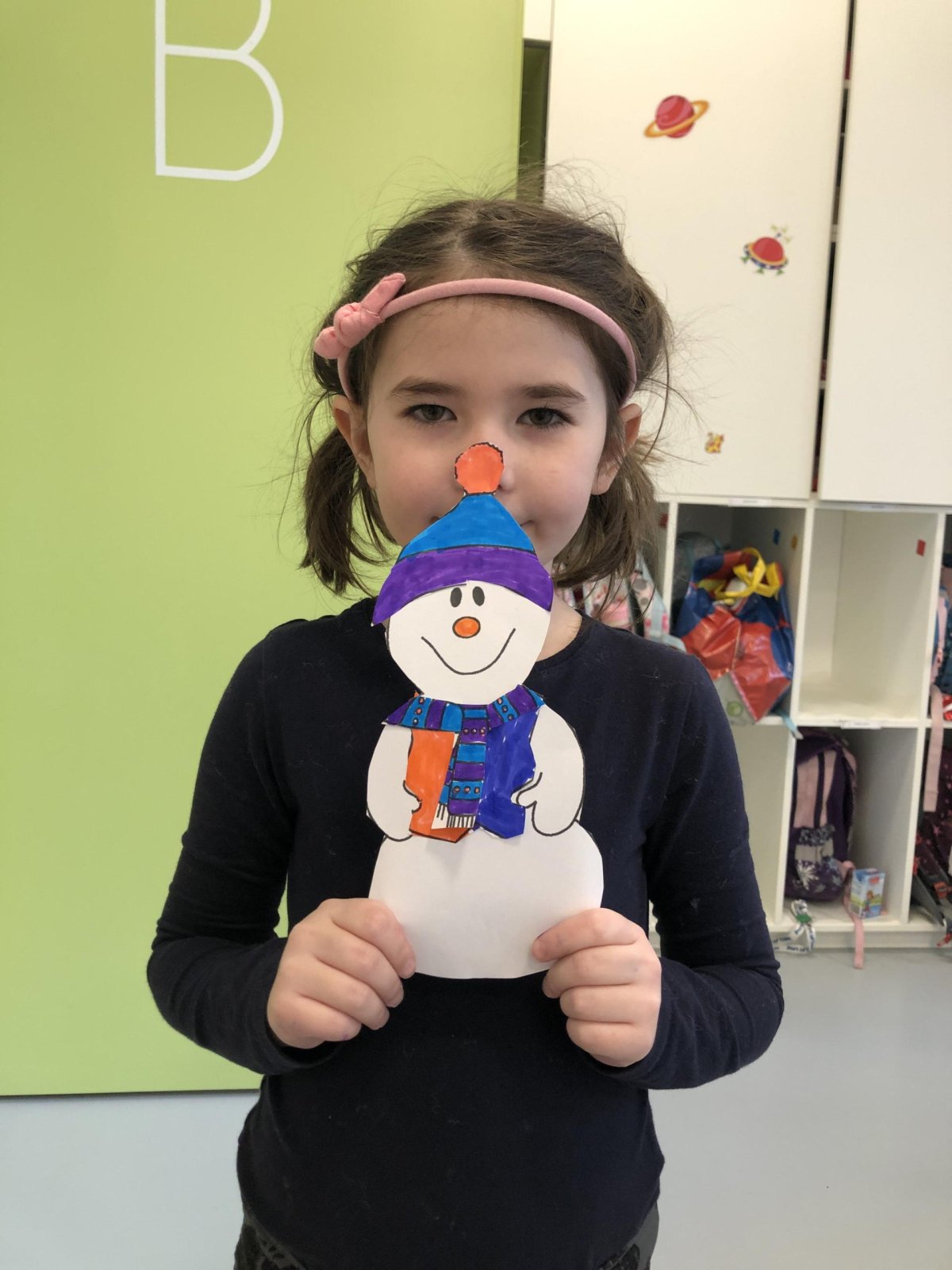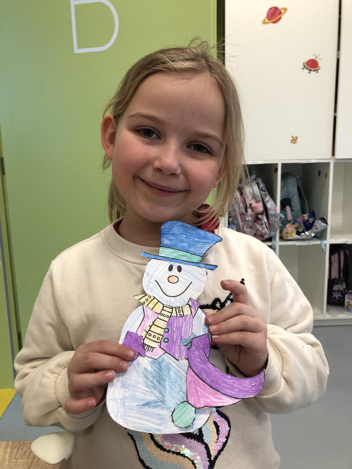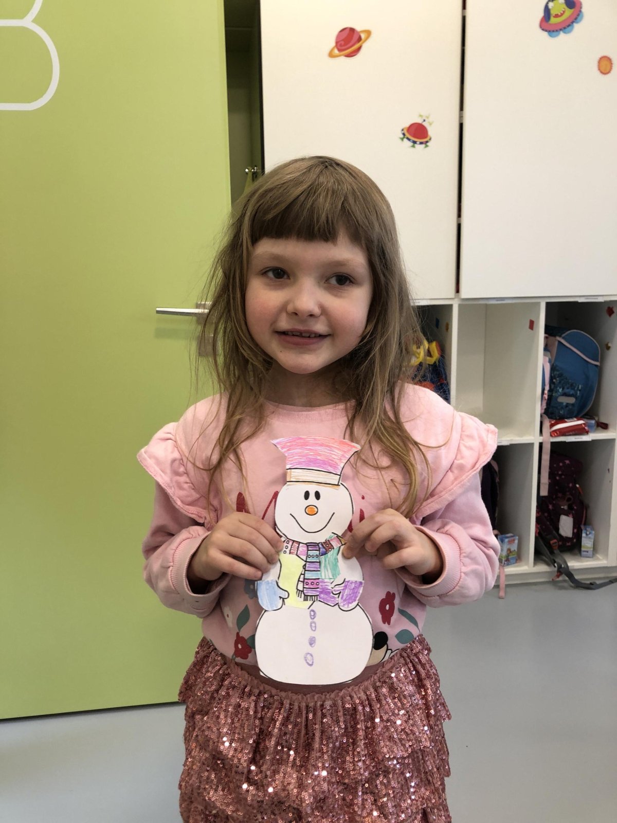 Dnes jsme vyrobili sněhuláka z papíru, protože sníh zatím nemáme, jen opravdovou zimu. I tak má všechno, co má správný sněhulák mít – kulaté tělo, veselý výraz a zimní kouzlo. Připomíná nám, že radost si můžeme vytvořit i bez sněhu, stačí trocha fantazie.