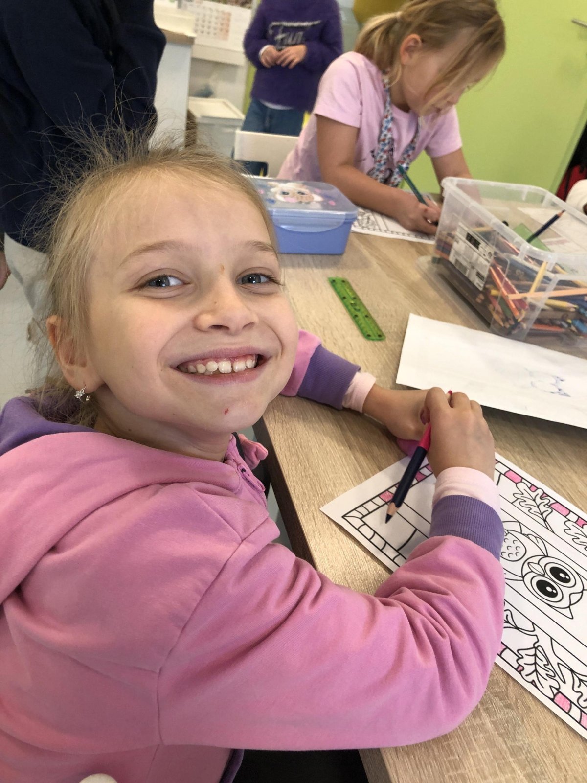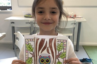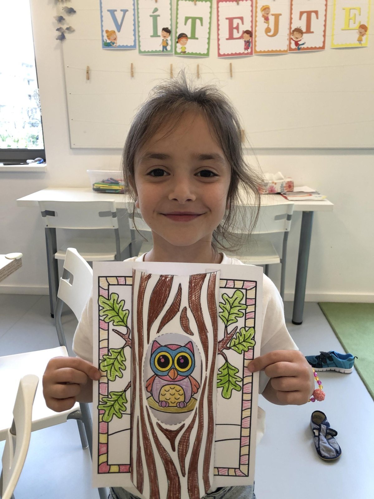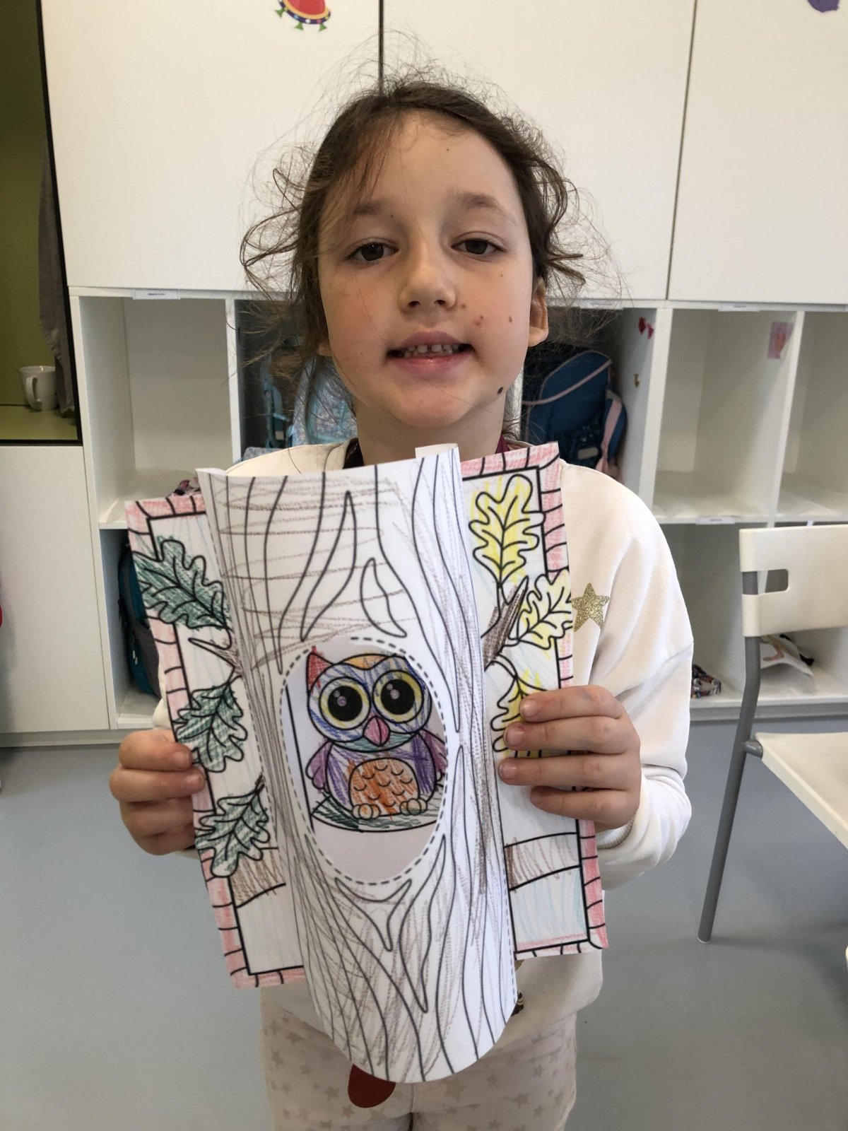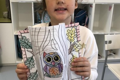 Dnes jsme vyráběli sovu, která se schovala do dutého stromu. Při práci jsme si zpívali písničku „Budem ako strom“, a celá třída byla plná pohody a smíchu. ??