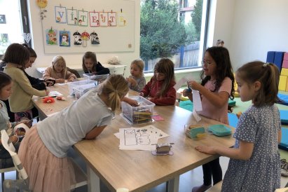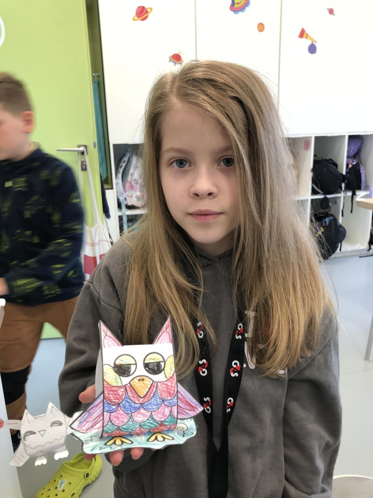 Dnes jsme měli první kroužek a tím byli vědecké pokusy. Většina dětí se chtěla podívat o čem to bude, tak měli hodinu zdarma. Než ale odešli na kroužek vyráběli jsme sovičku a zpívali z plných plic. Jsme družina zpěváků. Taky jsme si přečetli krásný příběh o přárelství chlapce a delfína. Venku bylo krásně, tak jsme šli na hřiště a hráli jsme si.