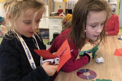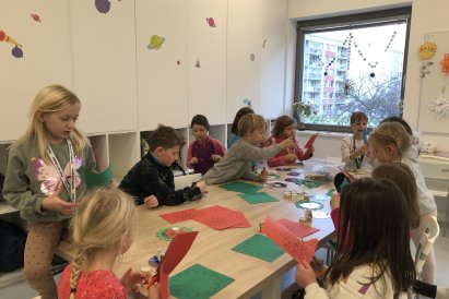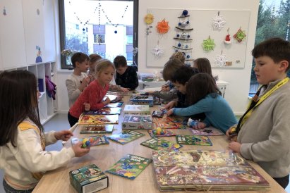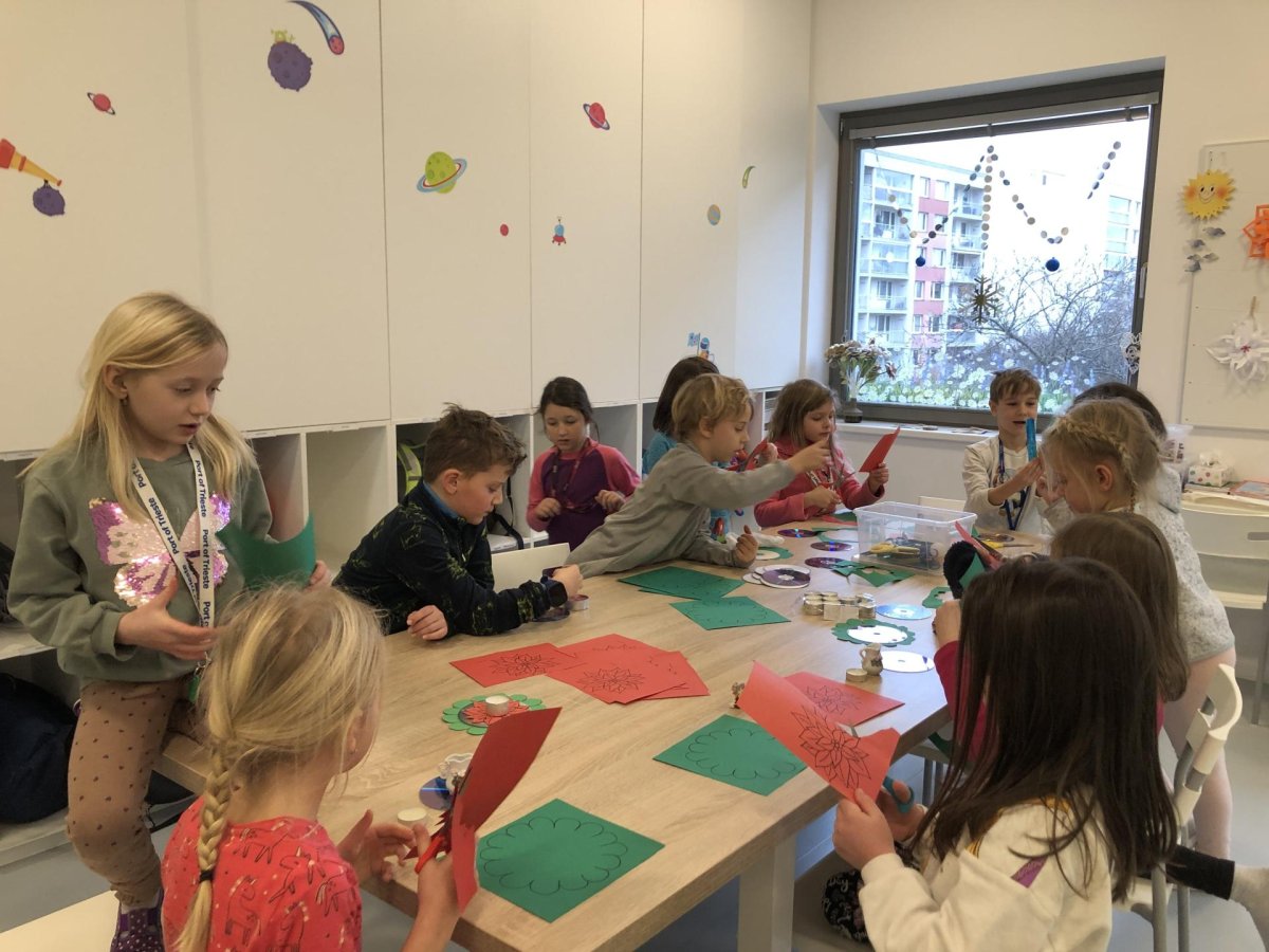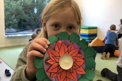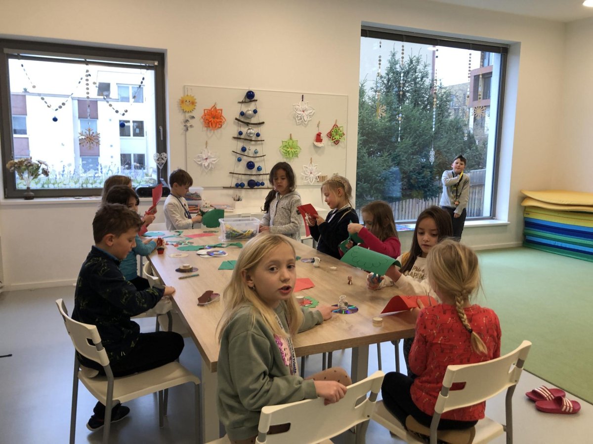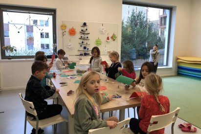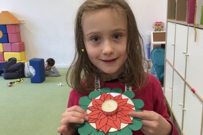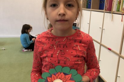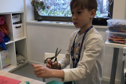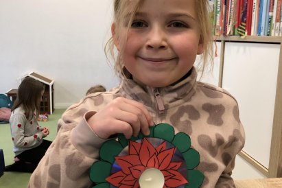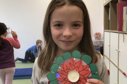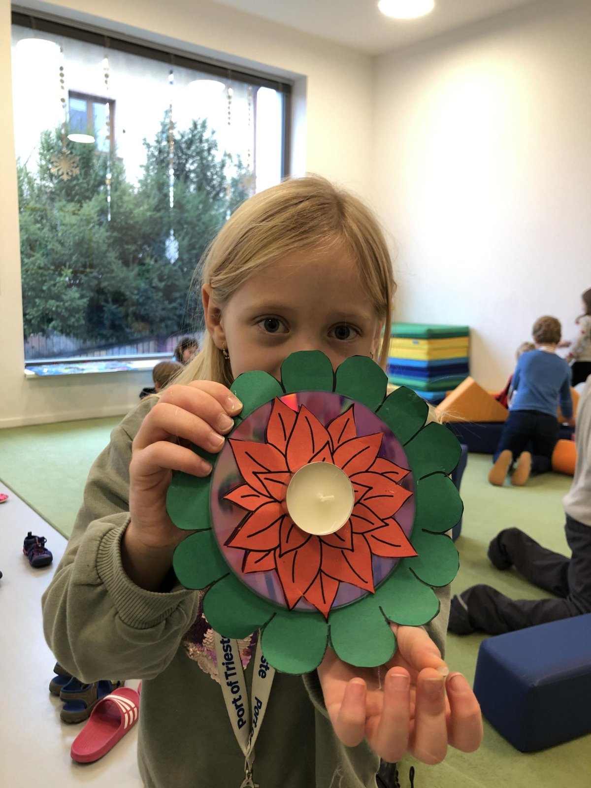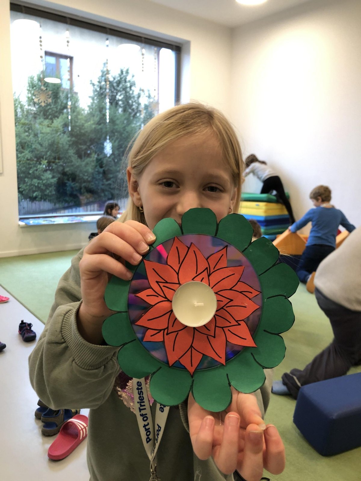 Dnešní den jsme začali výrobou svícnu. Nejprve jsme si nastříhali připravené přílohy a následně je nalepili na CD. Poté jsme doplnili svíčku a svícen byl hotový. Moc se nám líbil a už se těšíme, až si ho rozsvítíme.