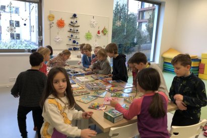 Po této aktivitě následovalo pro děti velké překvapení. Říkáme tomu „dárkování“. Na stole bylo pro děti připraveno spousta vánočních dárků a každé dítě si mohlo vybrat to, co se mu líbilo. Bylo to plné radosti a nadšeného rozbalování. Milujeme Vánoce.