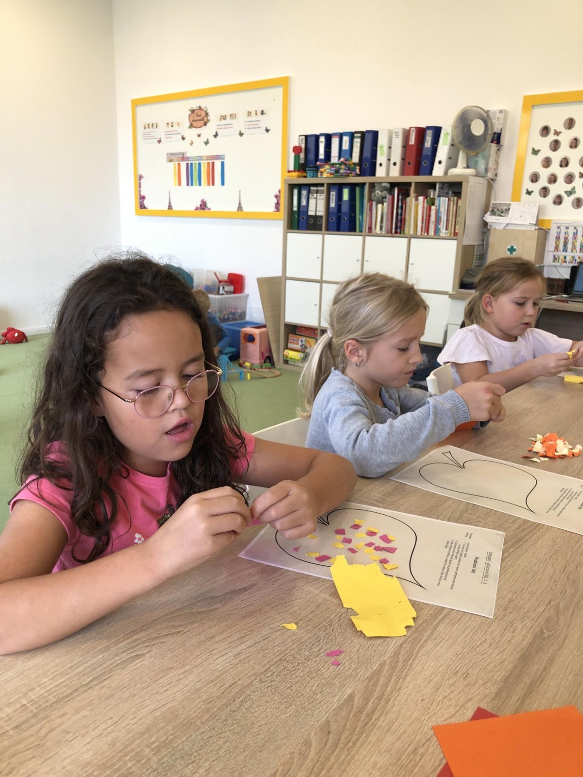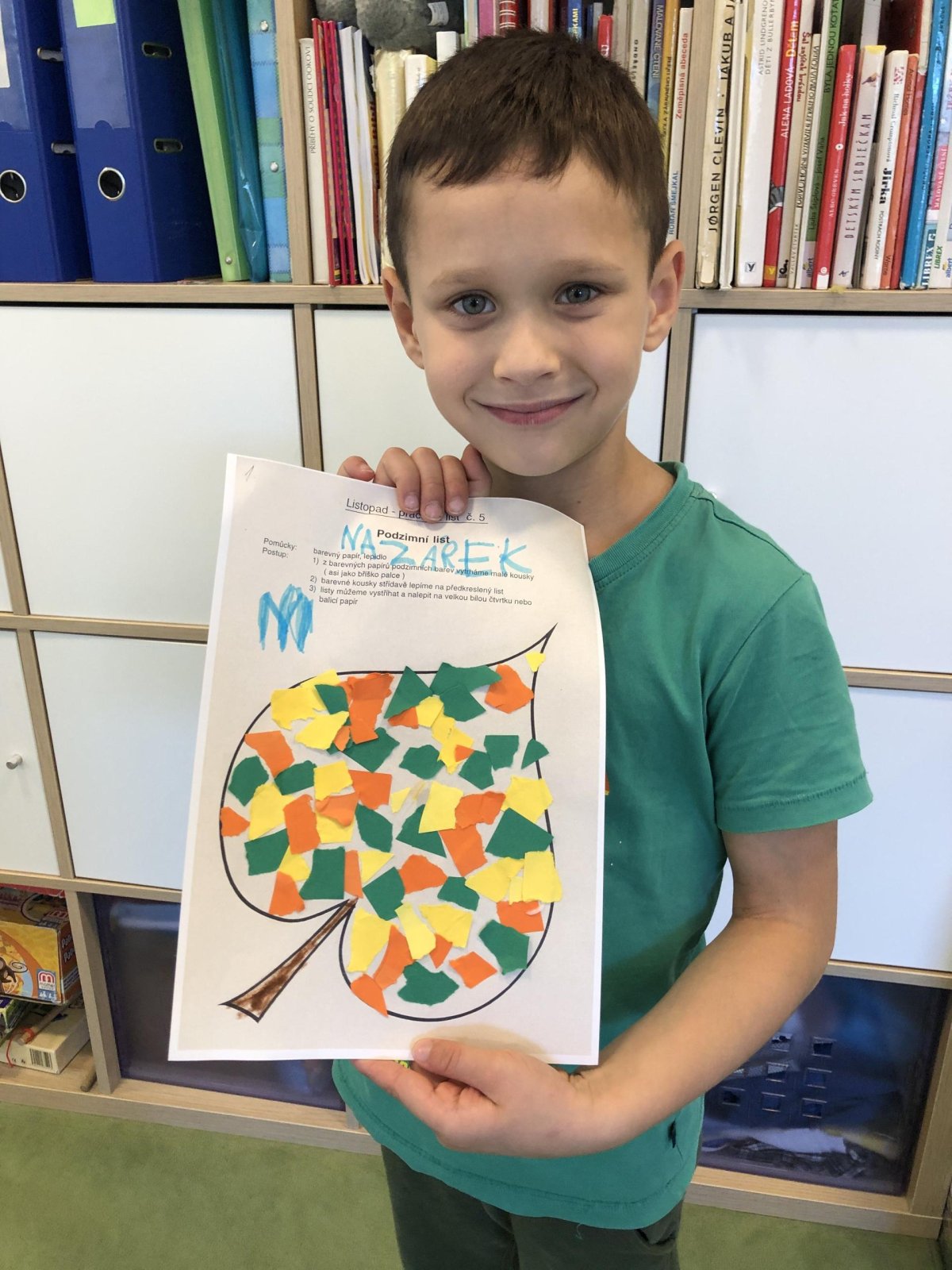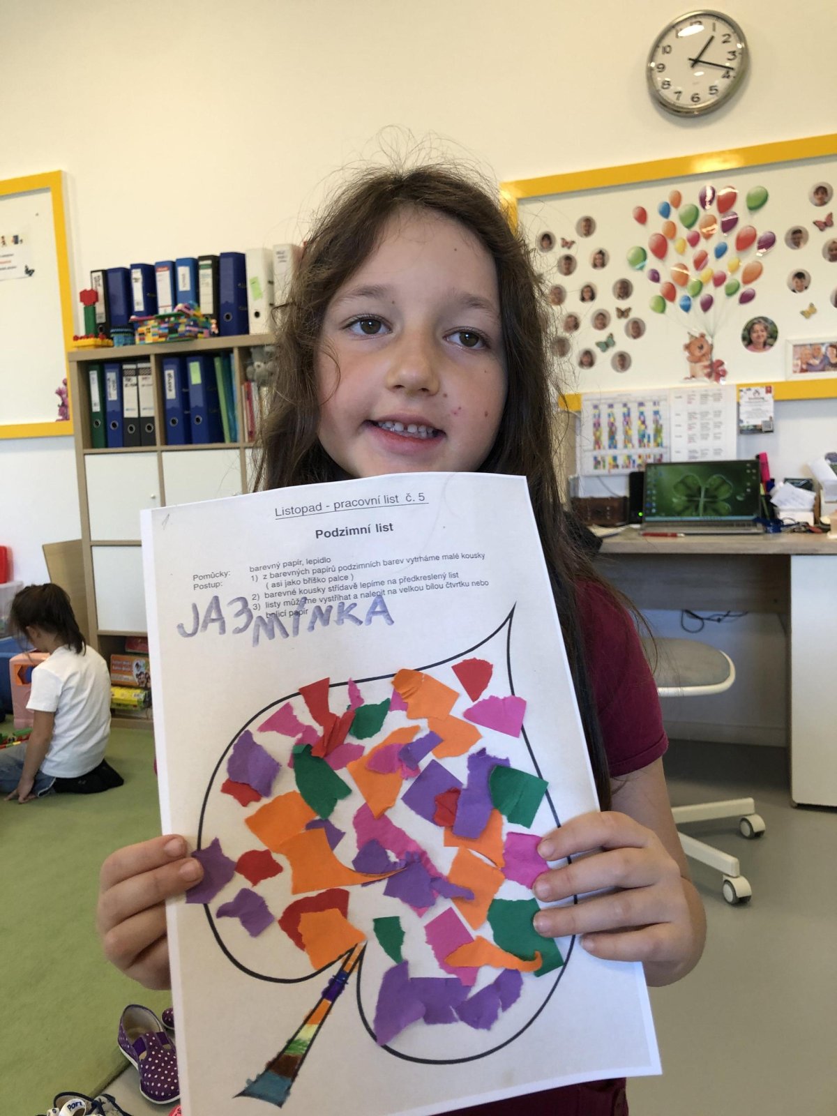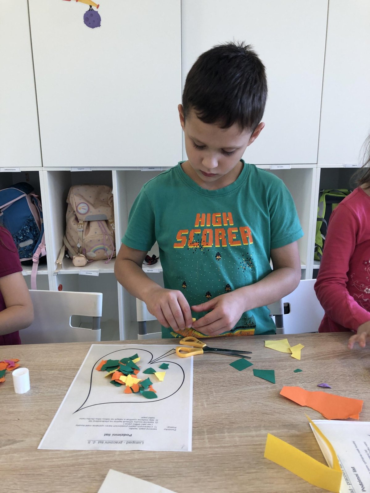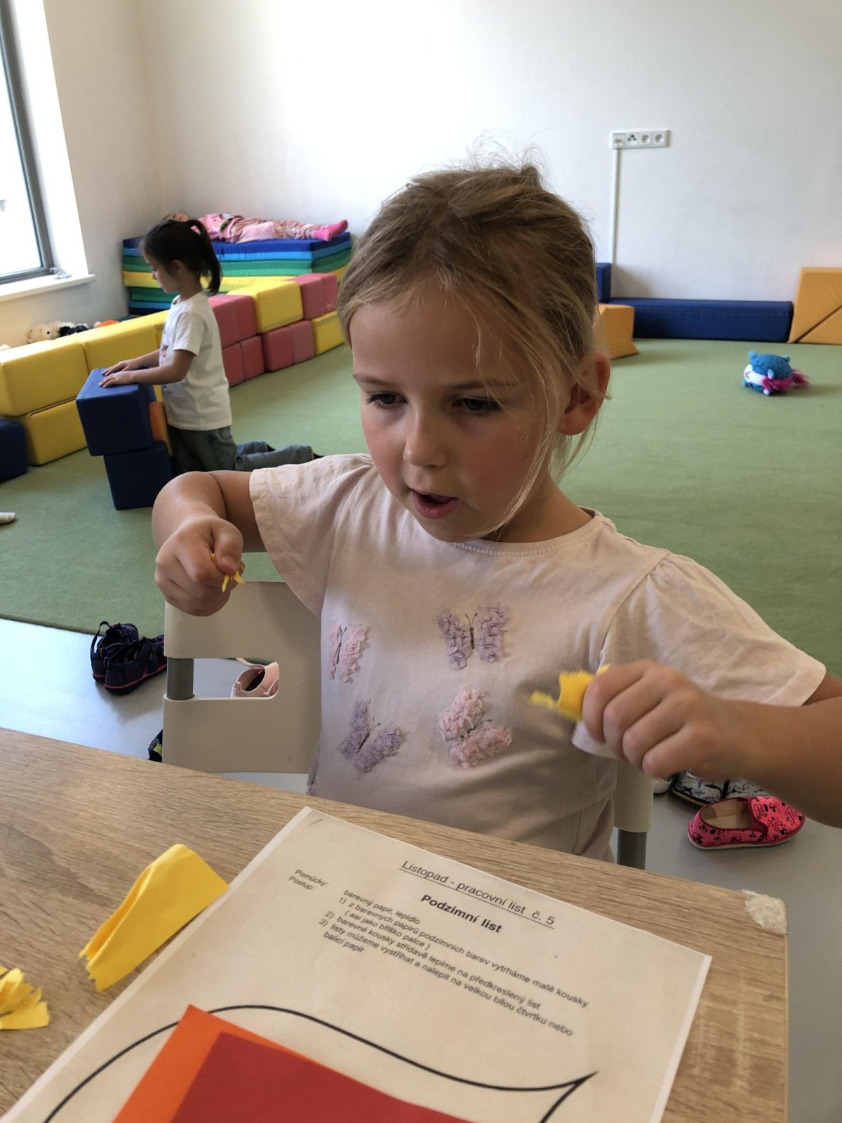 Dnešní den jsme si zpříjemnili krásným příběhem ze života o statečné Katce, která zachránila spoustu lidí. Poté jsme se pustili do trhání papíru, kterým jsme následně lepili listy. Procvičovali jsme tak jemnou motoriku – a moc nás to bavilo!