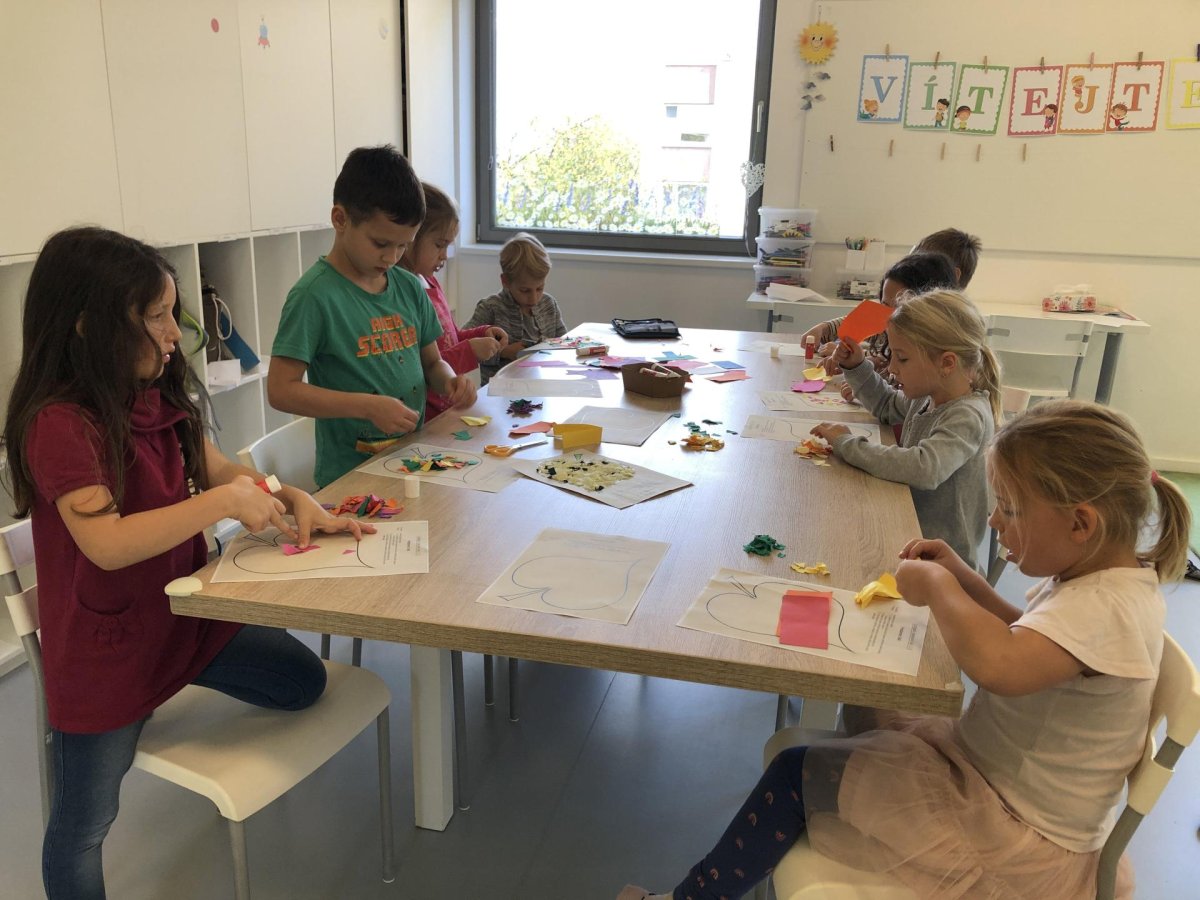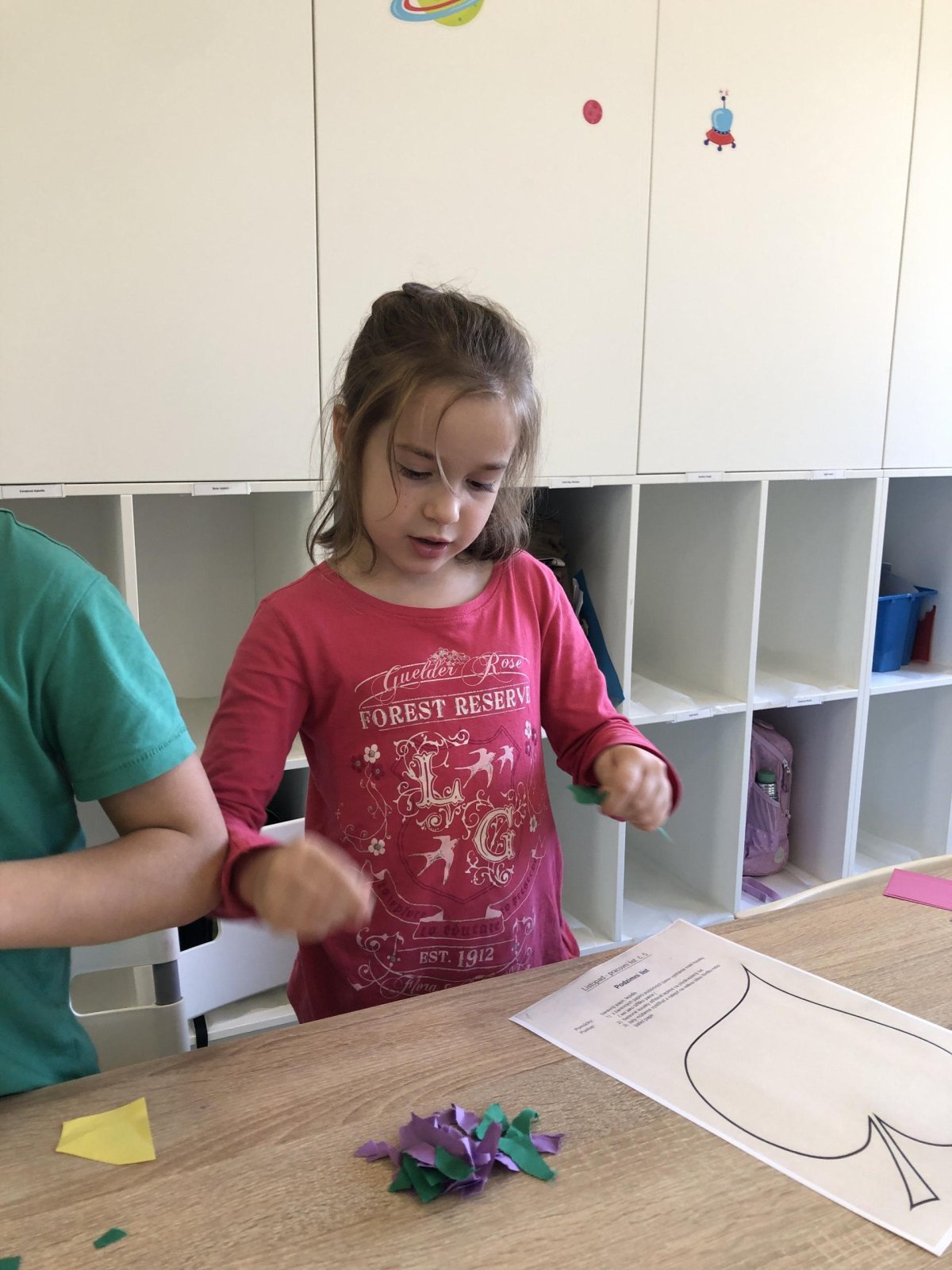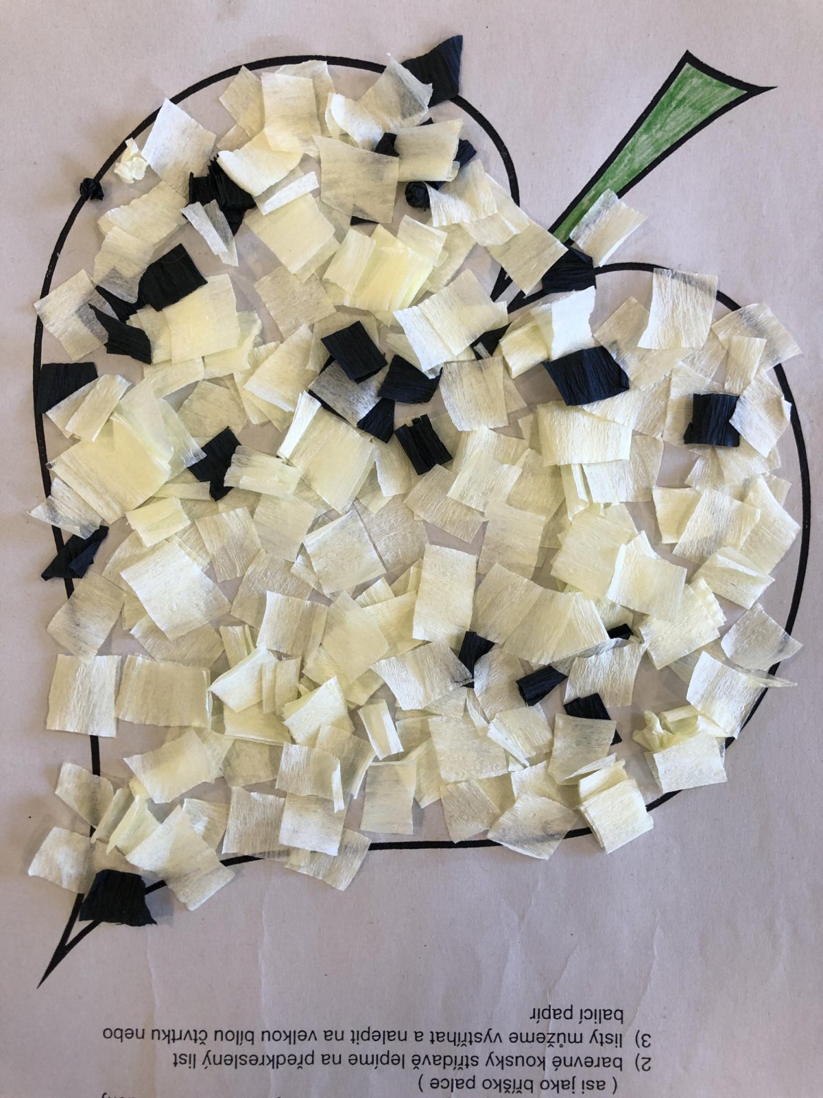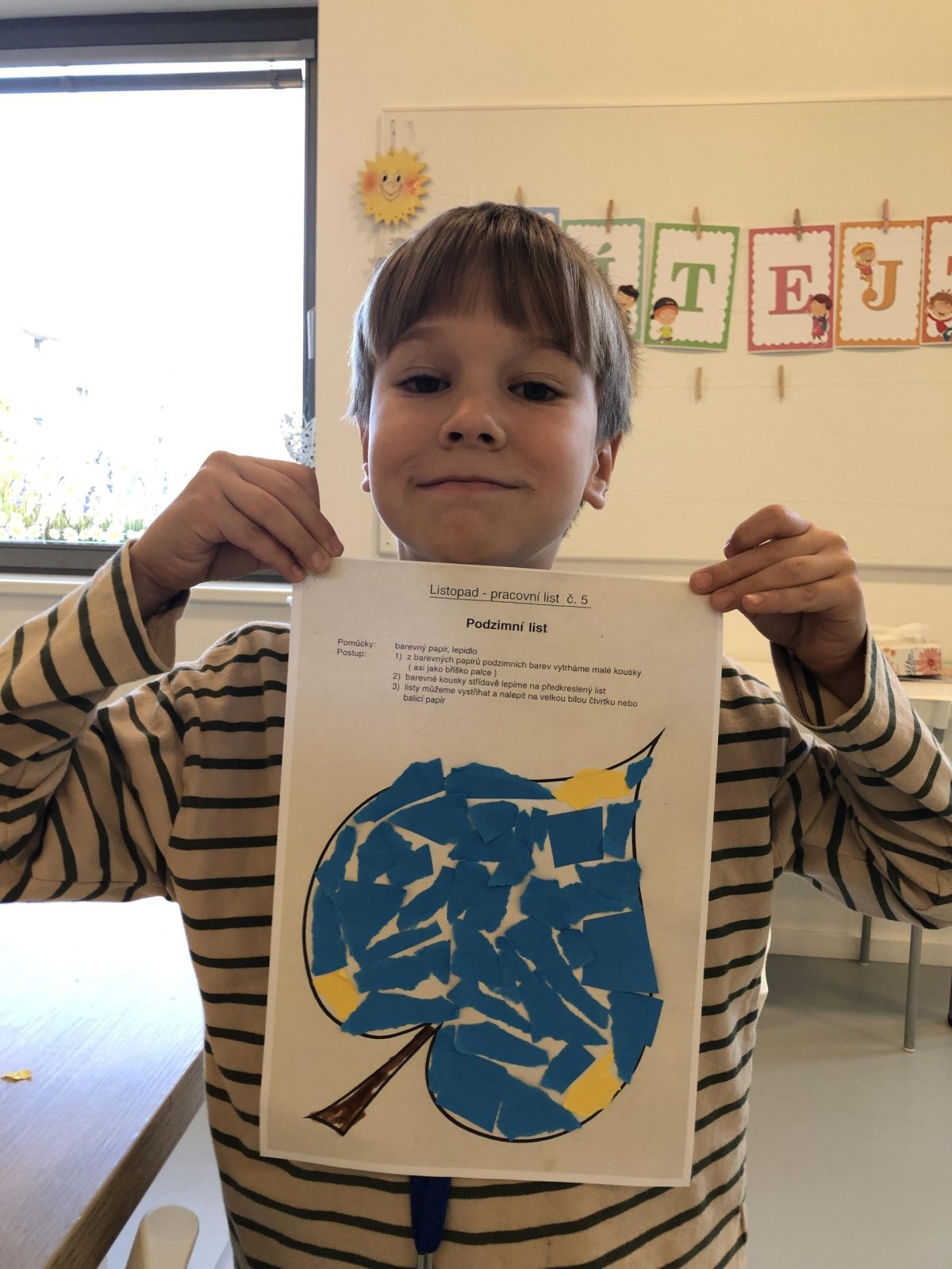 Dnešní den jsme si zpříjemnili krásným příběhem ze života o statečné Katce, která zachránila spoustu lidí. Poté jsme se pustili do trhání papíru, kterým jsme následně lepili listy. Procvičovali jsme tak jemnou motoriku – a moc nás to bavilo!