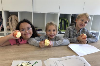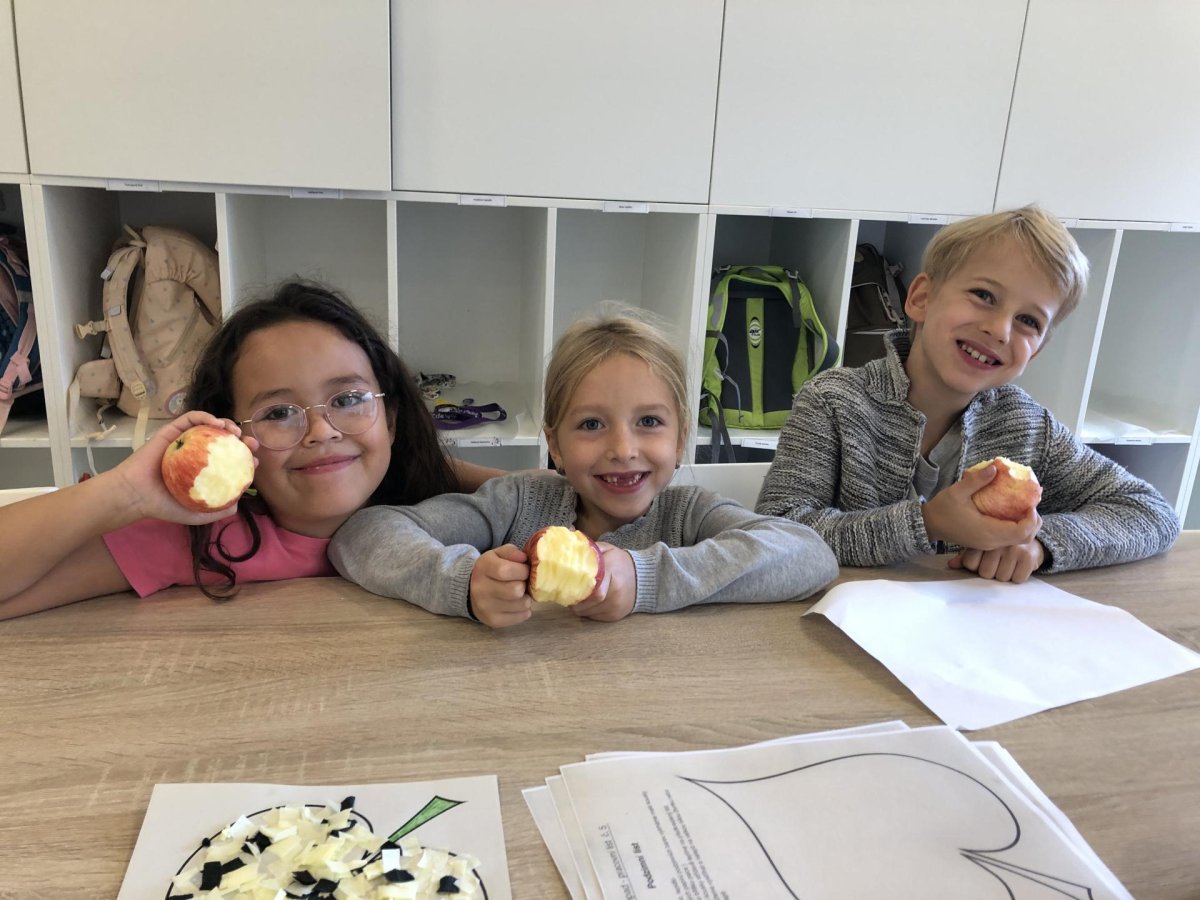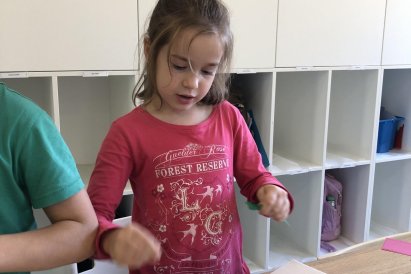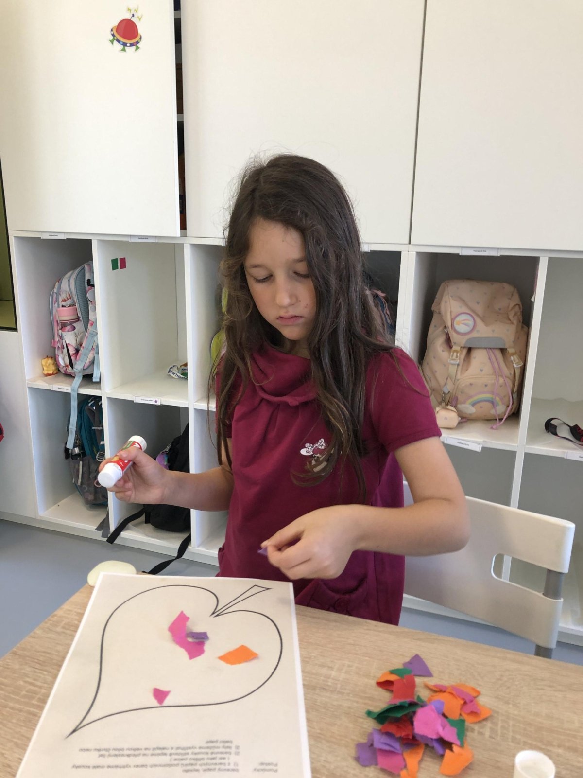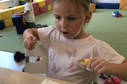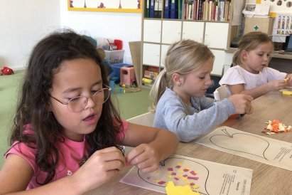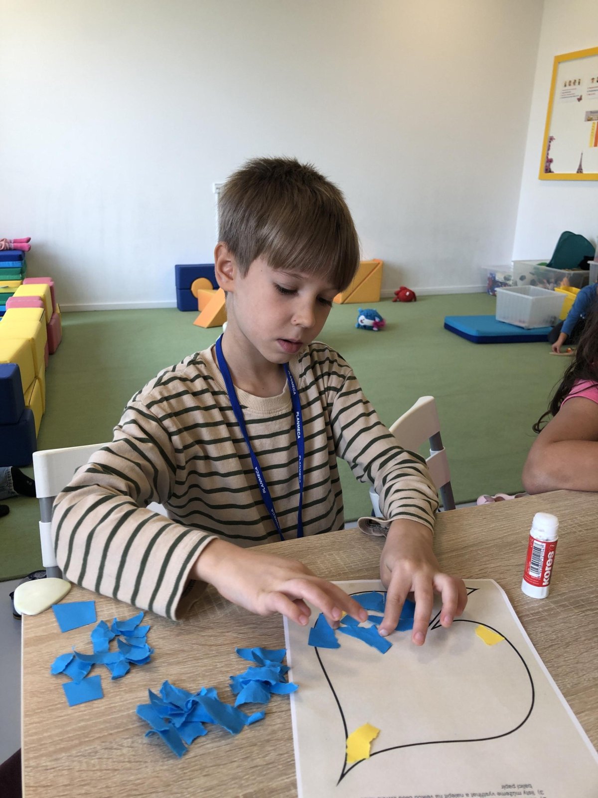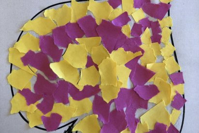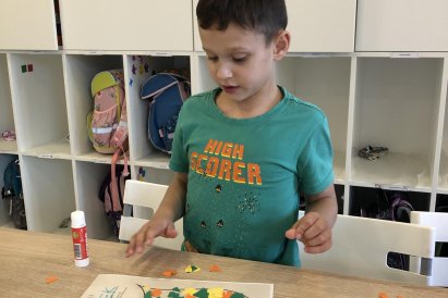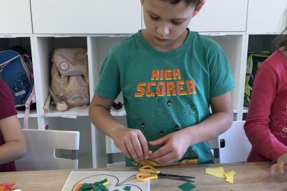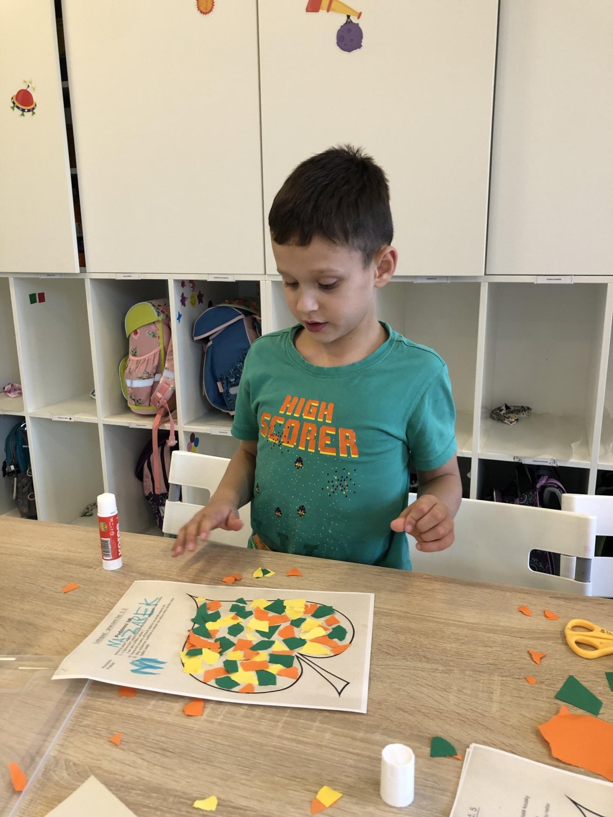 Dnešní den jsme si zpříjemnili krásným příběhem ze života o statečné Katce, která zachránila spoustu lidí. Poté jsme se pustili do trhání papíru, kterým jsme následně lepili listy. Procvičovali jsme tak jemnou motoriku – a moc nás to bavilo!